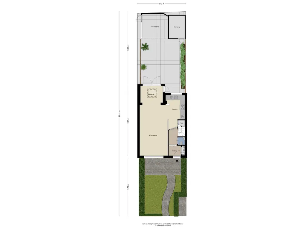 De tuin van ruim 64 m2 ligt op het zonnige zuiden en is erg mooi aangelegd. Er liggen grote tegels en er is een brede border met beplanting en twee boompjes die in de zomer vol in bloei staan en je wat extra privacy geven. Er is ruimte voor een grote loungehoek en aan de stenen berging is een mooie houten overkapping gebouwd waar je het hele jaar door kunt genieten van het buitenleven. Er is een achterom om de fietsen in de berging te stallen.
