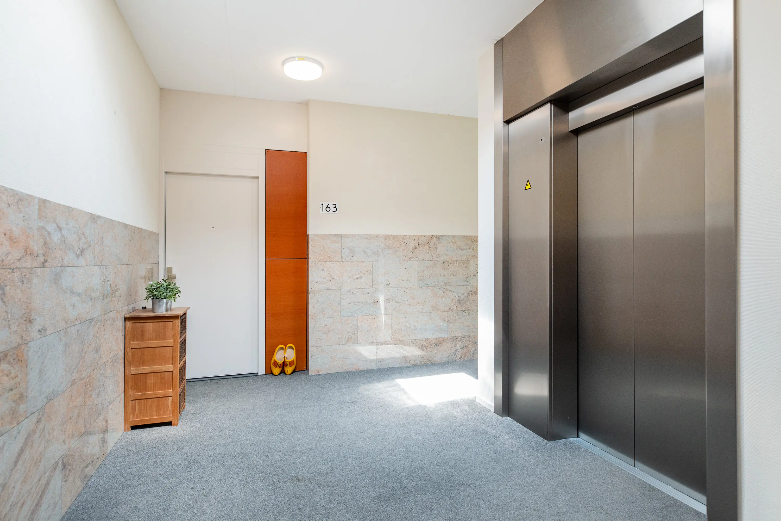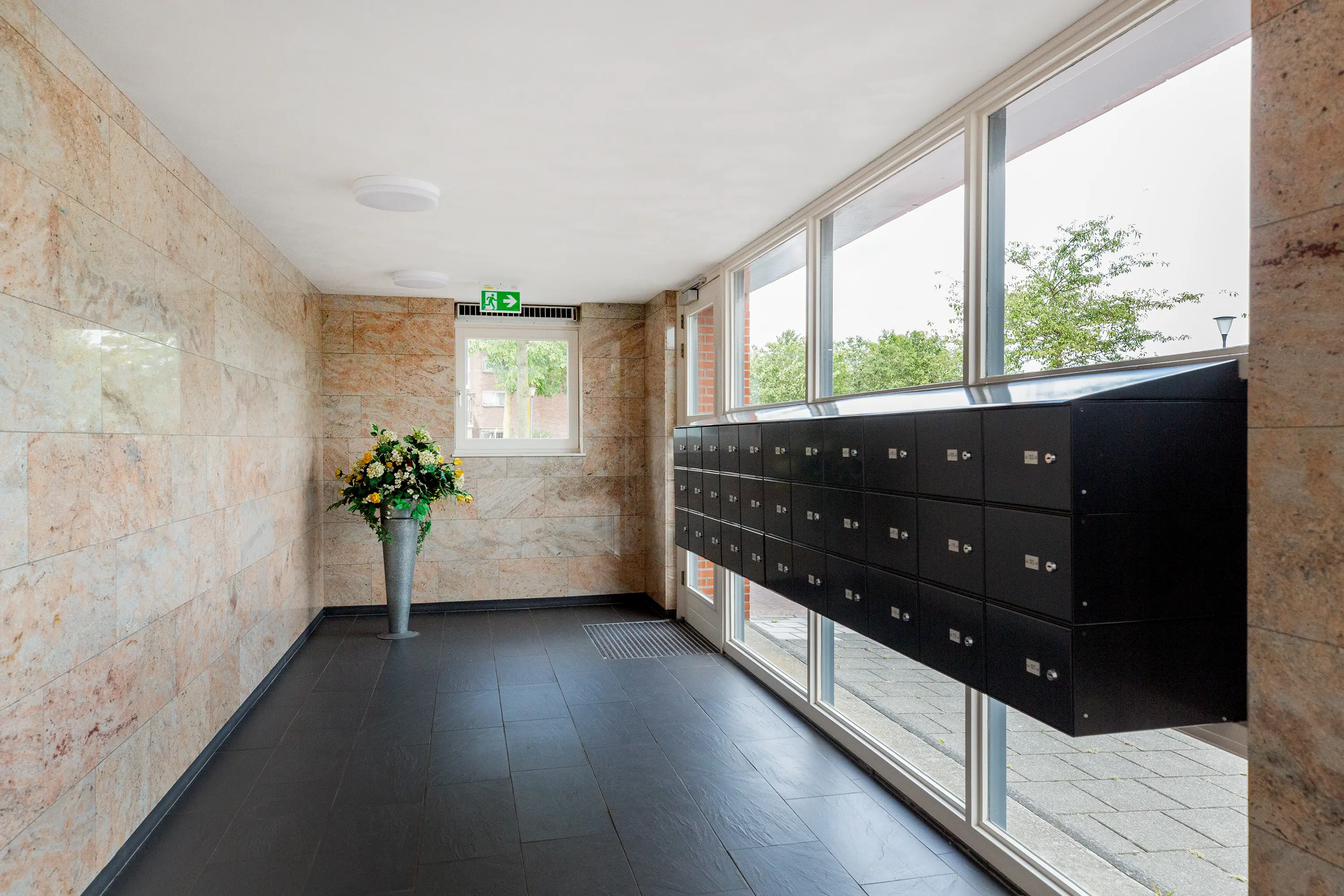 U parkeert eenvoudig voor de deur en betreedt via de nette, afgesloten entree de centrale hal van het gebouw. Deze ruime en verzorgde ontvangsthal is voorzien van brievenbussen en toegang tot de lift en het trappenhuis. Het gebouw is bovendien goed toegankelijk voor mindervaliden en ouderen, dankzij minimale drempels en brede doorgangen. De veiligheid is goed geregeld met een video-intercomsysteem voor bezoekers. Op de begane grond beschikt u over een eigen berging, ideaal voor het stallen van fietsen of het opbergen van overige spullen.