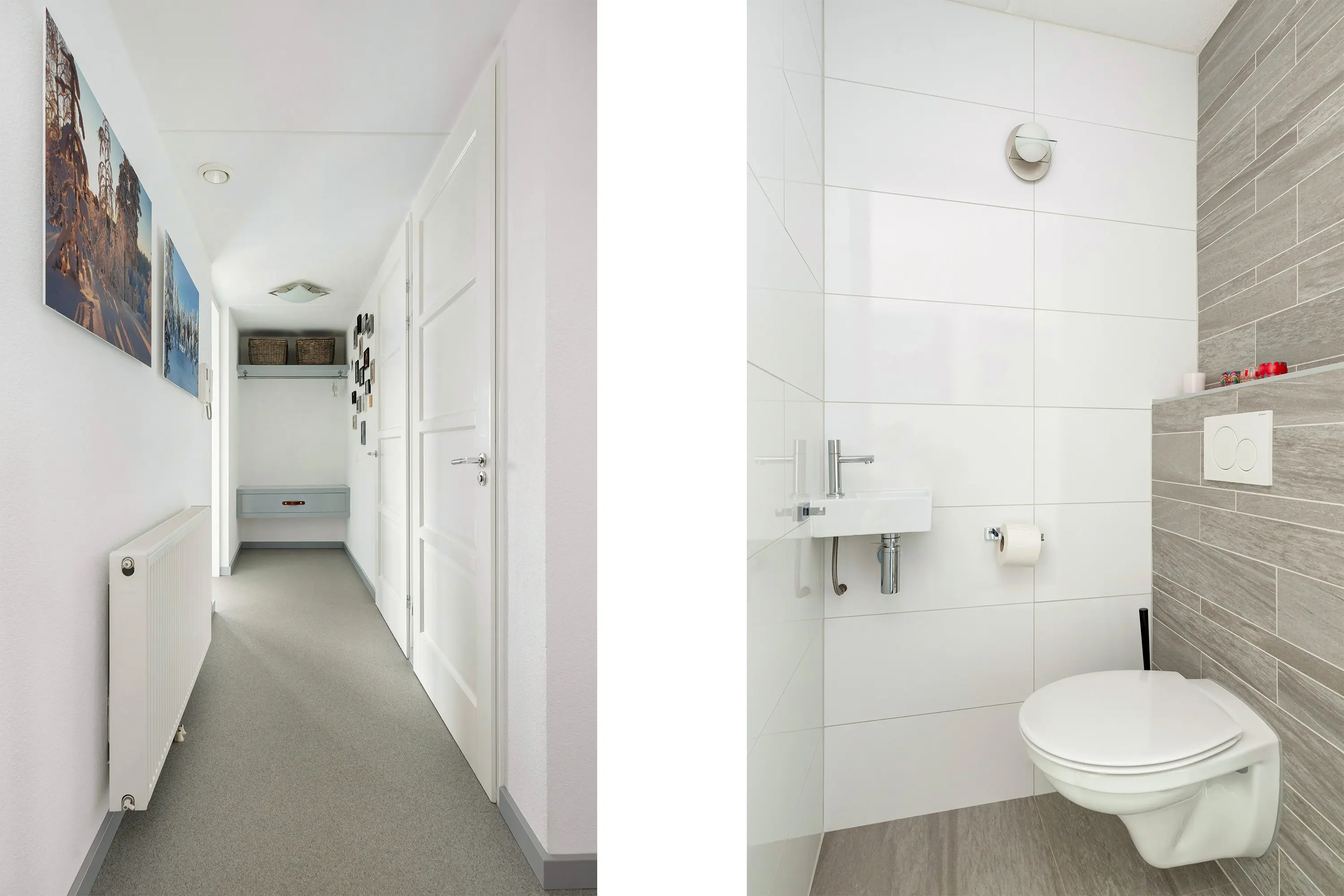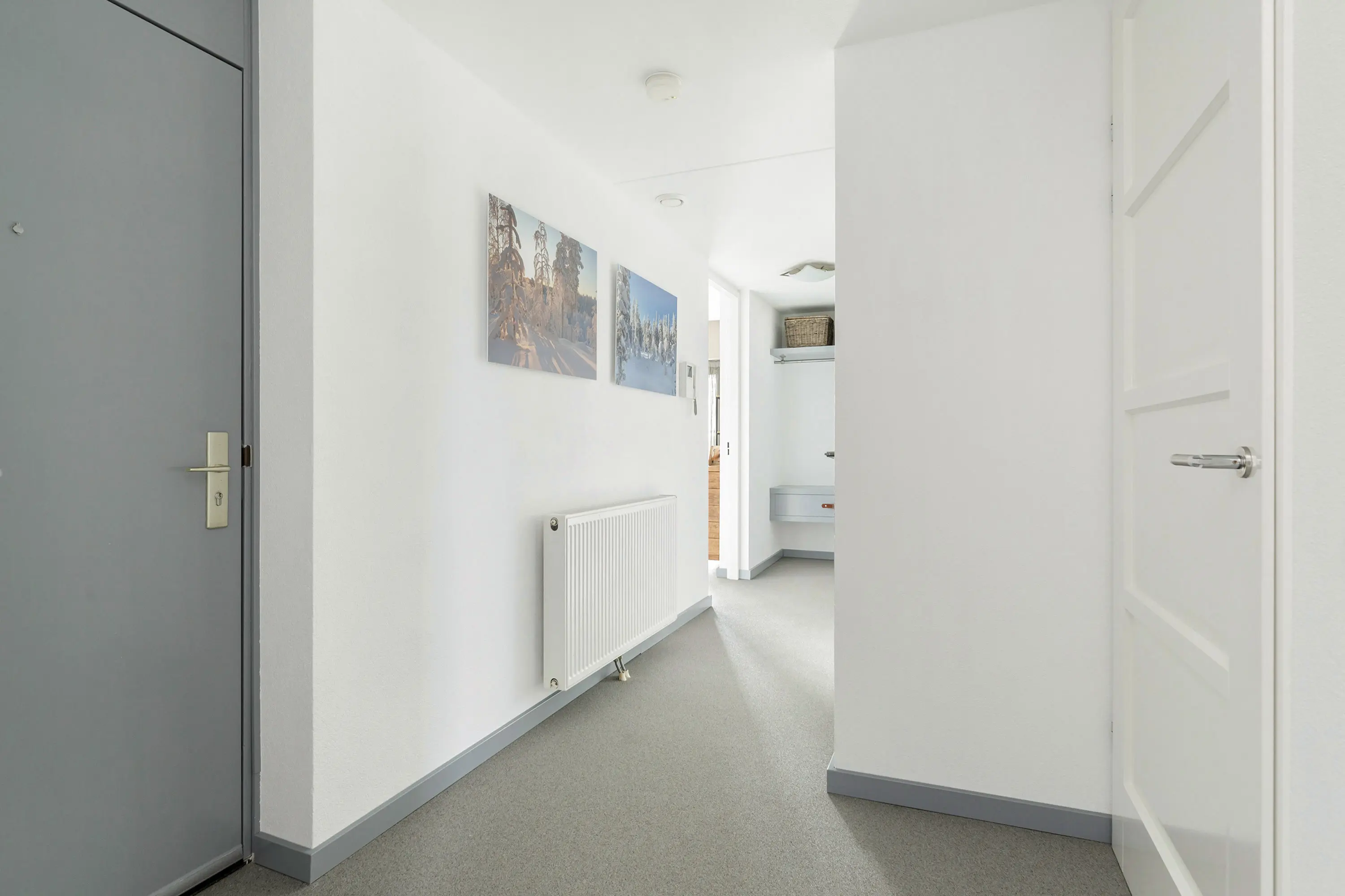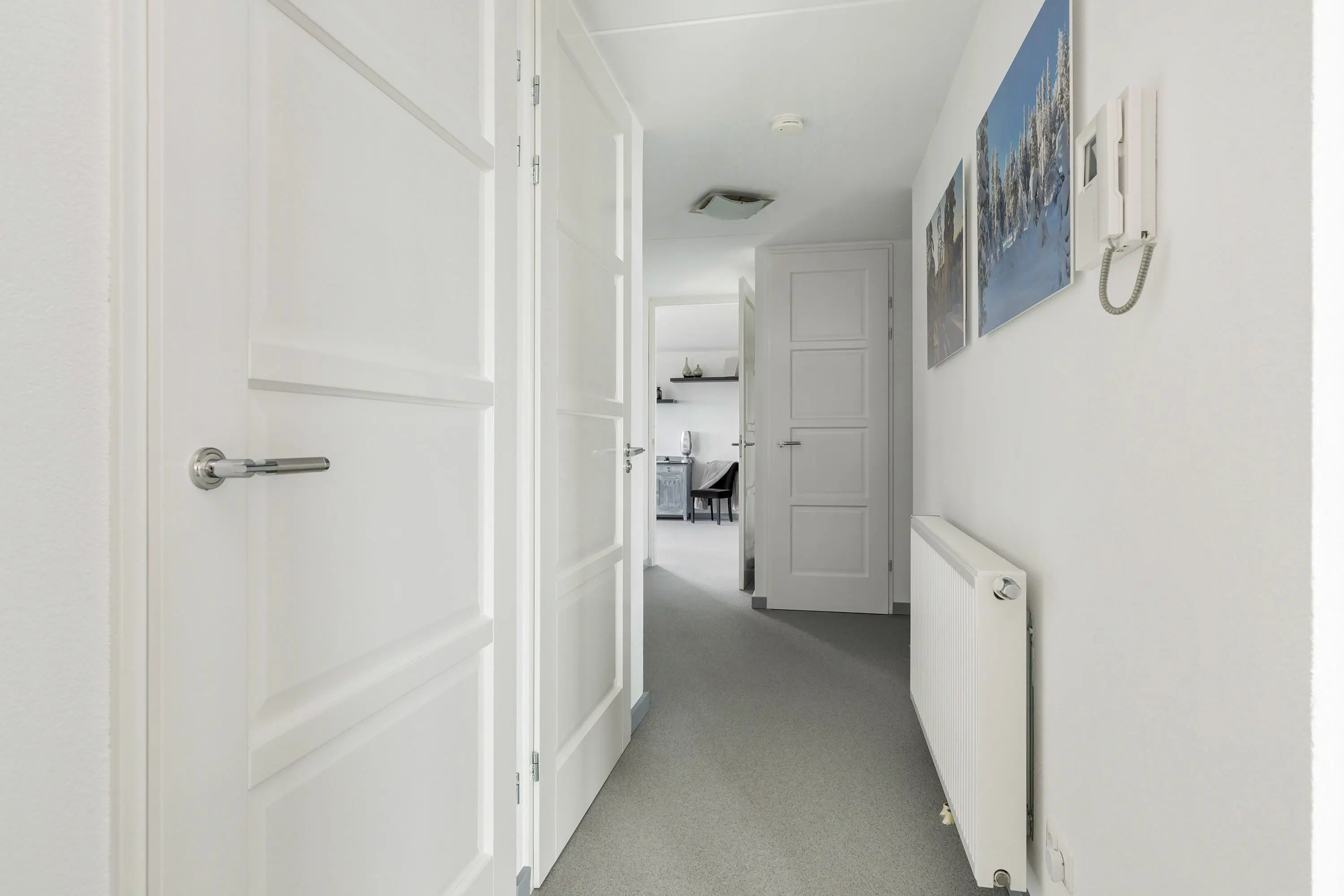 Bij binnenkomst in het penthouse wordt u verwelkomd in een ruime en centraal gelegen hal die toegang biedt tot alle vertrekken. Deze indeling zorgt niet alleen voor rust en overzicht maar geeft de woning ook een fijne, logische flow.