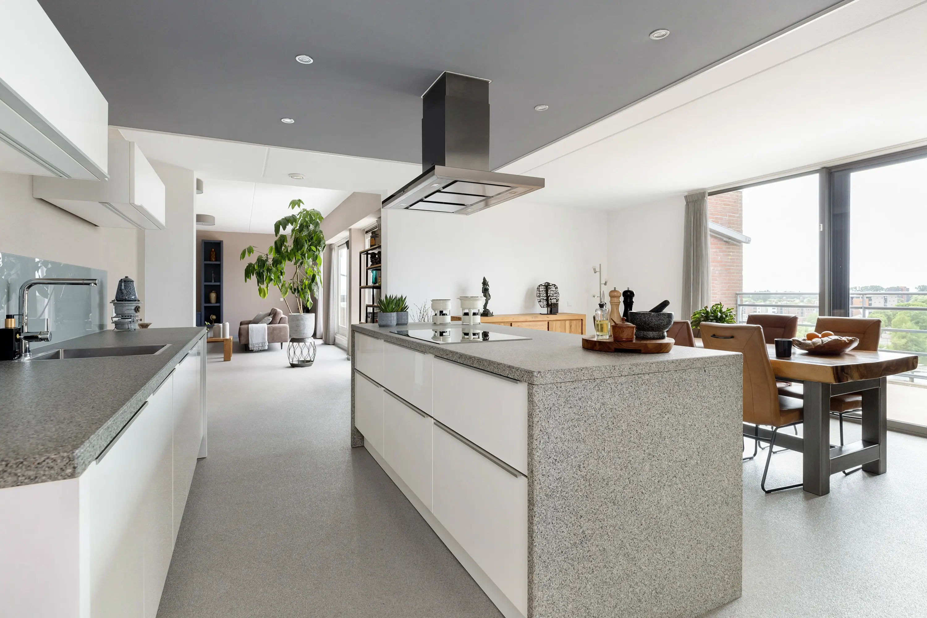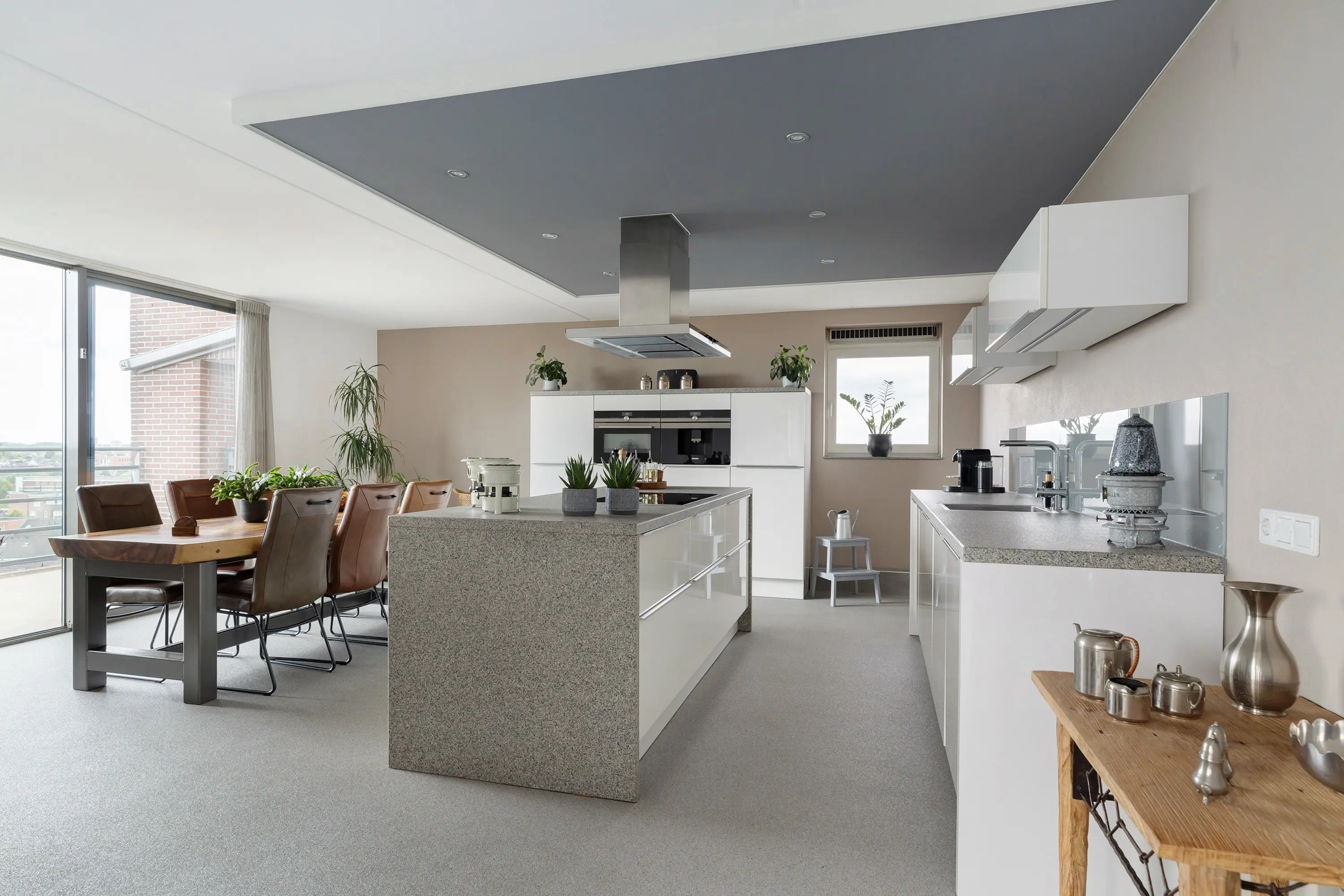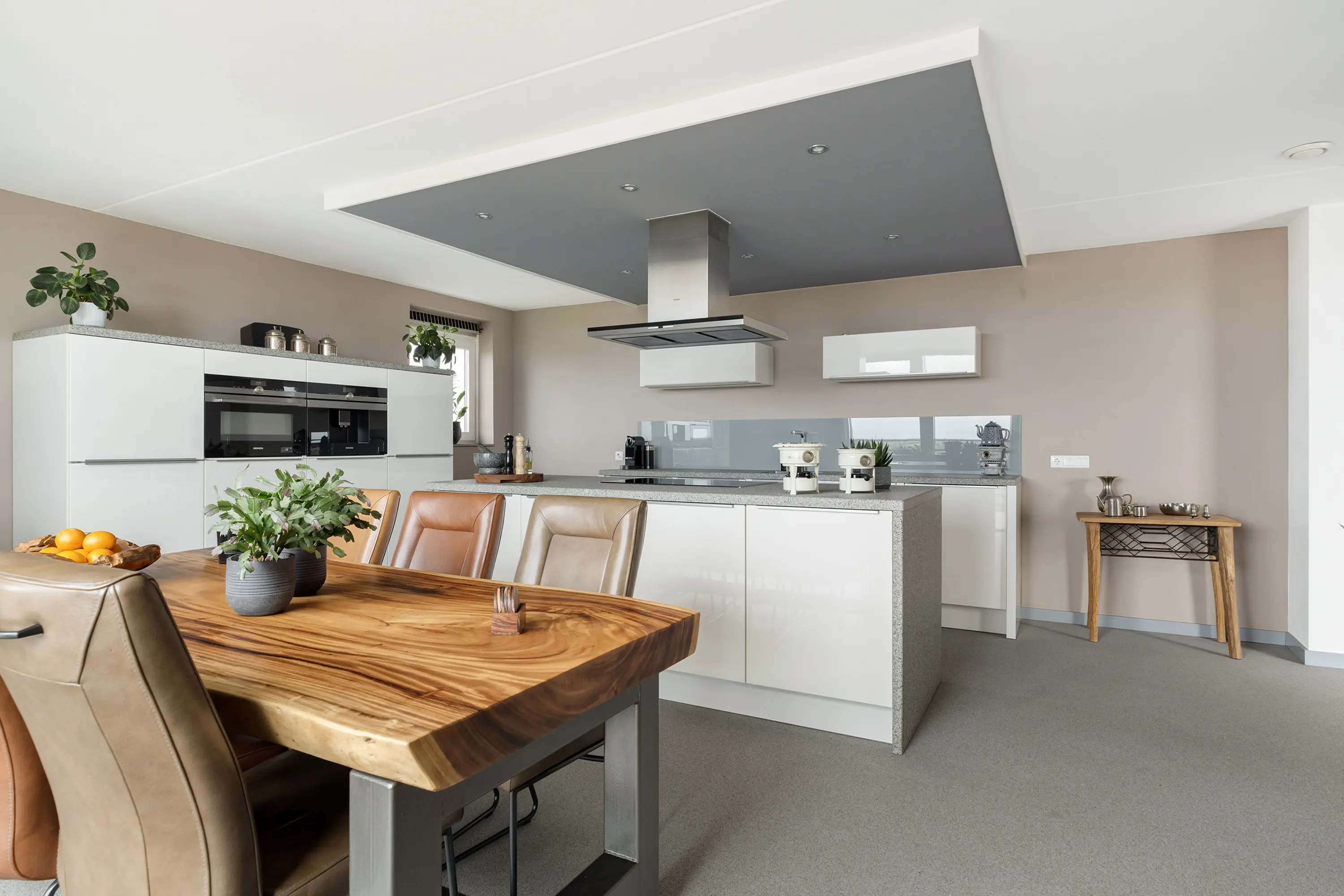 Aansluitend op de woonkamer bevindt zich de open woonkeuken van maar liefst 34 m² een heerlijke ruimte voor wie van koken, tafelen en gezellig samenzijn houdt. De open opstelling zorgt voor een natuurlijke verbinding met de woonkamer, waardoor deze keuken niet alleen functioneel is maar ook een echt verlengstuk van de leefruimte vormt.