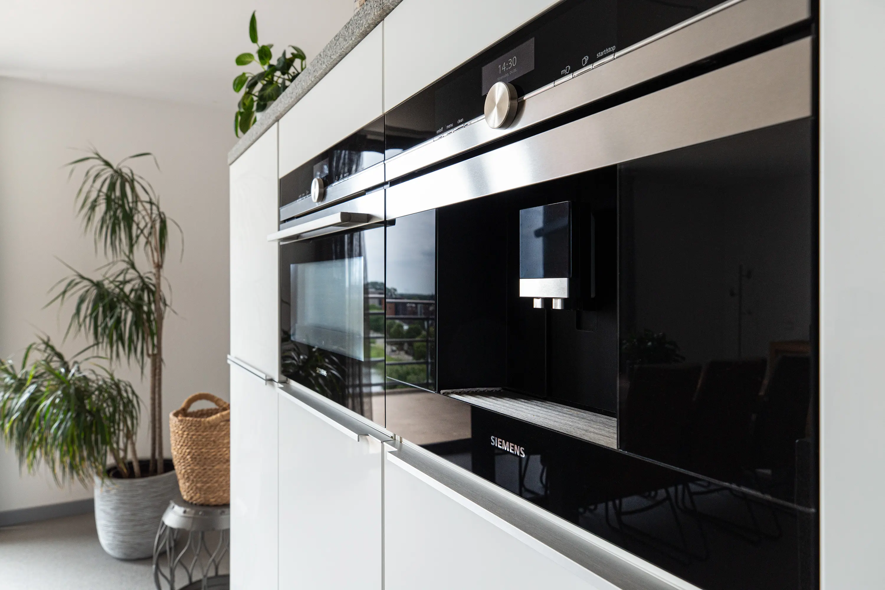 Daarnaast is de keuken uitgerust met een ingebouwde combimagnetron, een koffiezetapparaat, een koelkast en een vriezer en is allemaal naadloos geïntegreerd in het stijlvolle geheel.