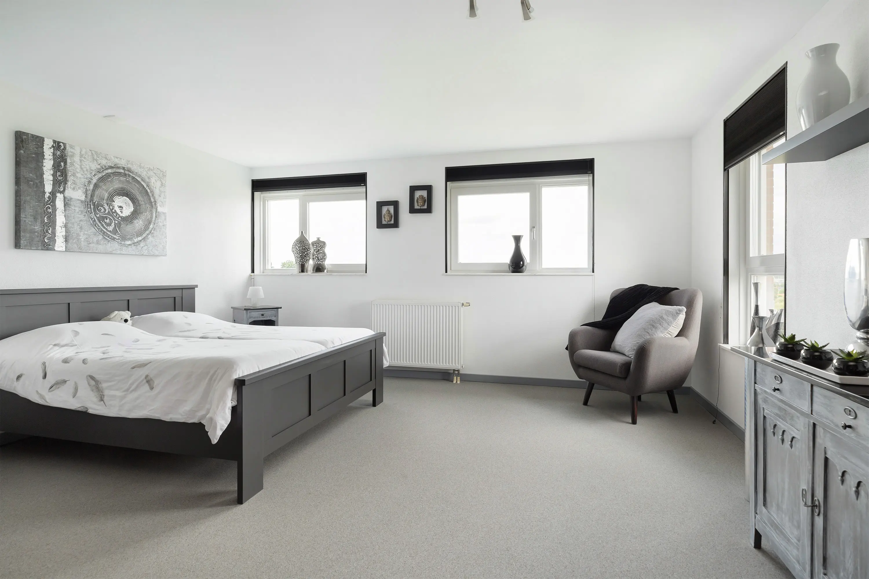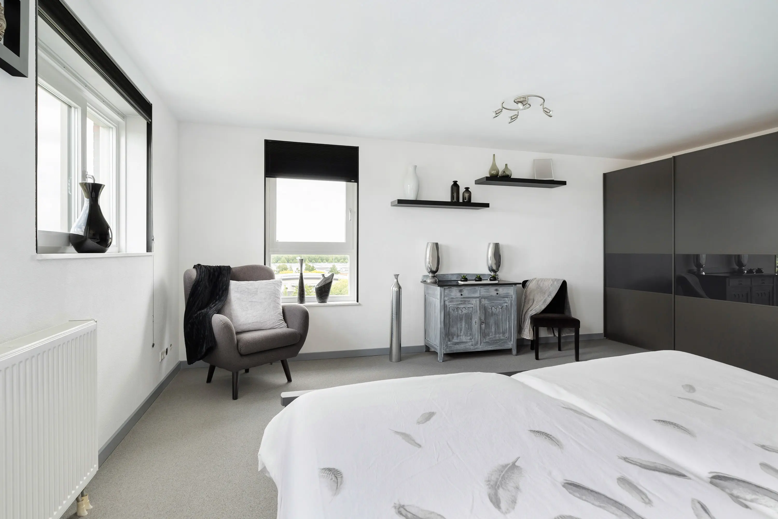 De master bedroom is bijzonder royaal met een oppervlakte van 27 m². Er is volop ruimte voor een grote kledingkast, zodat uw garderobe netjes en overzichtelijk blijft. Dankzij de ruime raampartijen valt er veel natuurlijk licht binnen, wat zorgt voor een lichte en sfeervolle ambiance waar u zich meteen thuis voelt.