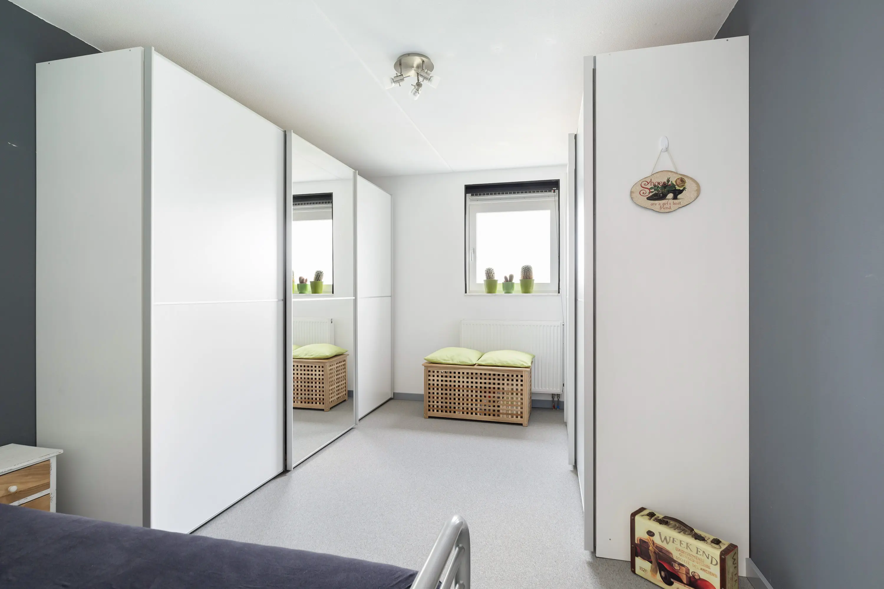 Slaapkamer 2 wordt momenteel gebruikt als logeerkamer. Deze kamer is praktisch ingericht met twee ruime kledingkasten, zodat er ook hier voldoende opbergruimte is voor uw gasten.