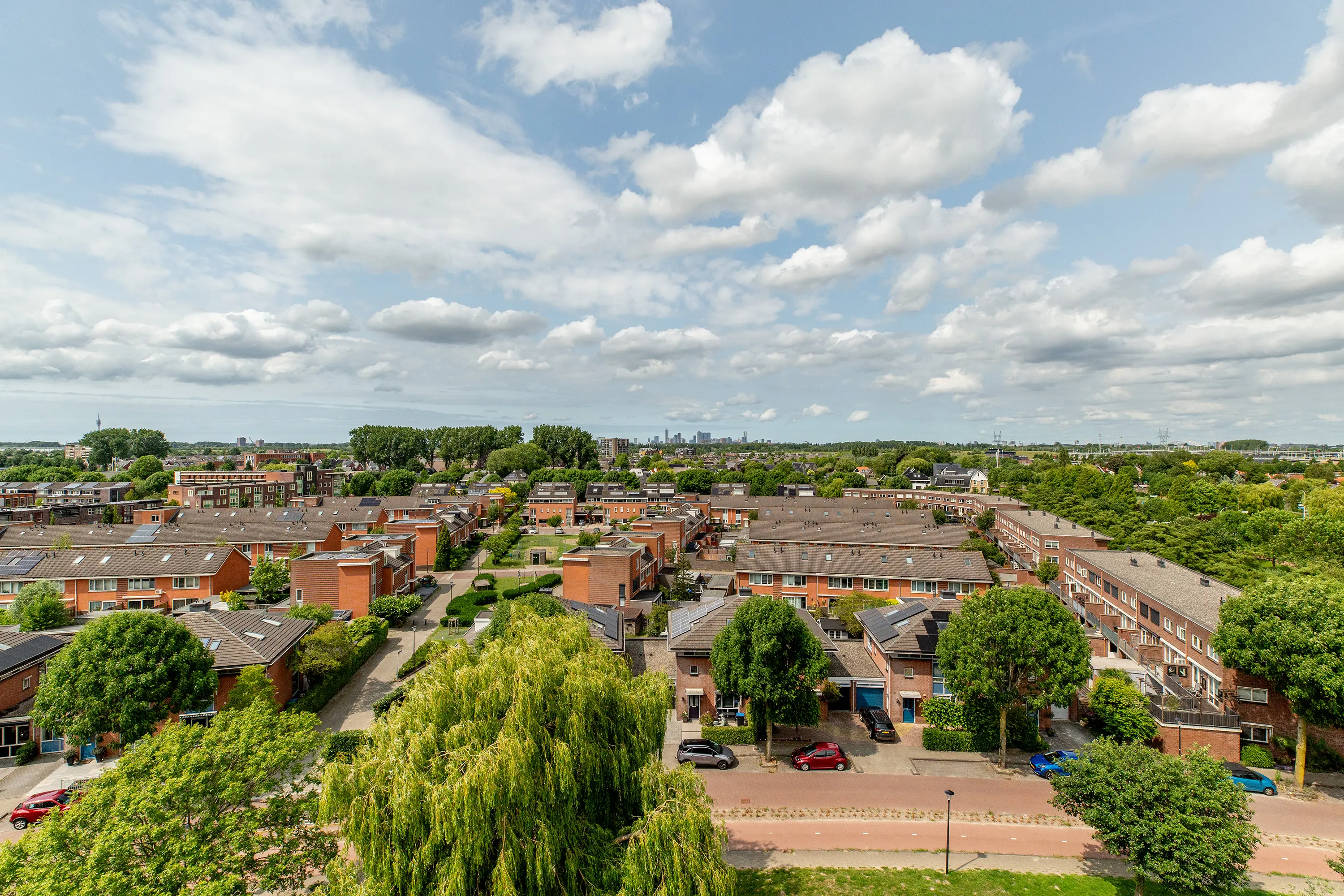 En dat uitzicht? Dat is werkelijk prachtig. Vanaf het terras én vanuit de woonkamer kijkt u vrij uit over de omgeving met zicht op het omliggende groen, de wijk en het park. Een zeldzame combinatie van stedelijk gemak en rustgevend uitzicht, die maar weinig appartementen weten te bieden.