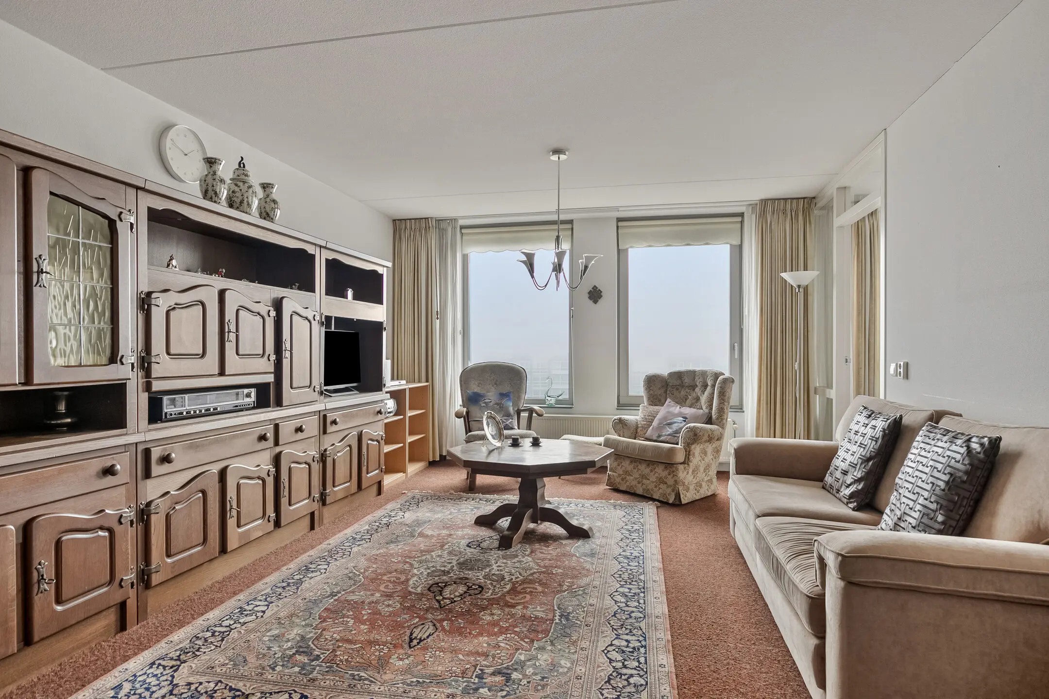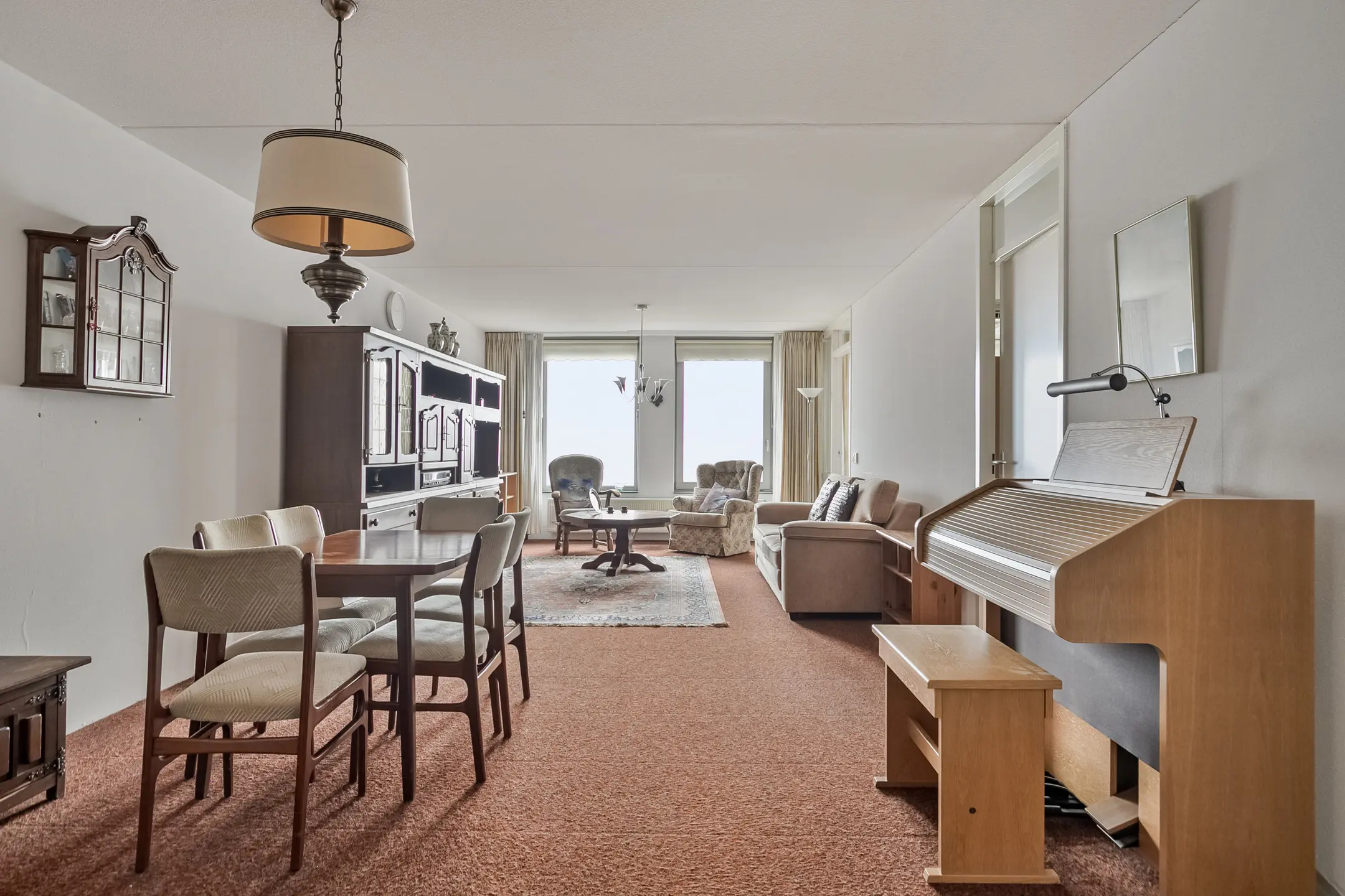 De ruime woonkamer (ca. 40 m2) is voorzien van vloerbedekking en biedt toegang tot de slaapkamer 1. Tevens heeft u middels een loopdeur toegang tot de loggia.