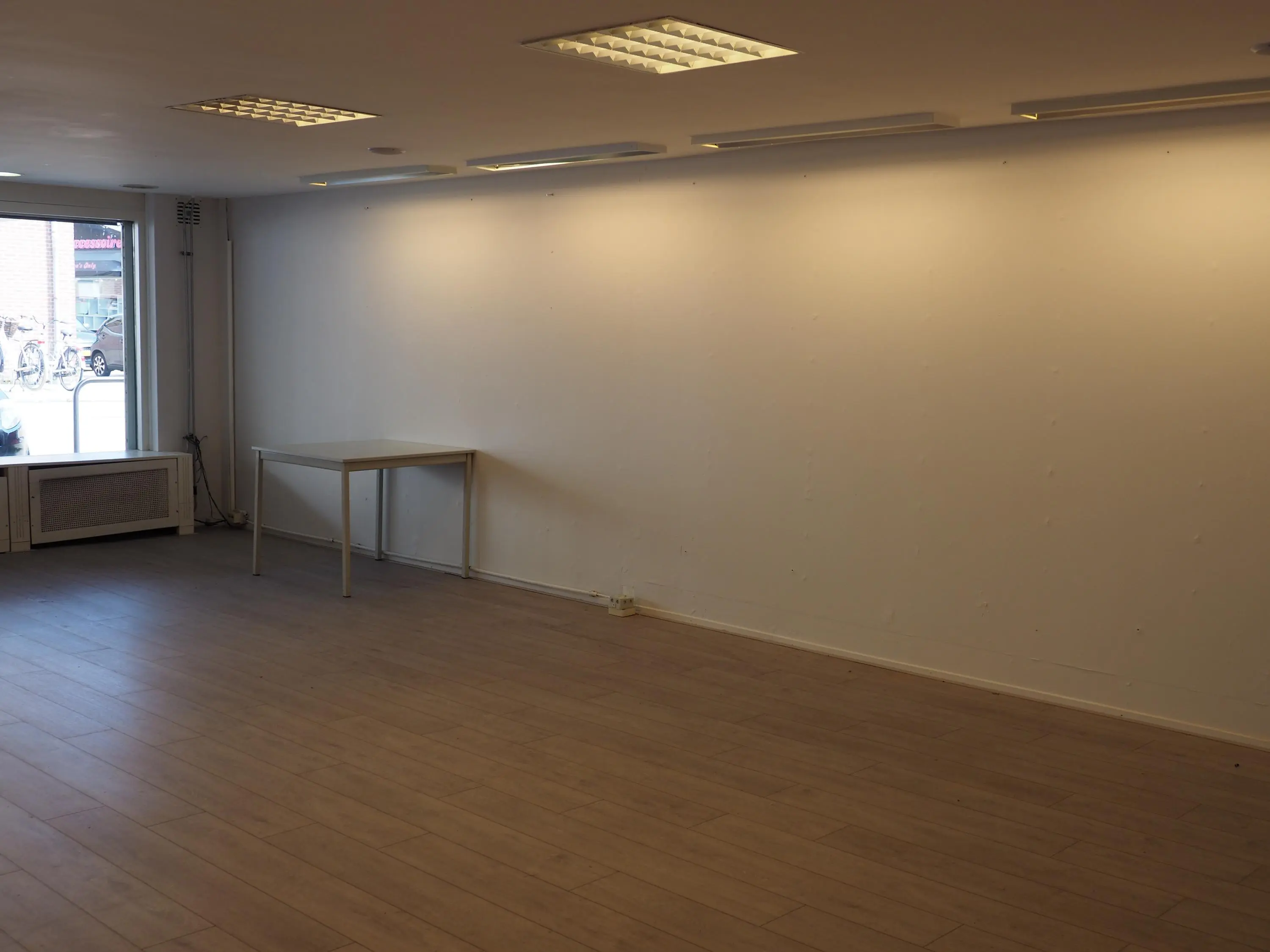 Middels een loopdeur bereikt u de winkelruimte. De winkelruimte is ca. 13,8 meter diep en 5,8 meter breed. Het pand beschikt over een eigen toiletruimte en separaat een wasruimte v.v. een vaste wastafel.