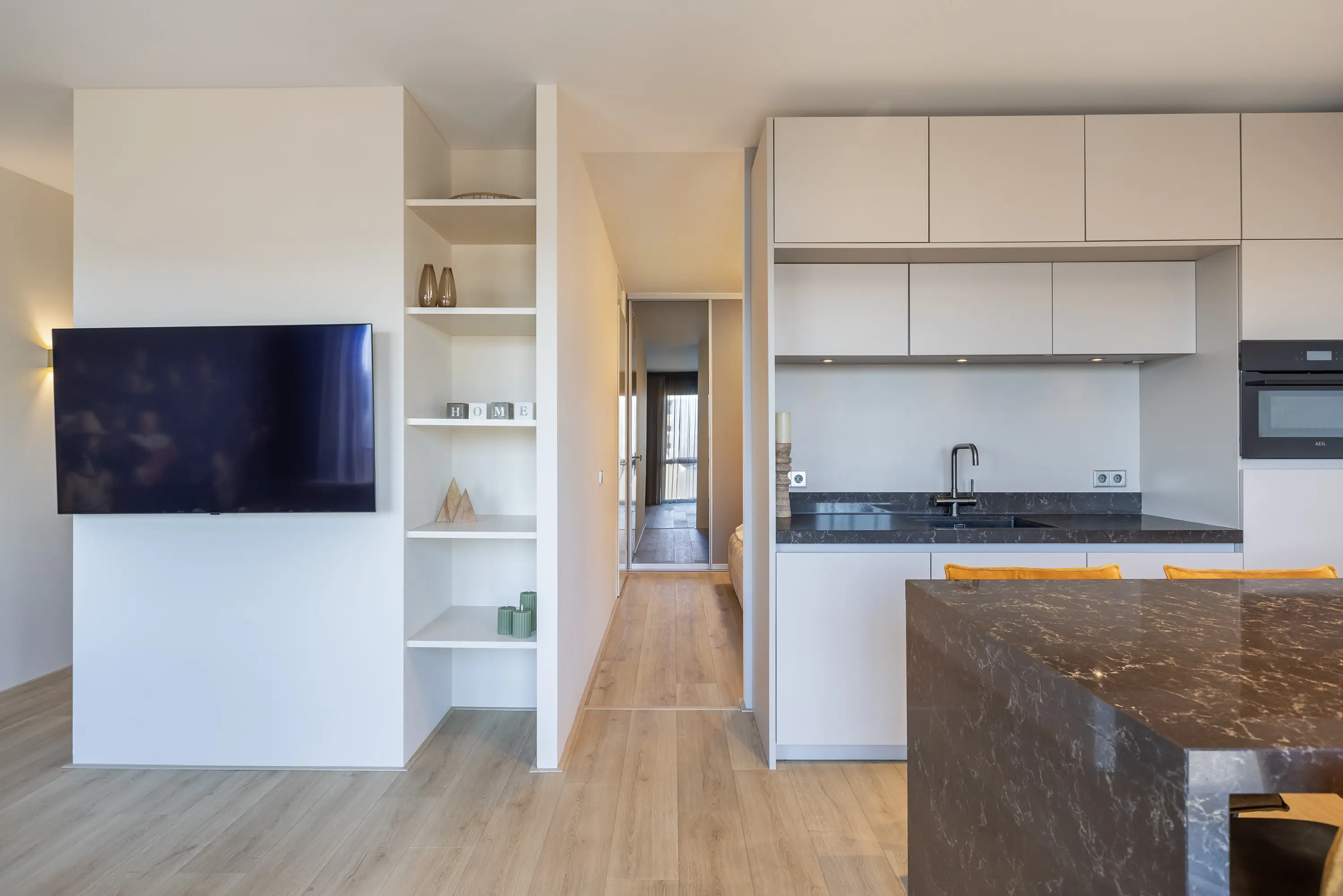 Dit appartement is modern en stijlvol afgewerkt en beschikt over vloerverwarming en -koeling, wat zorgt voor comfort in elk seizoen.