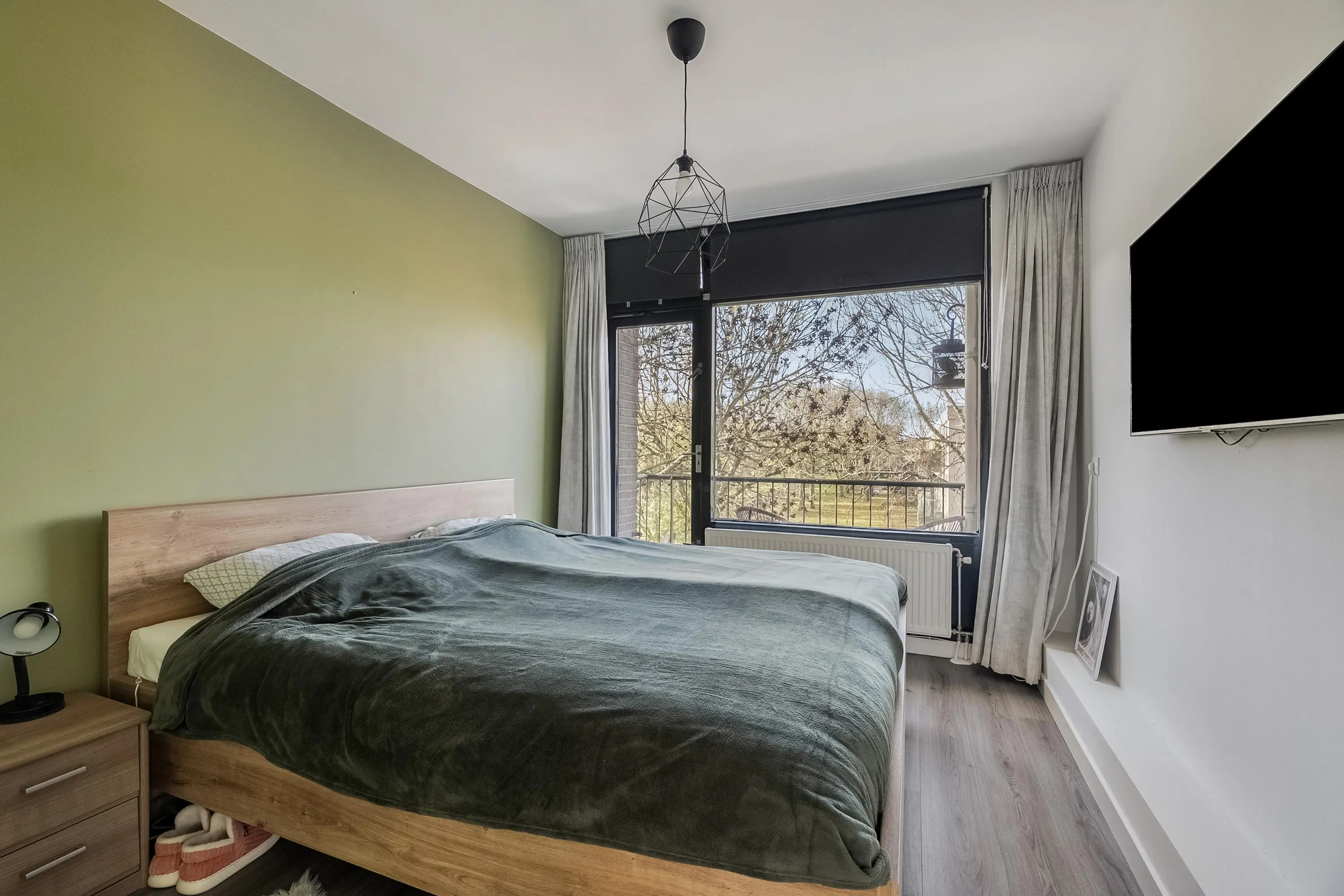 Slaapkamer 1 – gelegen aan de voorzijde, met toegang tot het balkon op (westen), ideaal voor de avondzon.