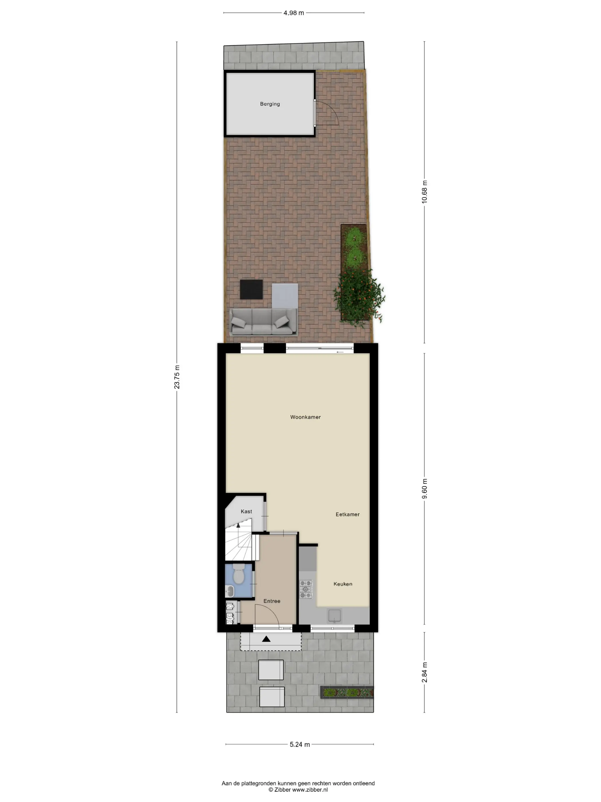 • Tuin met vrijstaande stenen berging