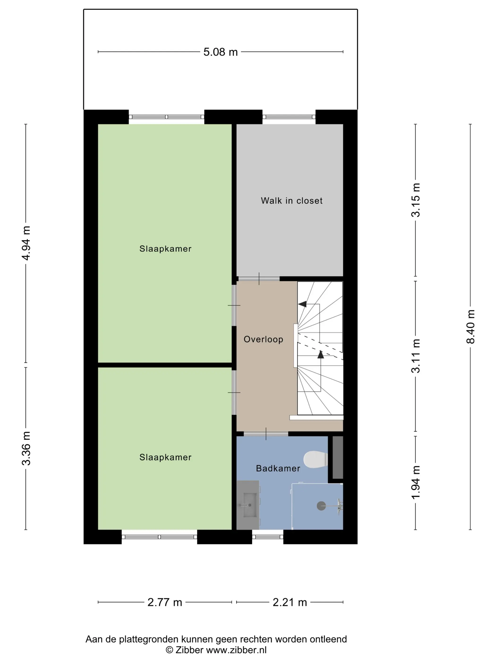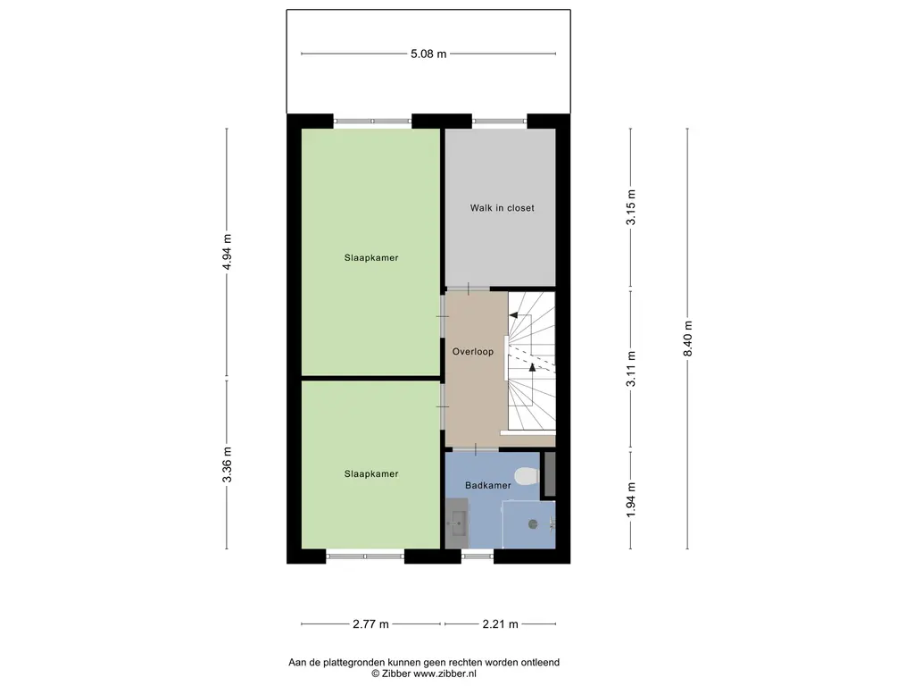 Slaapkamer 3 (ca. 7 m2) is gelegen aan de achterzijde van de woning.