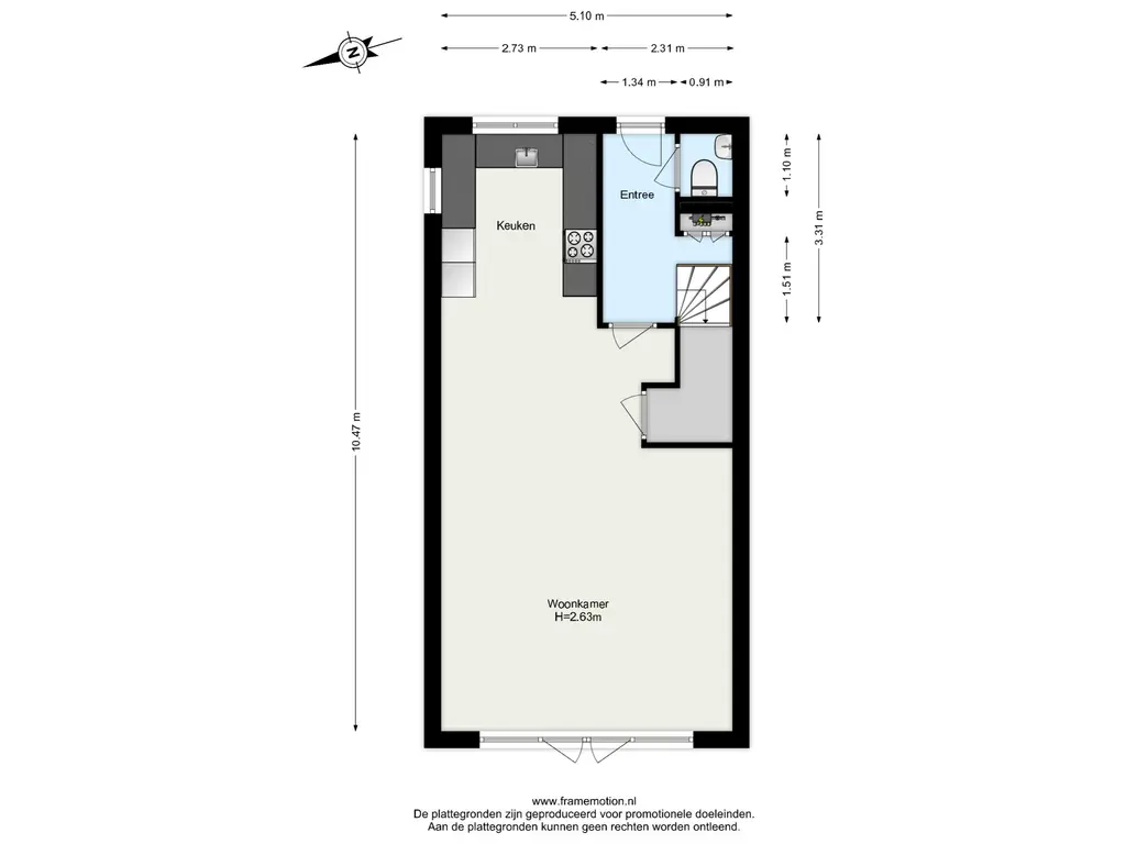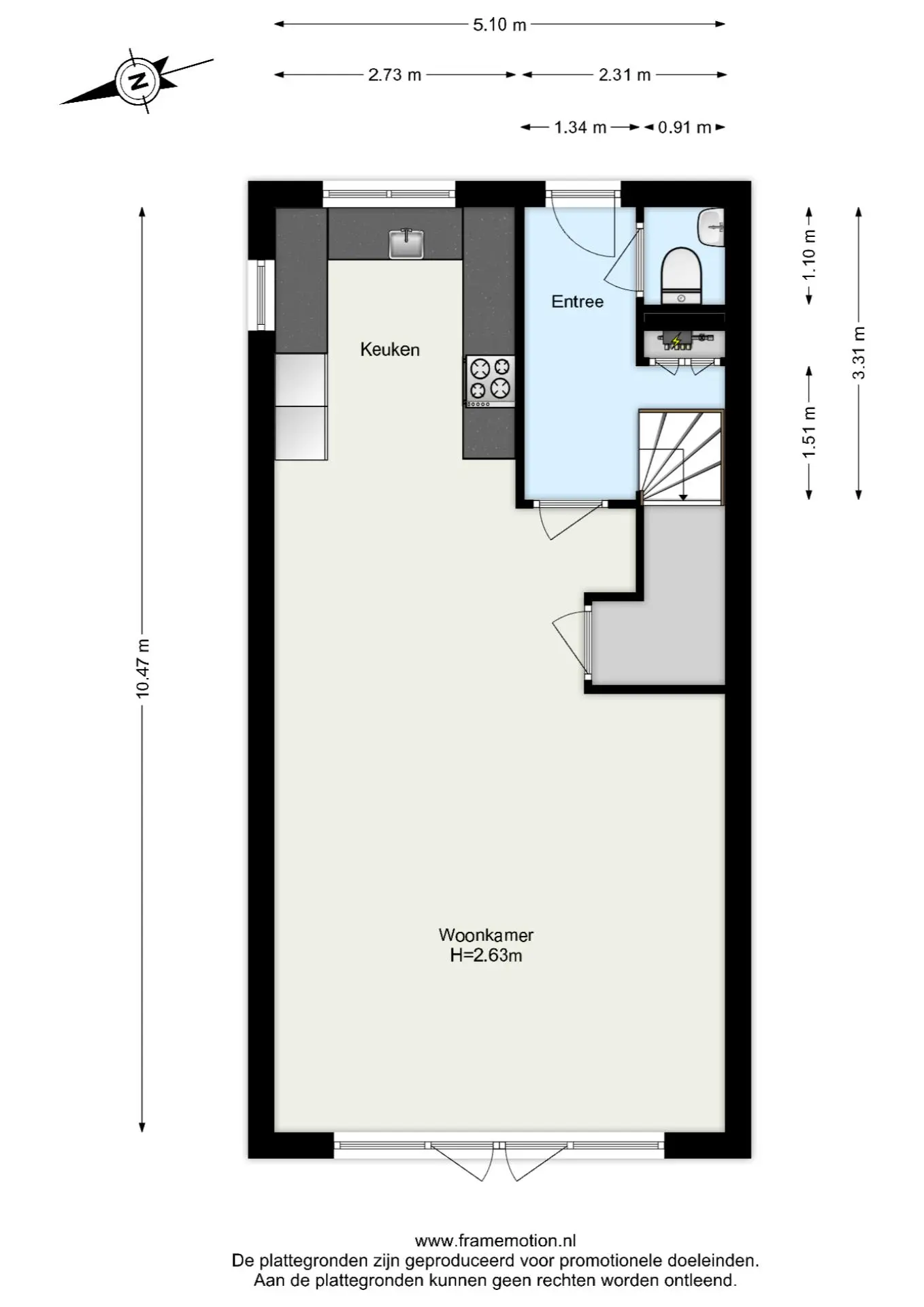 Je komt binnen in de hal met de meterkast, het toilet en de trap naar boven. Vanuit hier loop je door naar de gezellige woonkamer.