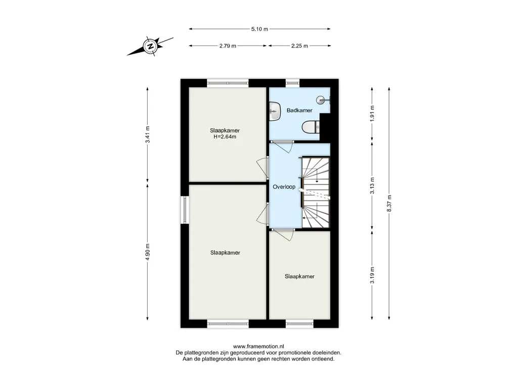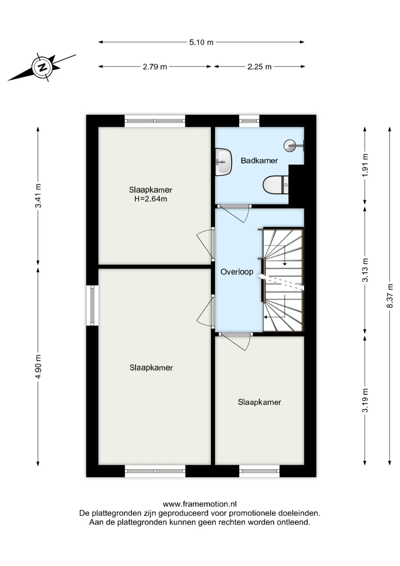 Op deze verdieping vind je drie slaapkamers en de badkamer.
