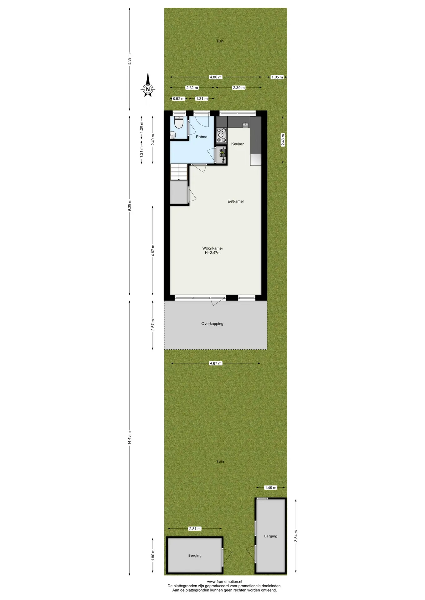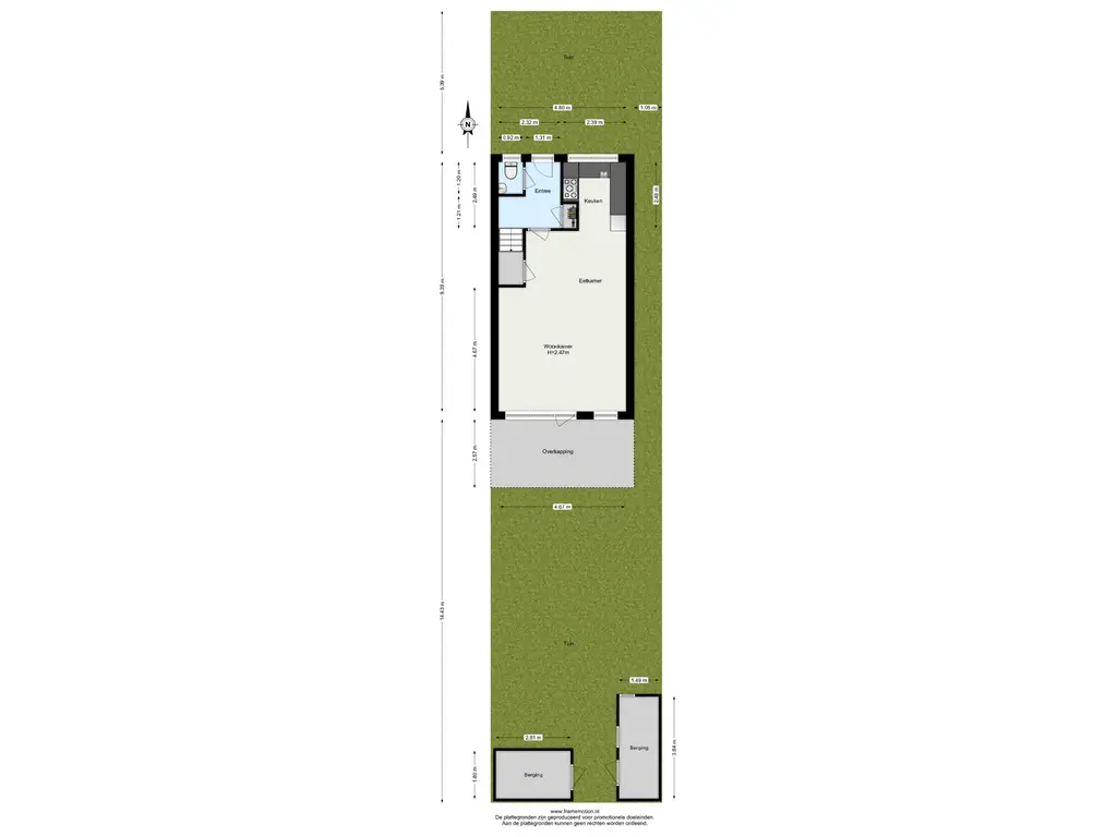 - Diepe, zonnige tuin op het zuiden van ruim 14 meter met sierbestrating, overkapping en twee bergingen.