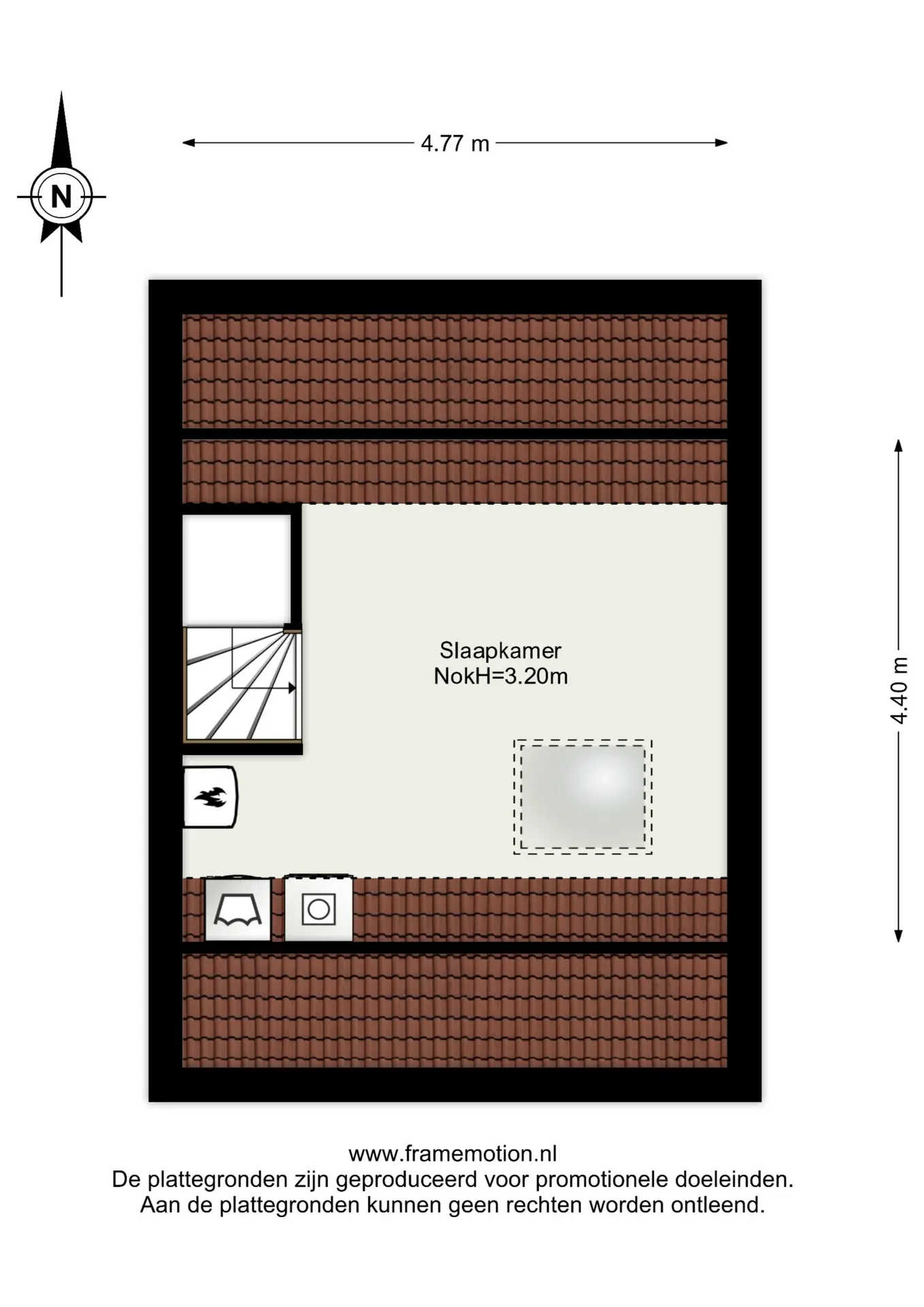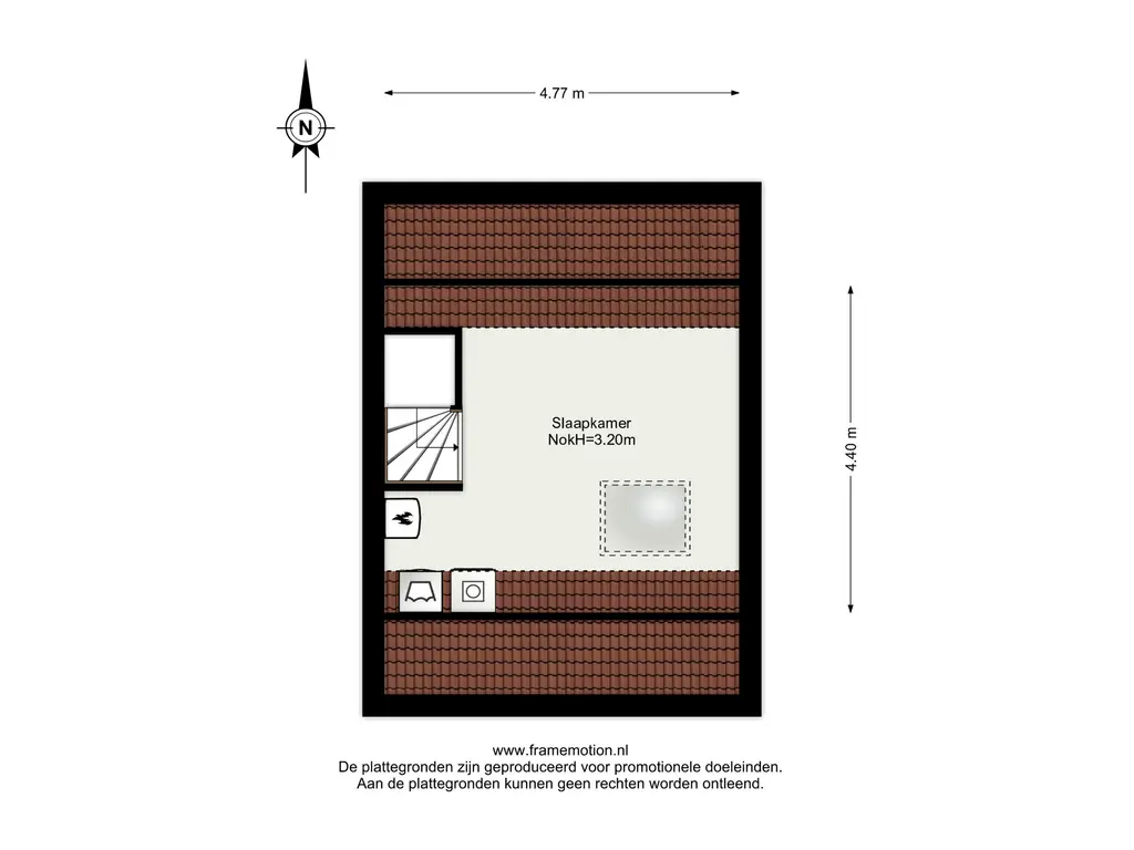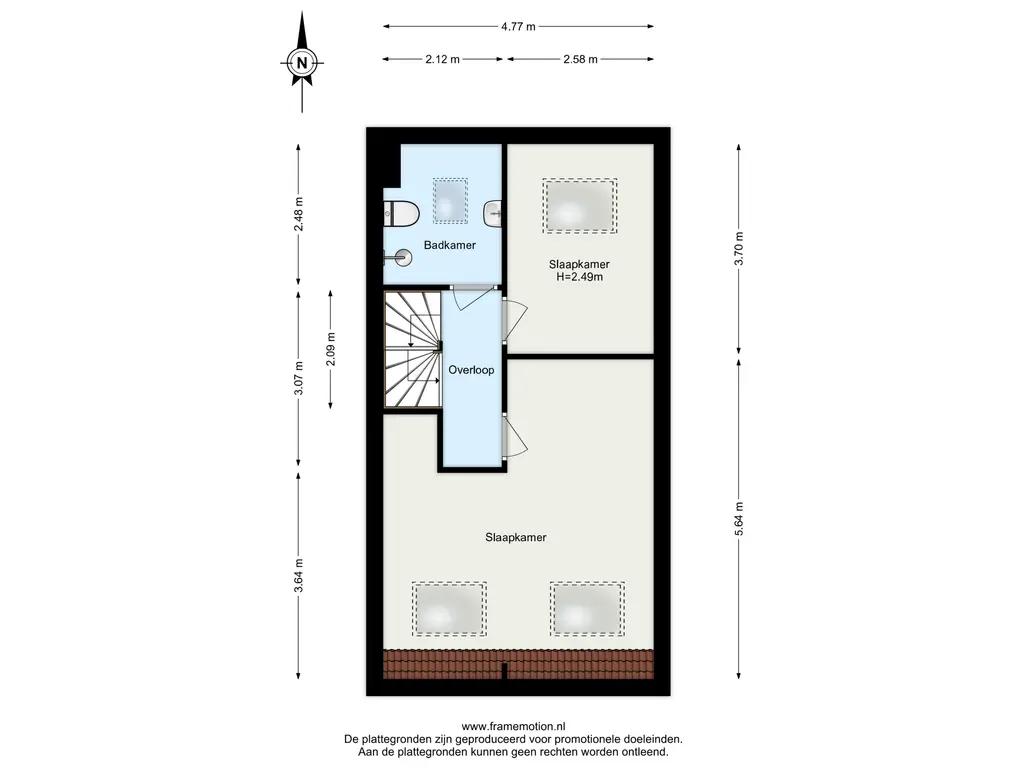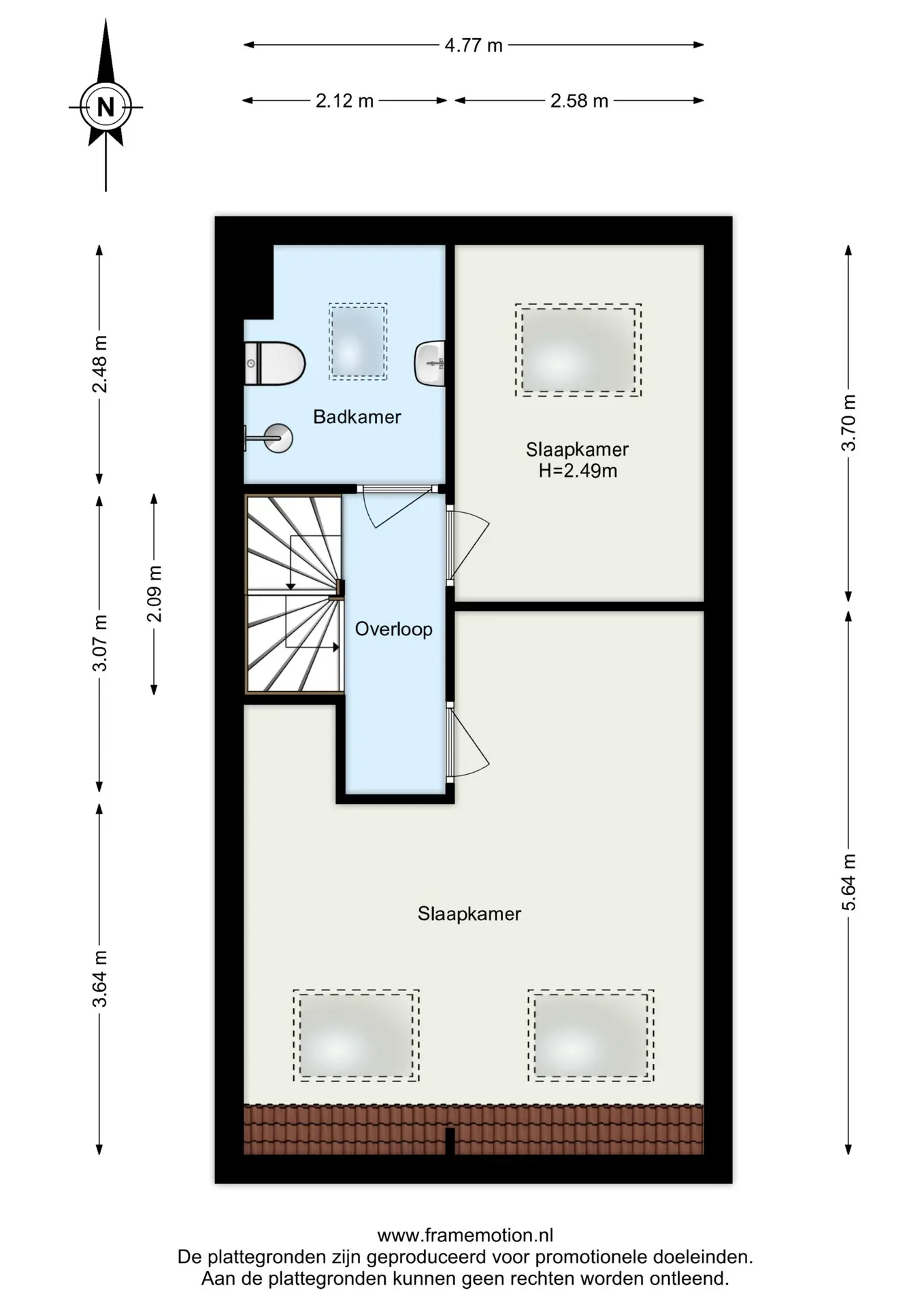 De tweede slaapkamer (ca. 10 m²) ligt aan de voorzijde en beschikt ook over een Velux dakraam.