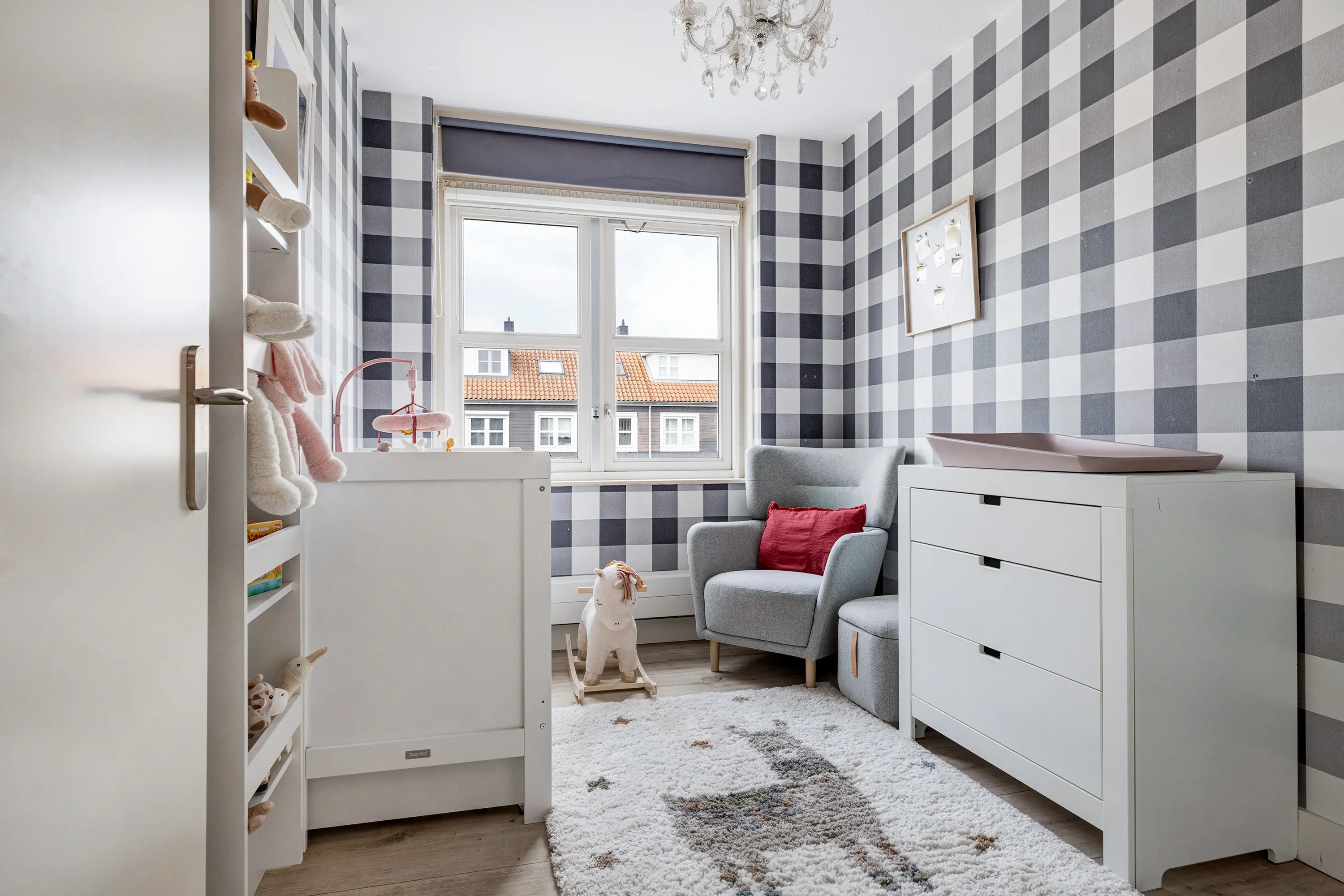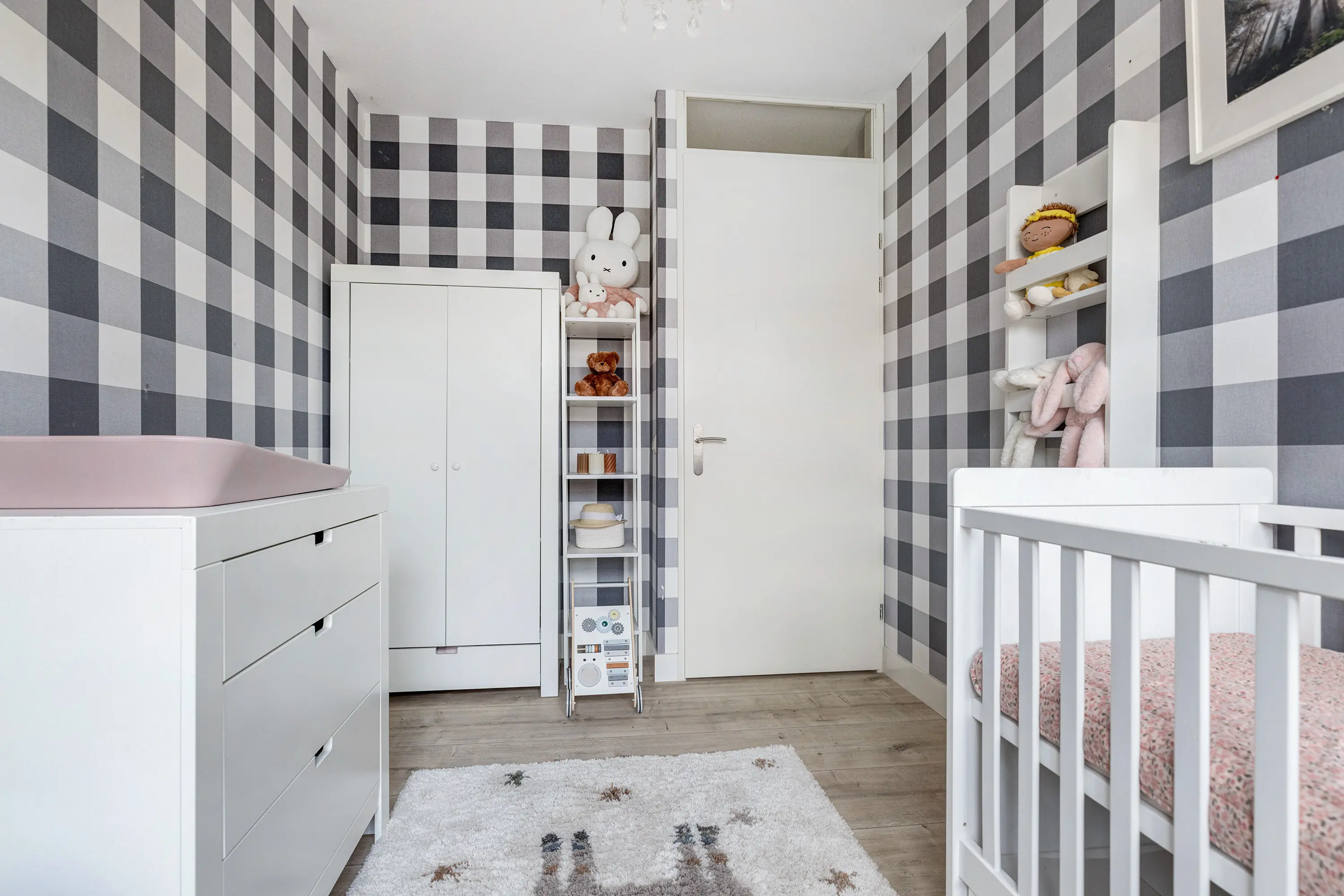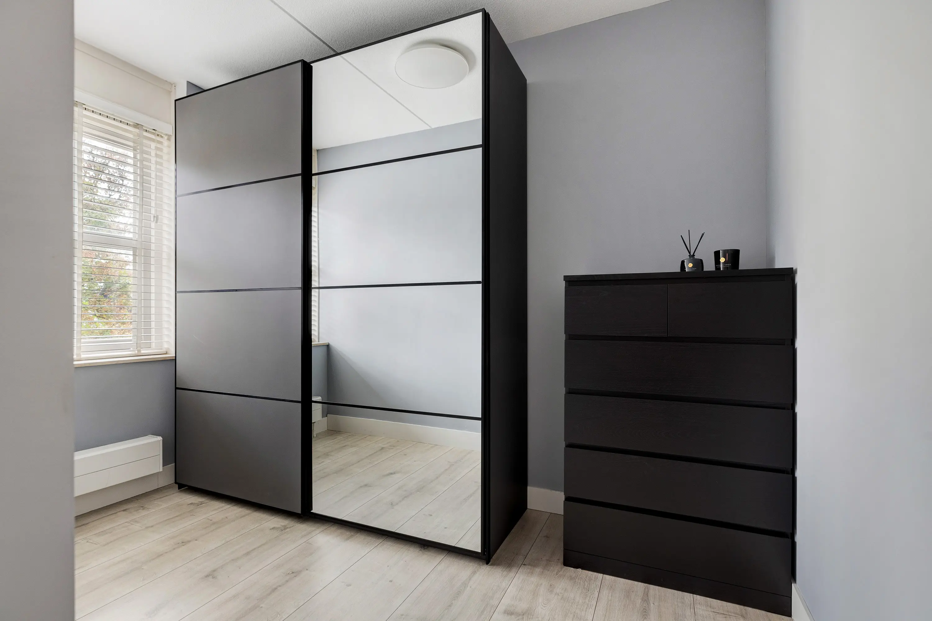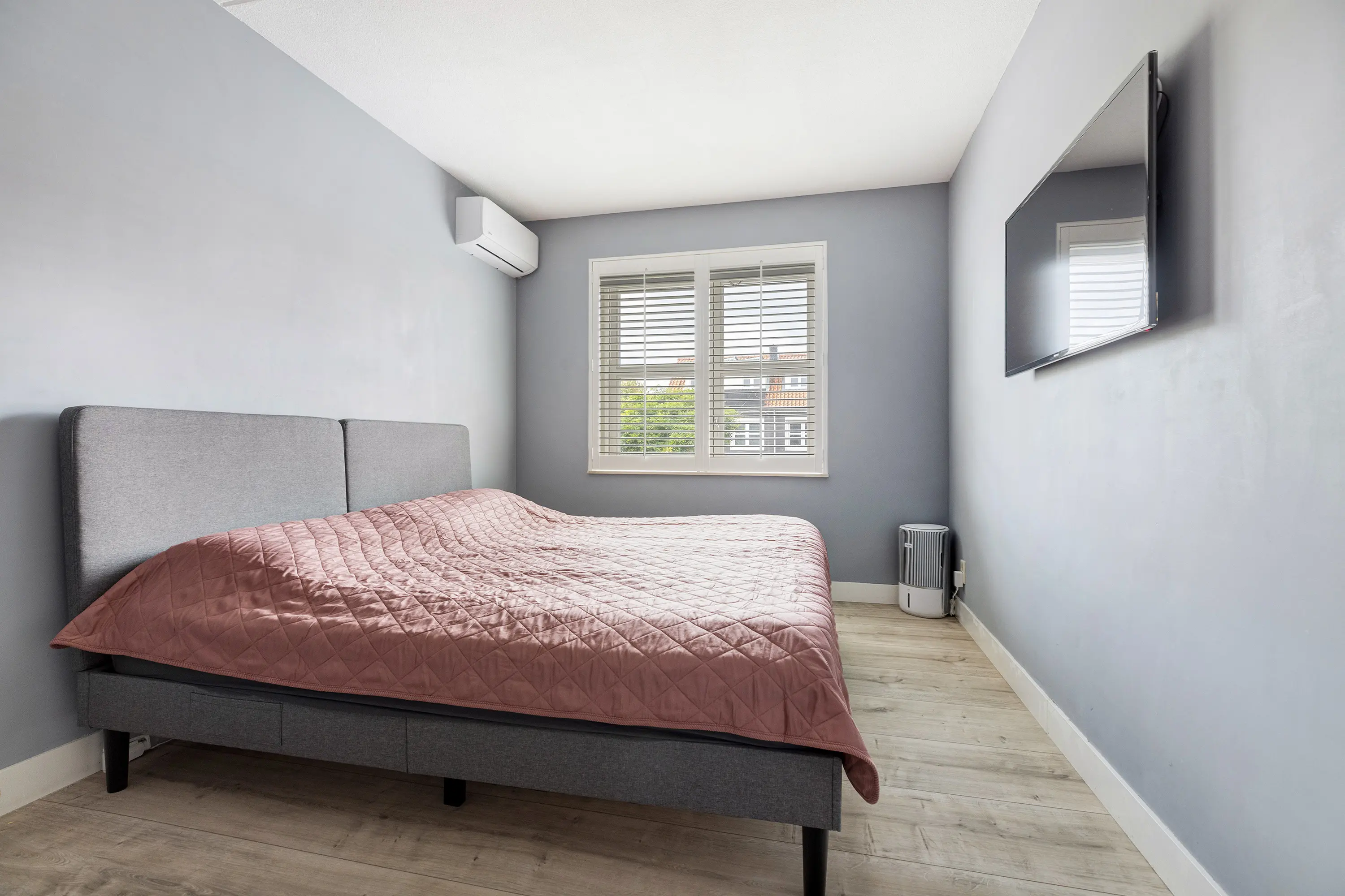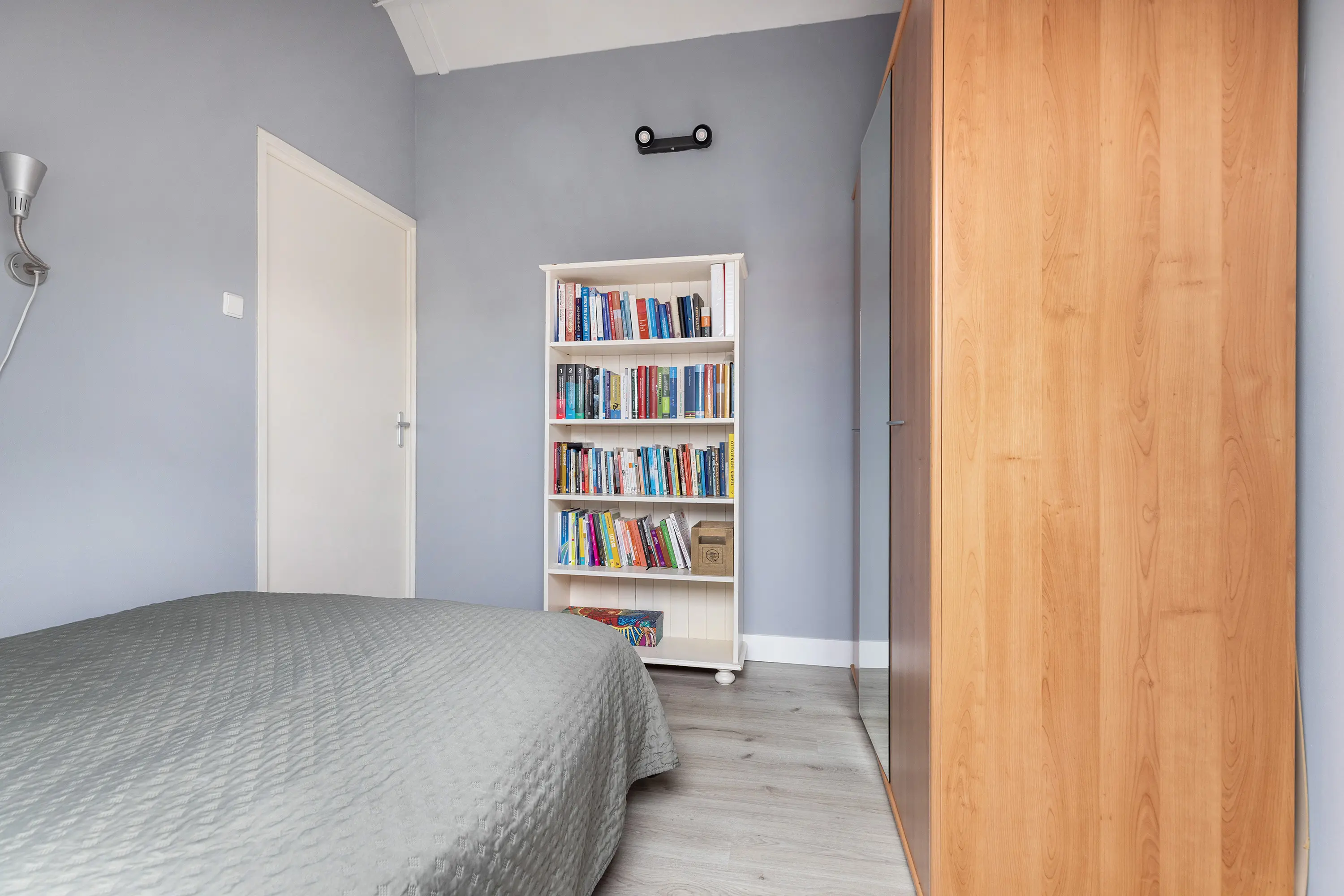 Slaapkamer 2 (ca. 9 m²) eveneens aan de achterzijde, een fijne kinderkamer of werkkamer.