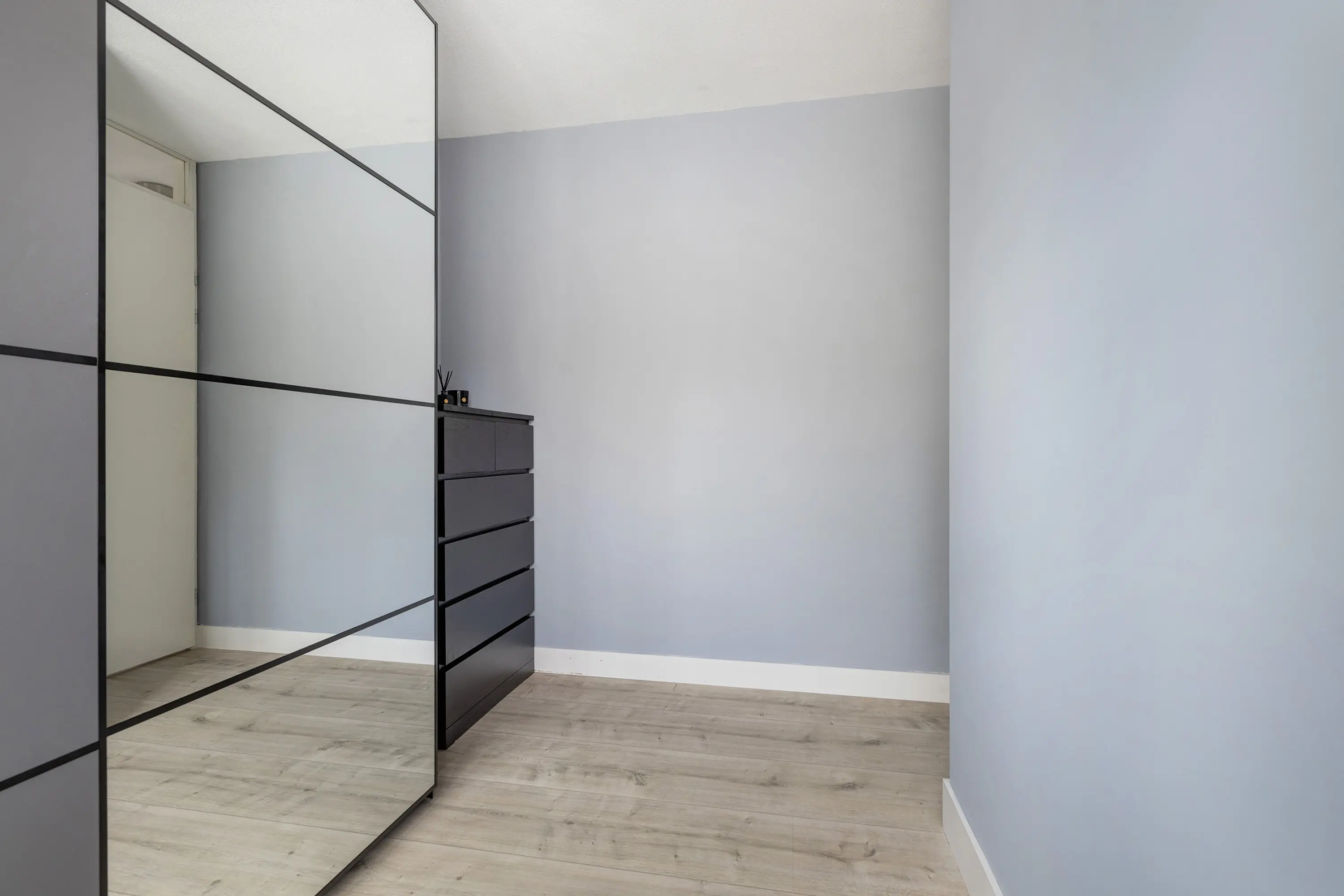 Slaapkamer 3 (ca. 8 m²) gelegen aan de voorzijde, momenteel in gebruik als kastenkamer.