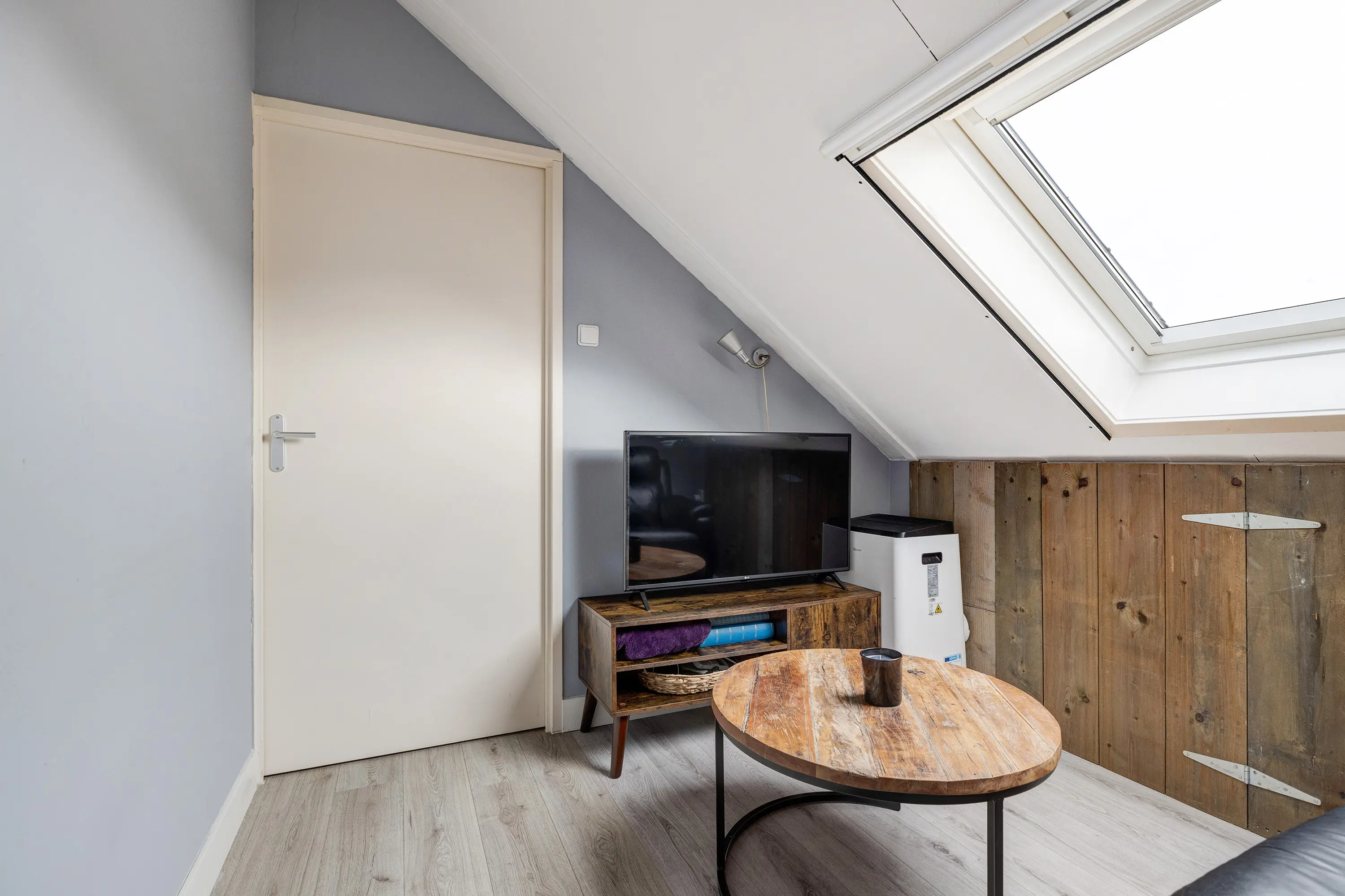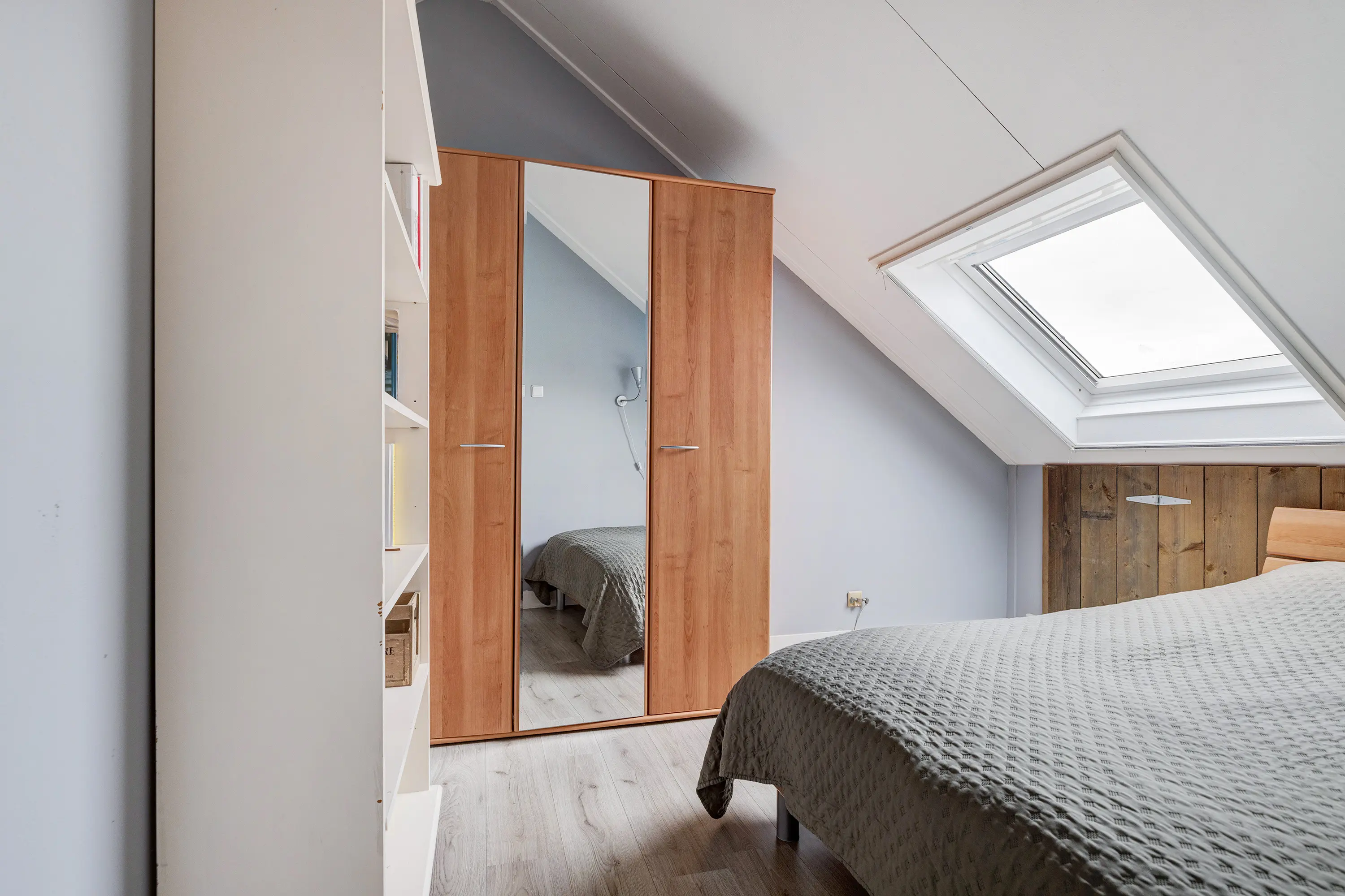Slaapkamer 5 (ca. 6 m²) gelegen aan de voorzijde, voorzien van een Velux dakraam, rolhor en verduisterend rolgordijn.