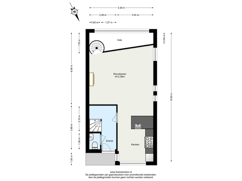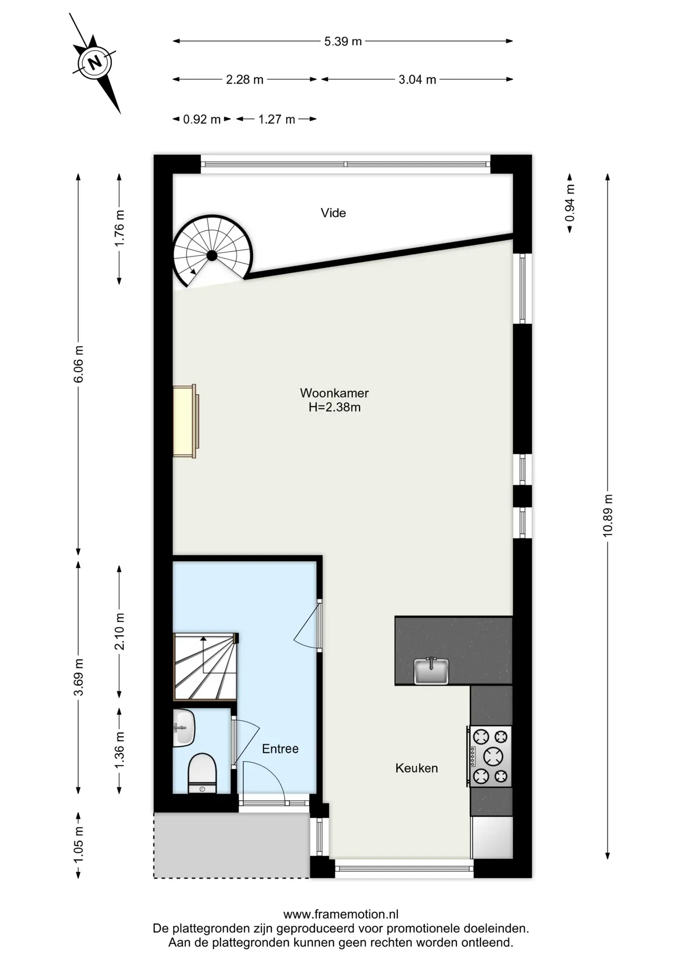 Deze verdieping is via de spiltrap vanuit het souterrain of via de trap vanuit de voortuin bereikbaar. De hal aan de voorzijde geeft toegang tot de toiletruimte en extra bergruimte onder de trap. De toiletruimte is afgewerkt met stoere zwarte tegels en uitgevoerd met een hangend toilet en een RVS fonteintje.