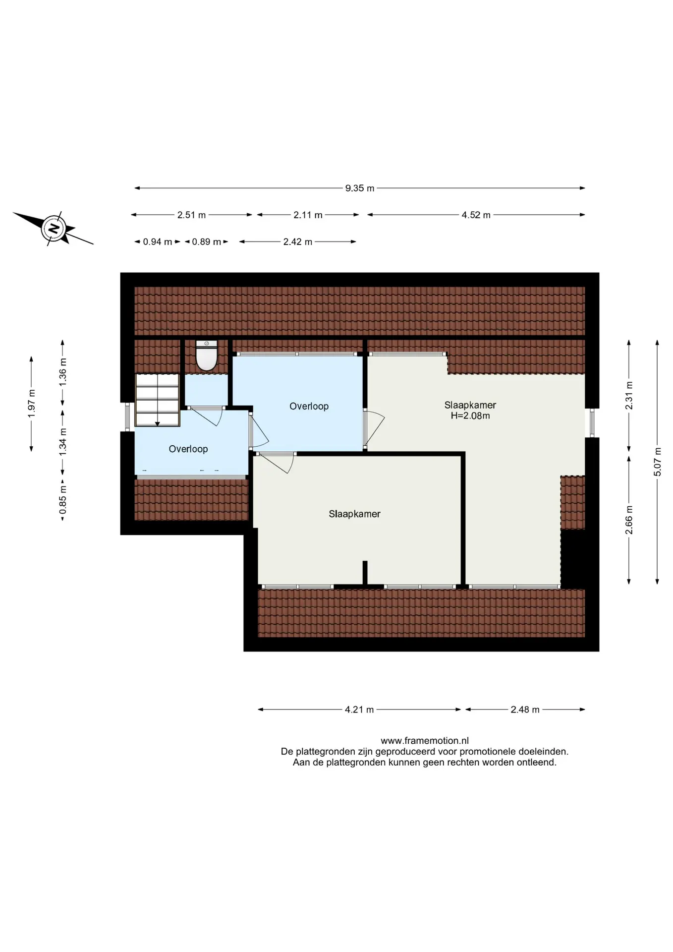 Slaapkamer 2 (ca. 17 m²) is gelegen aan de zijkant van de woning.