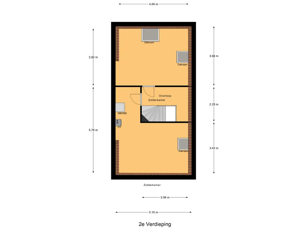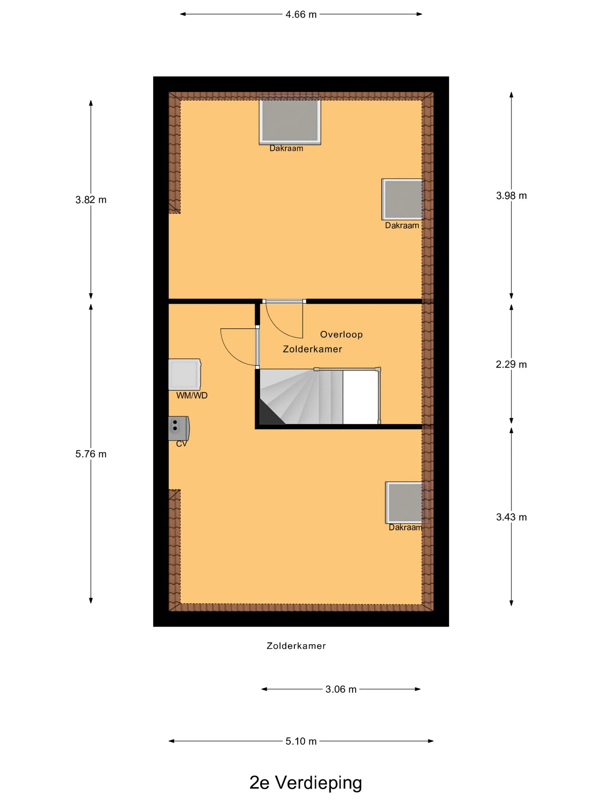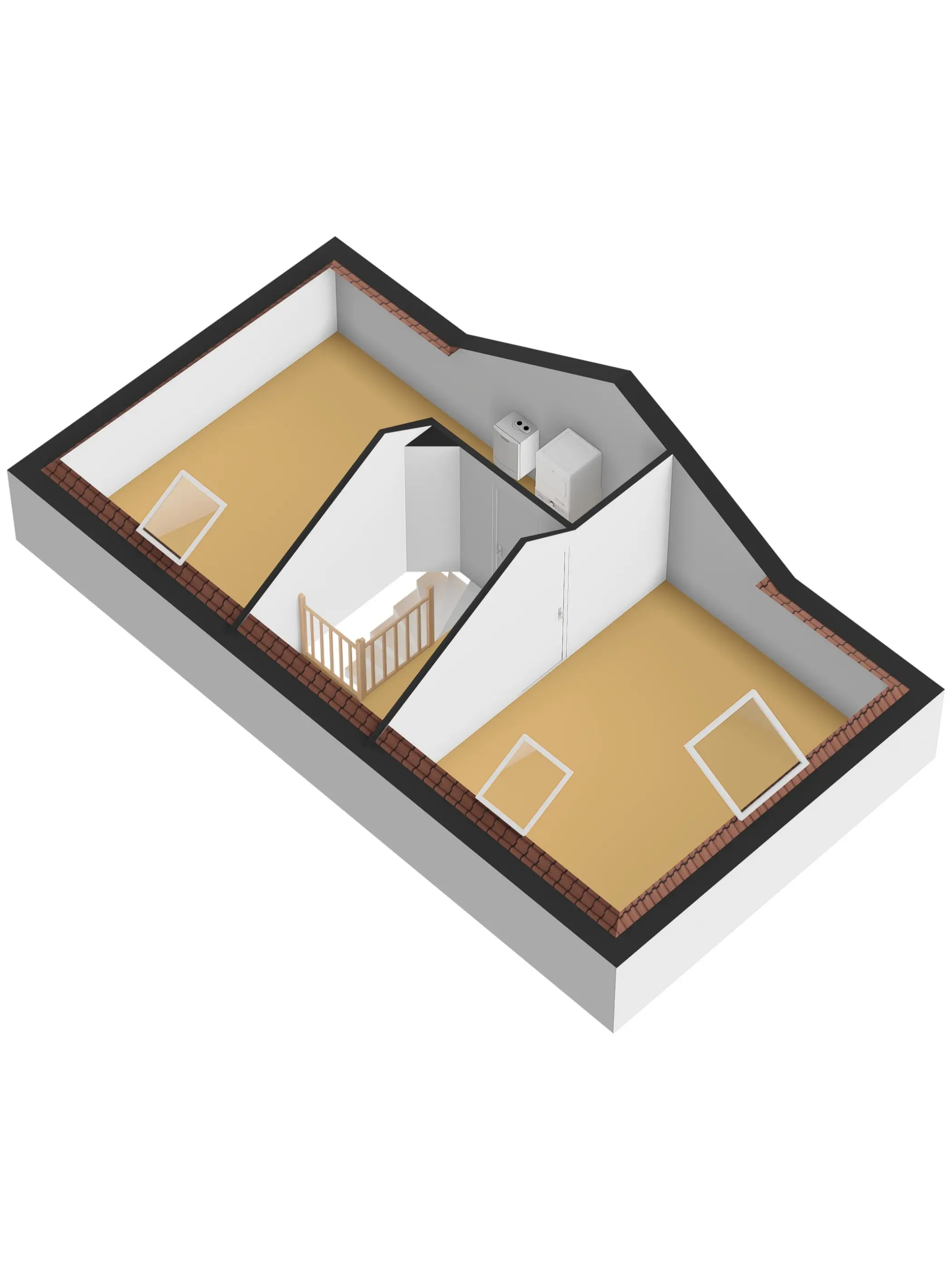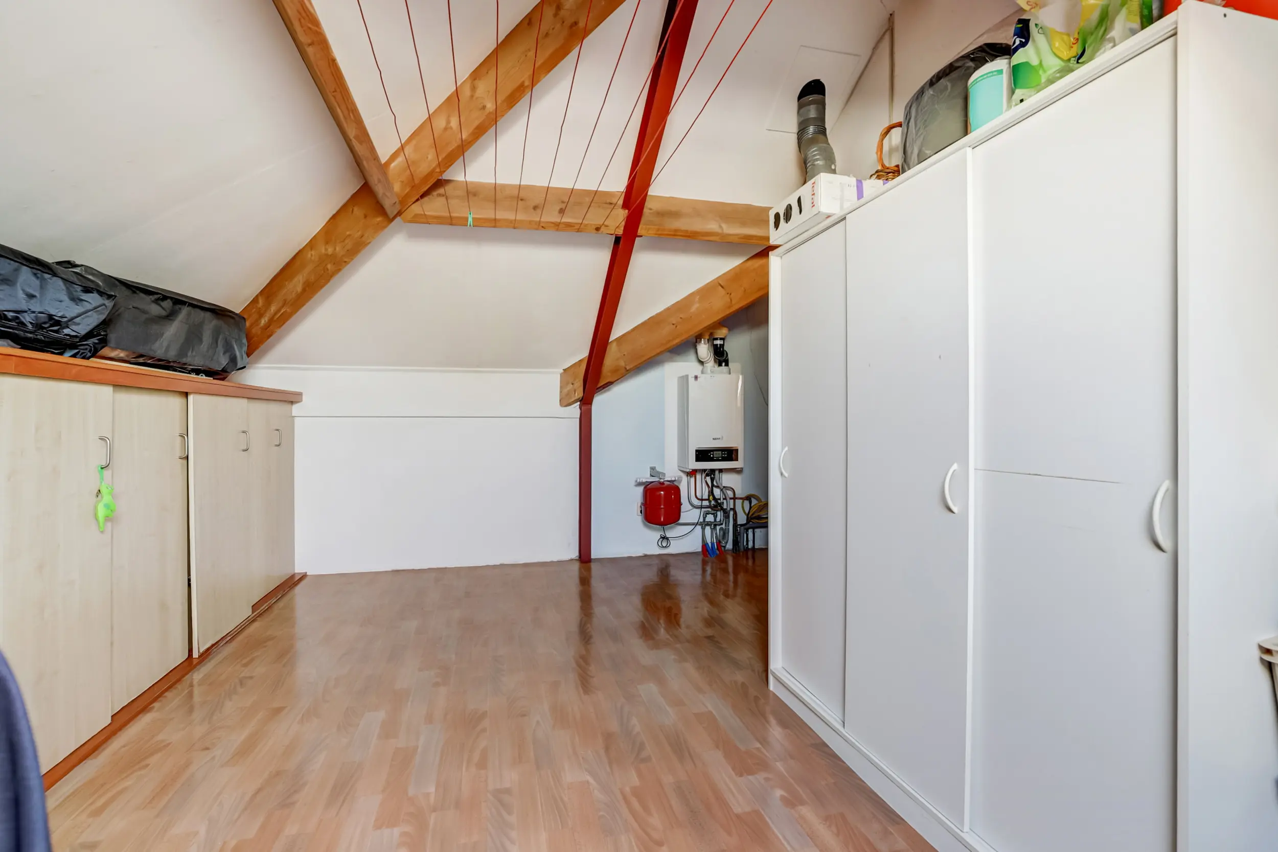 De tweede verdieping is bijzonder ruim en is opgedeeld in 2 kamers. Dankzij de 2 Velux dakramen is er volop licht en daardoor zijn de mogelijkheden groot: een extra slaapkamer, werkkamer of hobbyruimte behoren allemaal tot de opties. Daarnaast zijn hier de CV-opstelling en wasmachine/ droger aansluitingen te vinden.