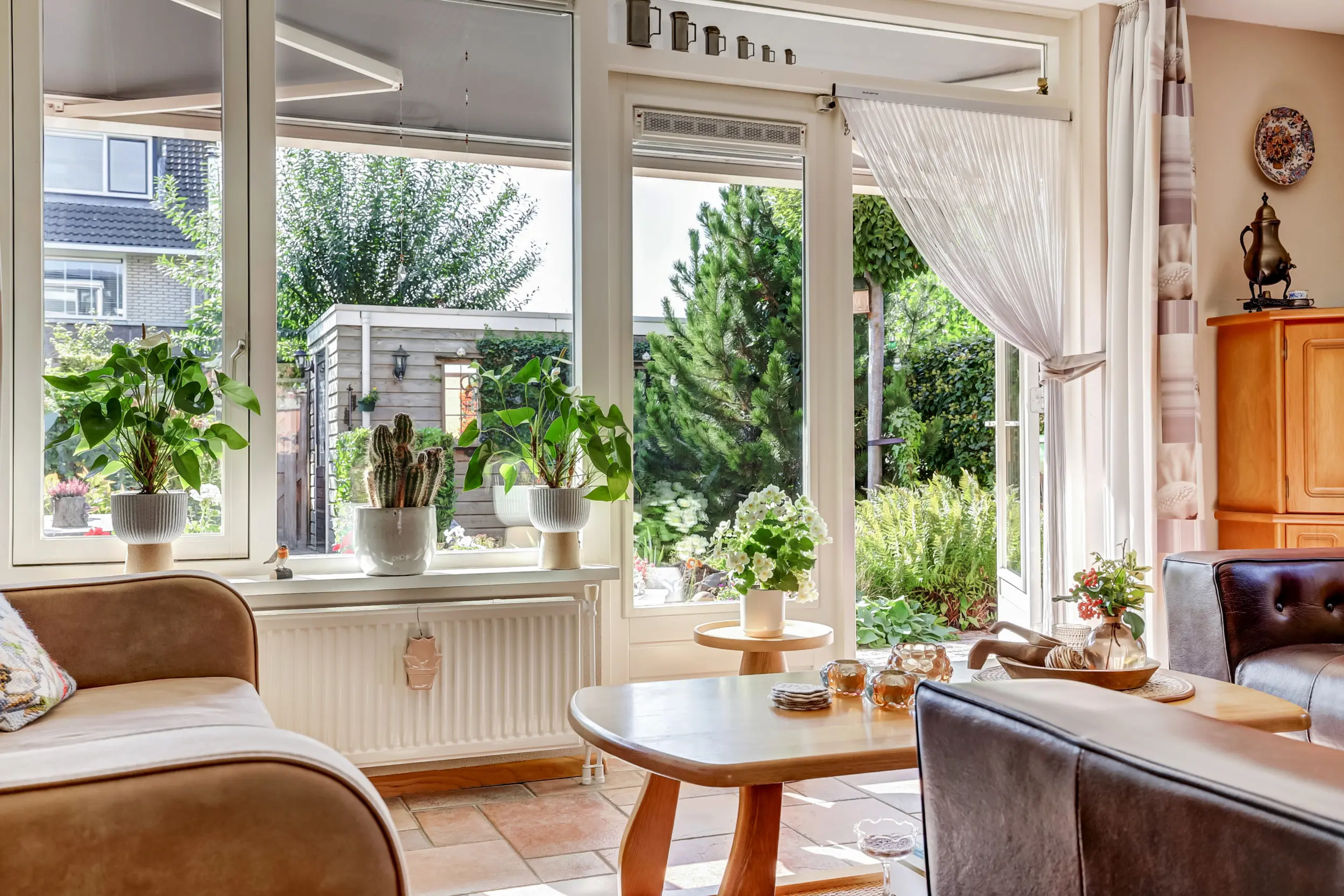 De achtertuin is een fijne plek om te ontspannen. De tuin is verzorgd aangelegd en beschikt over een houten berging, achterom en een sfeervolle vijverpartij. Ook is er ruimte genoeg voor een loungehoek of buitentafel. Een elektrisch bedienbaar zonnescherm aan de gevel biedt beschutting op warme dagen. De voortuin is eveneens fraai aangelegd en geeft de woning een nette uitstraling.