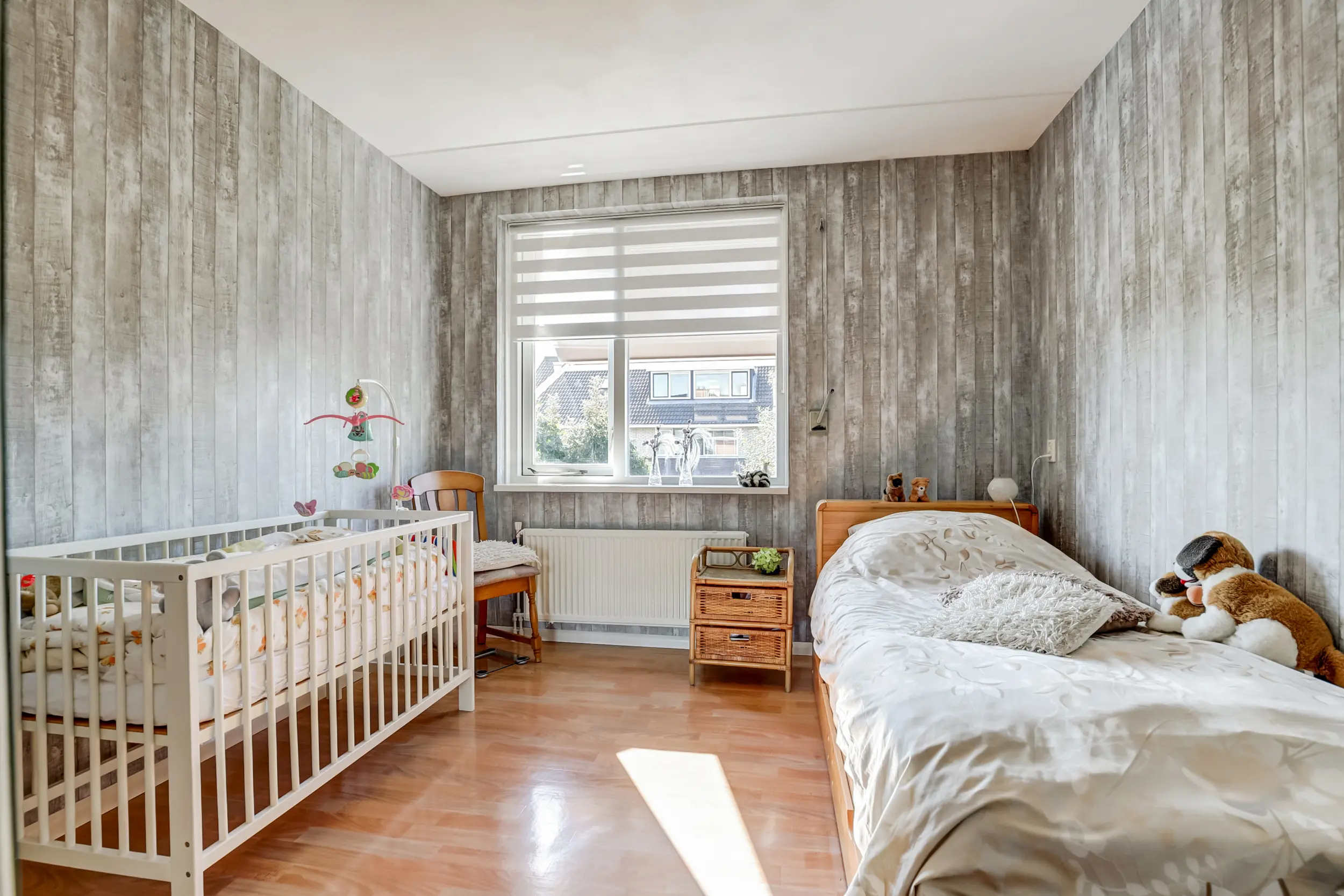 Alle slaapkamers zijn afgewerkt met een vinylvloer en behang wanden.
