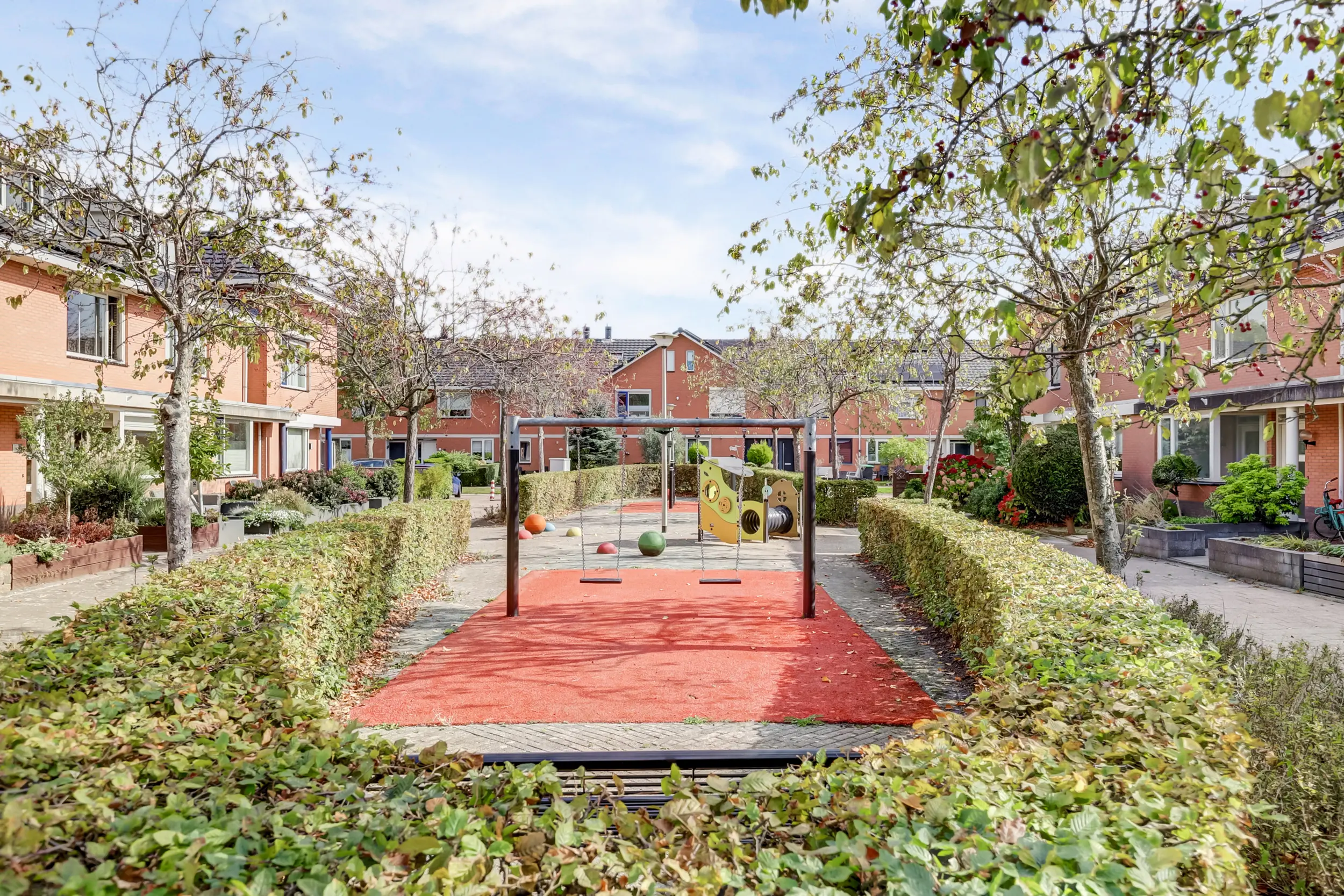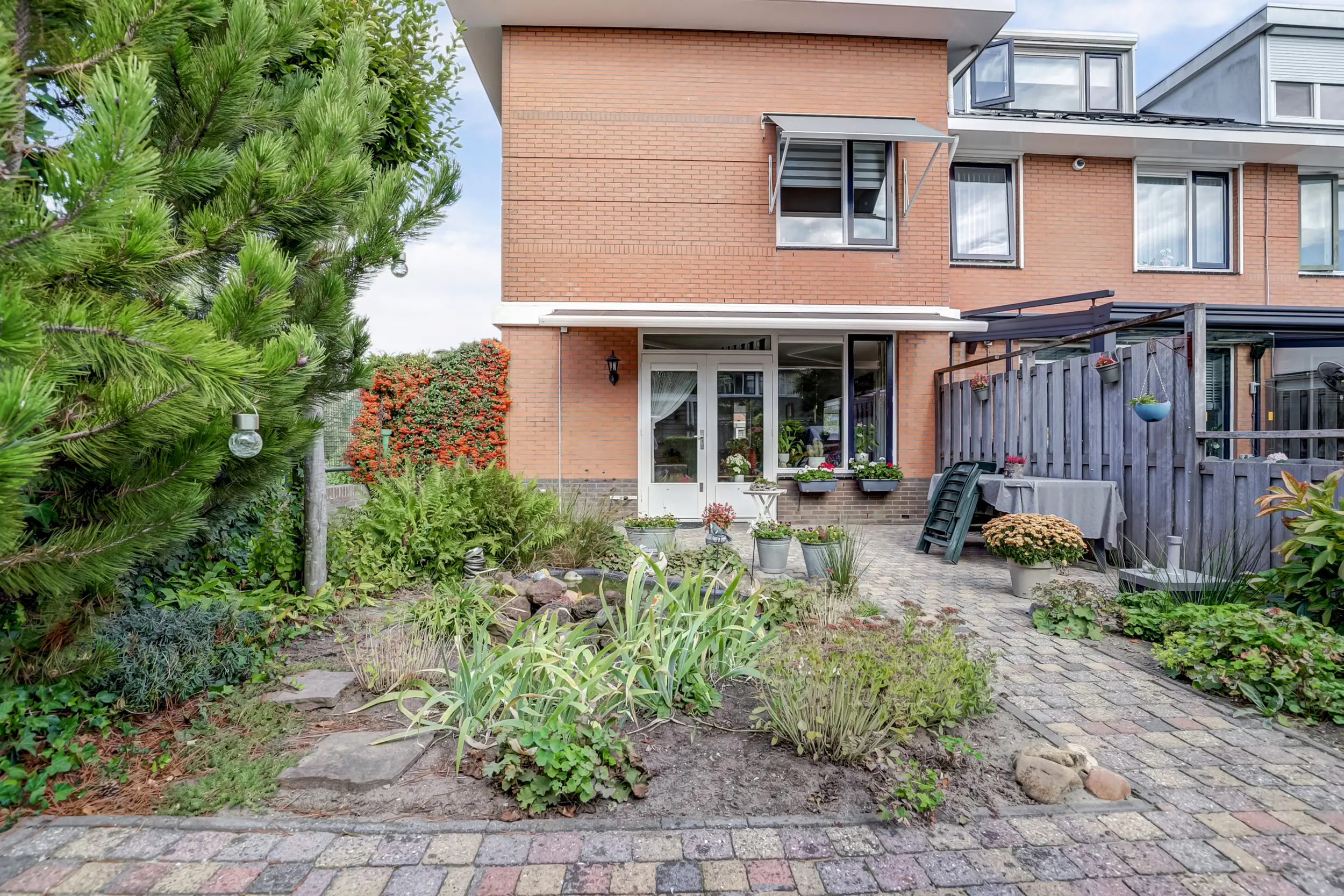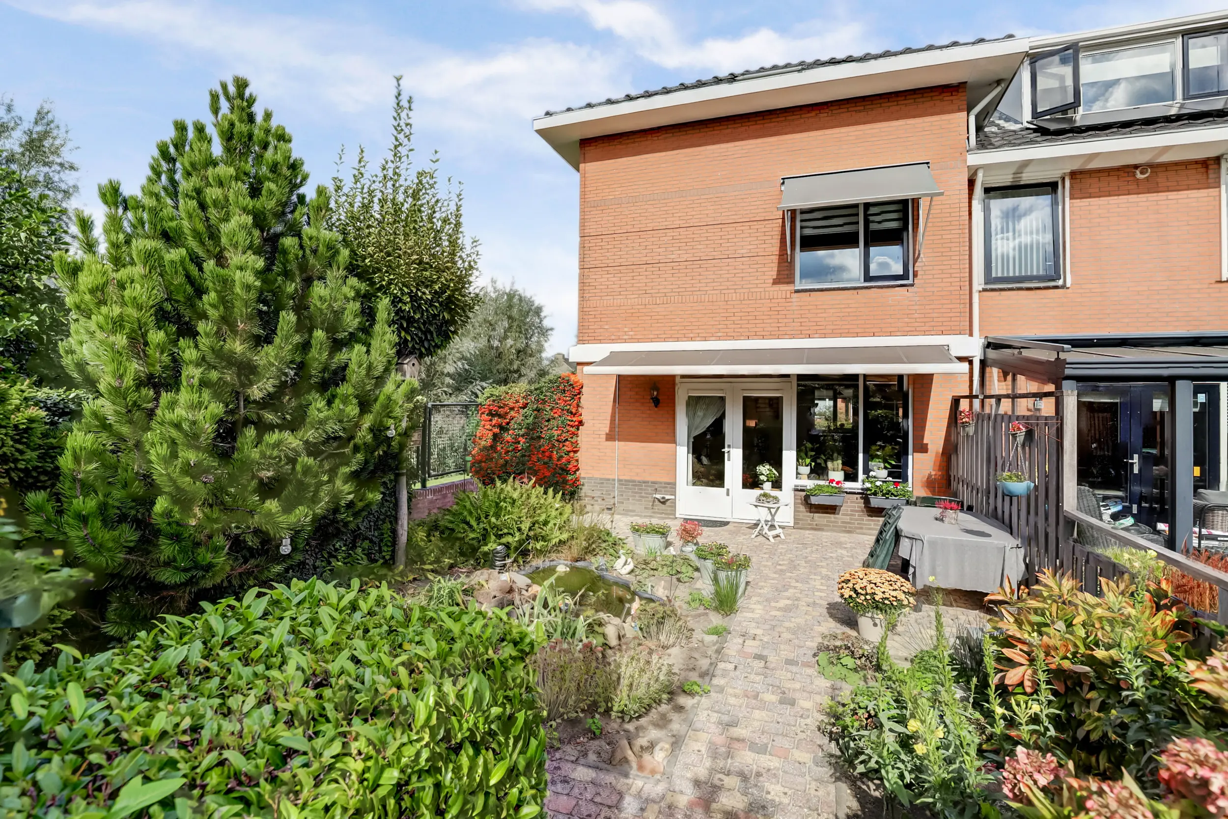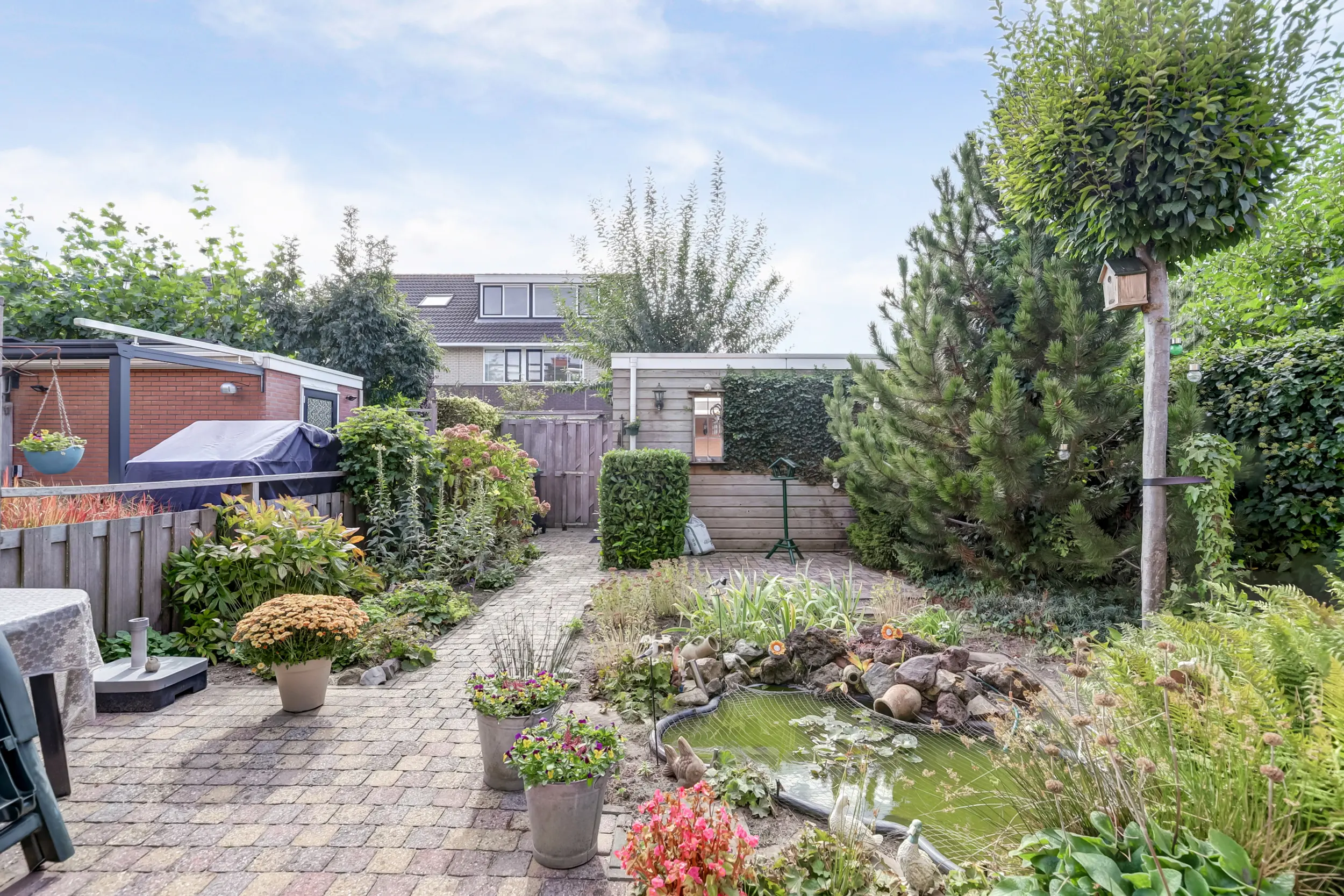 De achtertuin is een fijne plek om te ontspannen. De tuin is verzorgd aangelegd en beschikt over een berging, achterom en een sfeervolle vijverpartij. Ook is er ruimte genoeg voor een loungehoek of buitentafel. Een zonnescherm aan de gevel biedt beschutting op warme dagen. De voortuin is eveneens fraai aangelegd en geeft de woning een nette uitstraling.