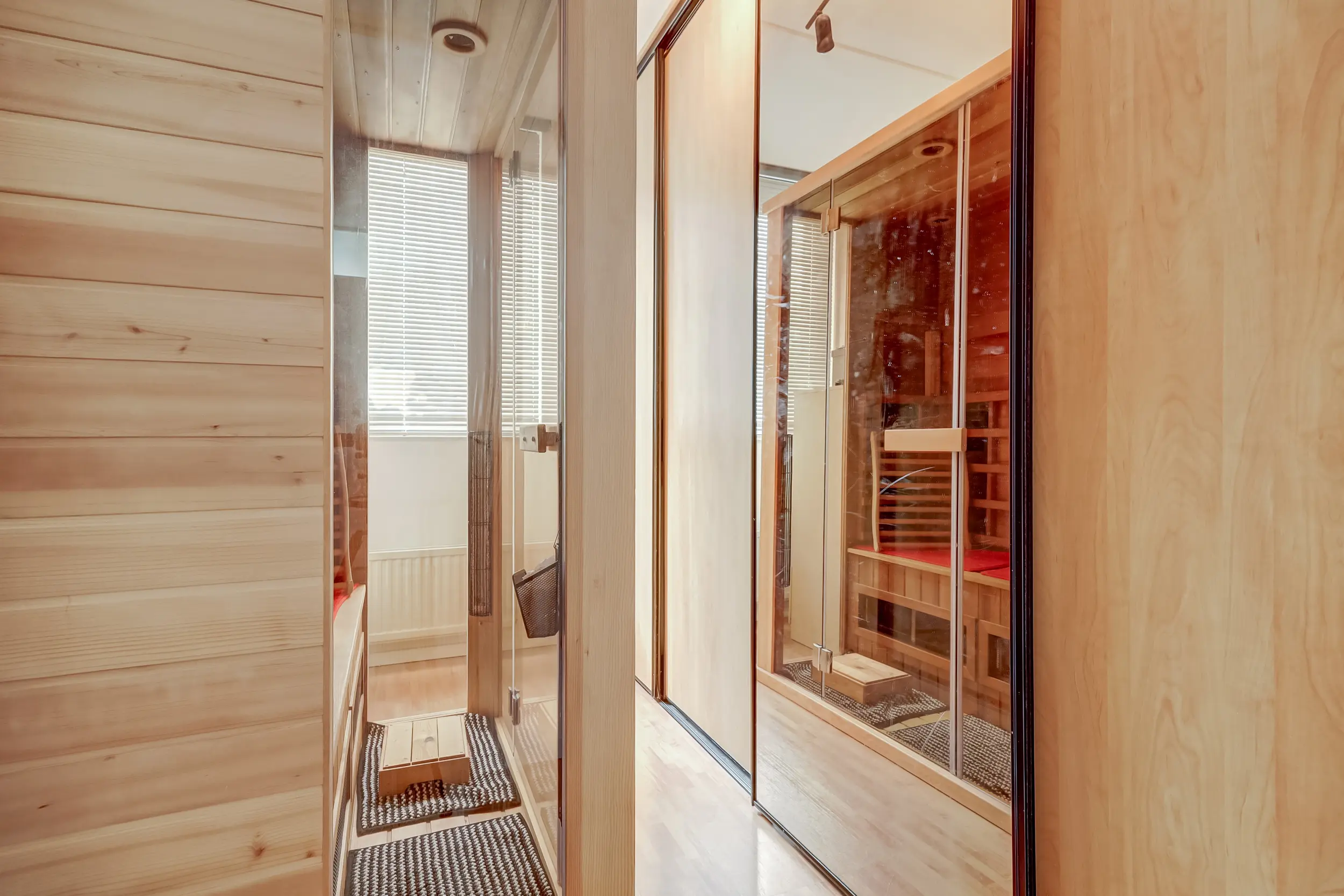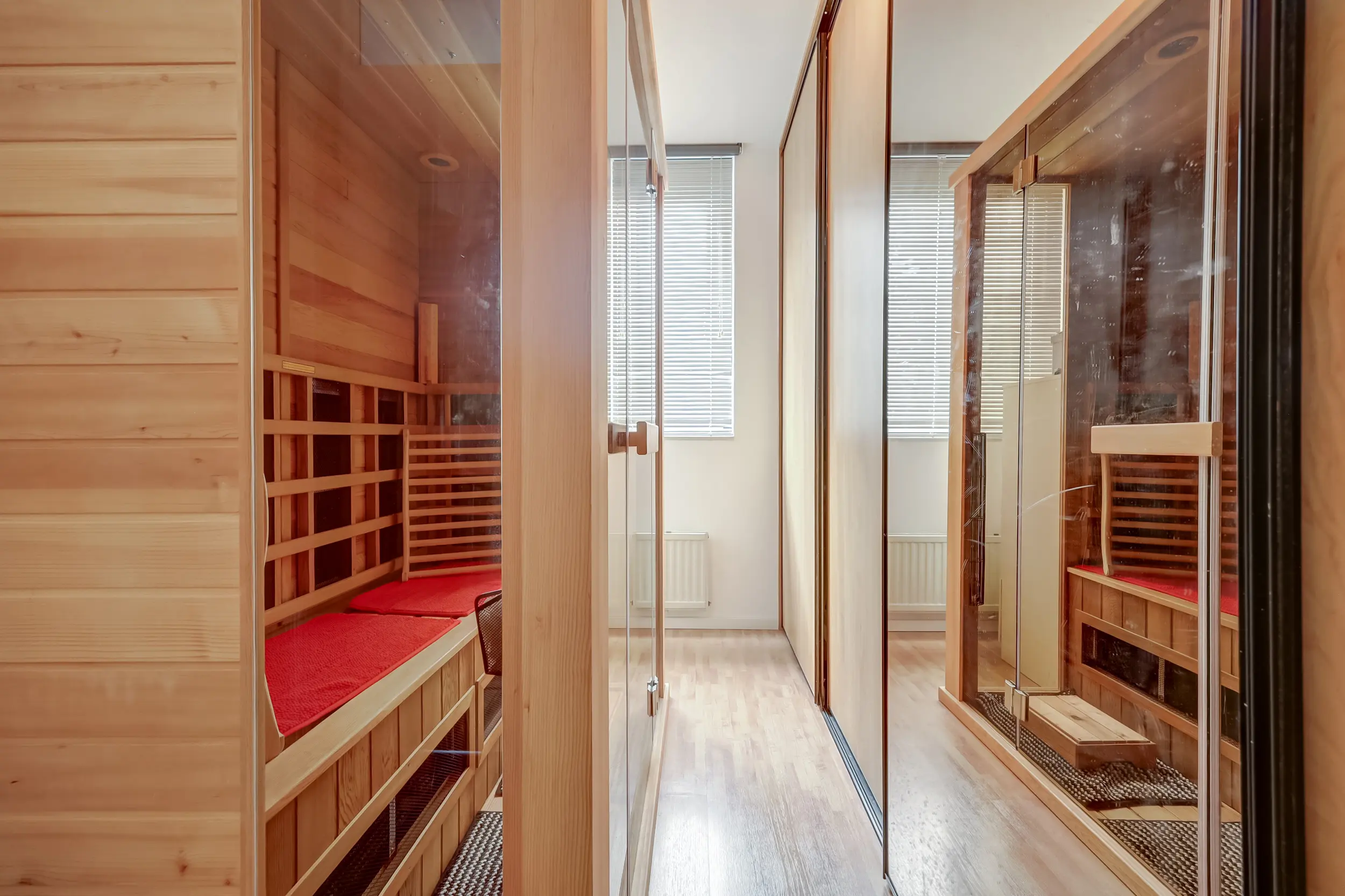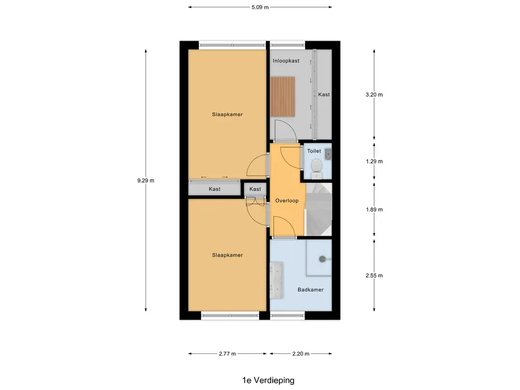 Op de eerste verdieping bevinden zich drie ruime slaapkamers en een badkamer. De slaapkamer (ca. 13 m²) aan de achterzijde beschikt over een vaste schuifkastenwand. De andere slaapkamer (ca. 7 m²) aan de achterzijde heeft een heerlijke sauna en extra vaste kastruimte. De slaapkamer (ca. 12 m²) aan de voorzijde is ook voorzien van een vaste inbouwkast. De slaapkamers op de eerste verdieping zijn afgewerkt met een laminaatvloer.