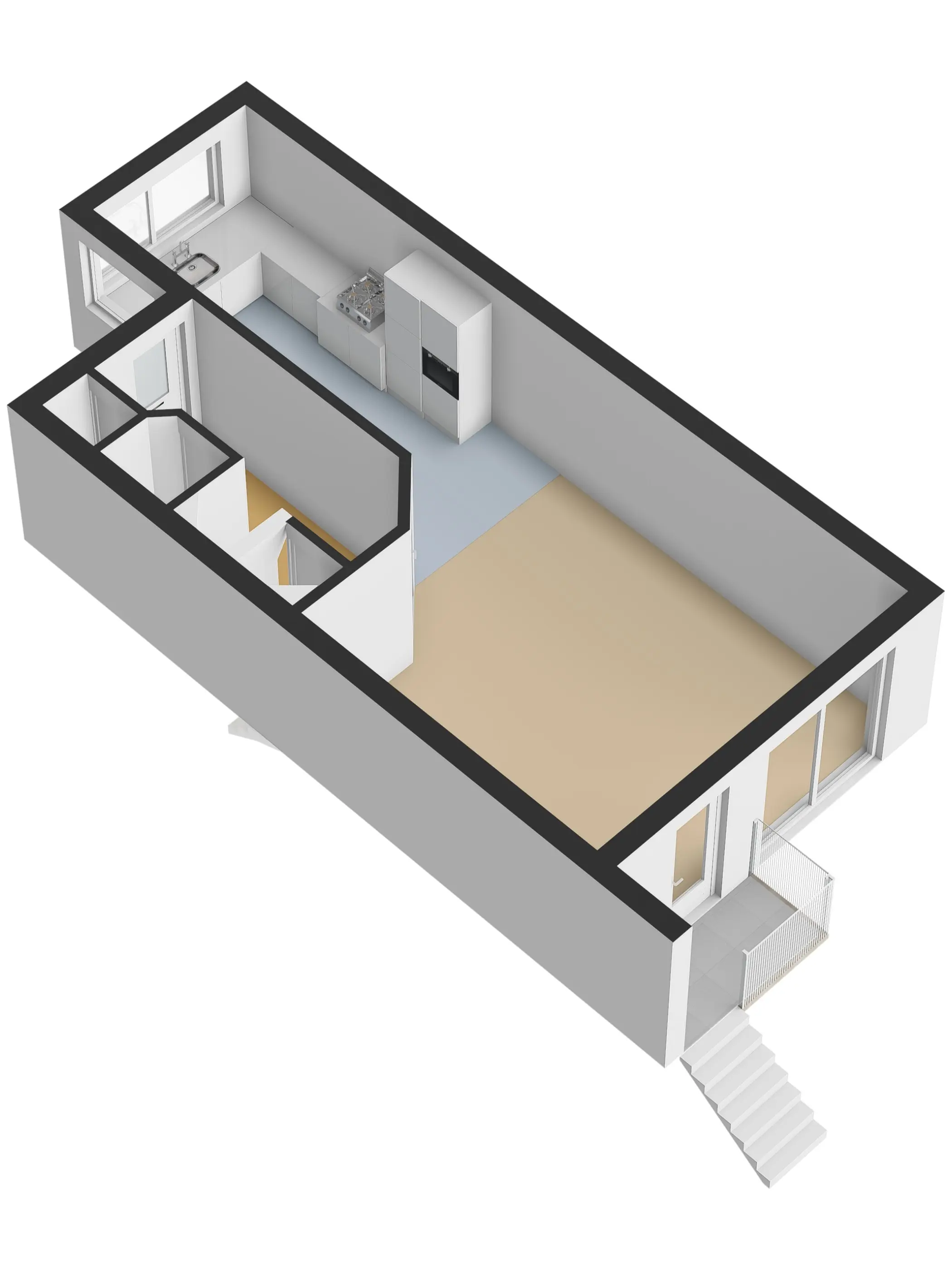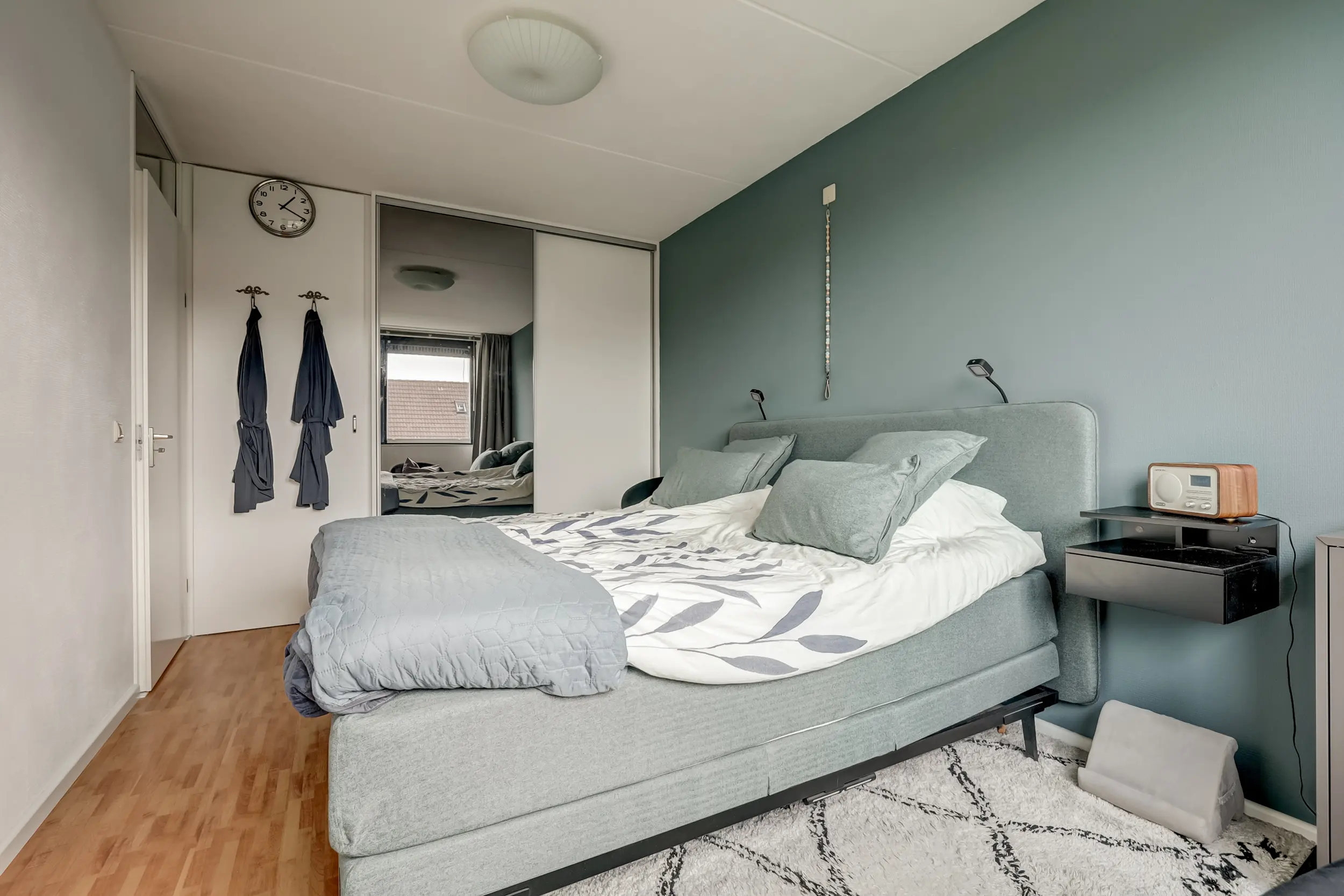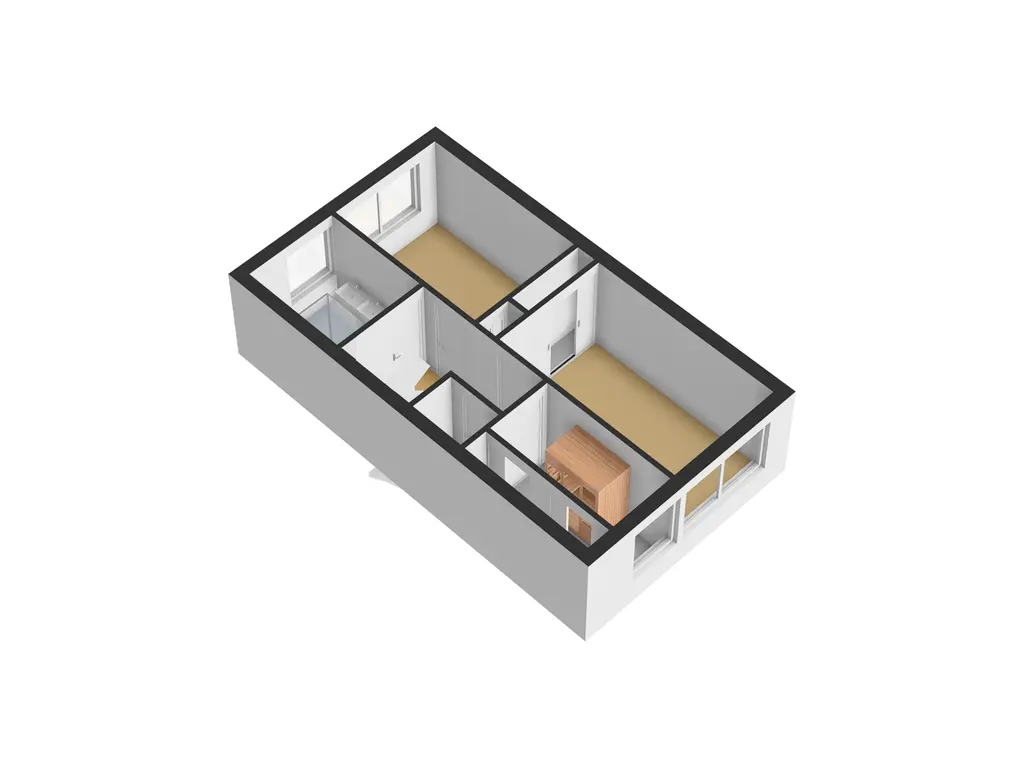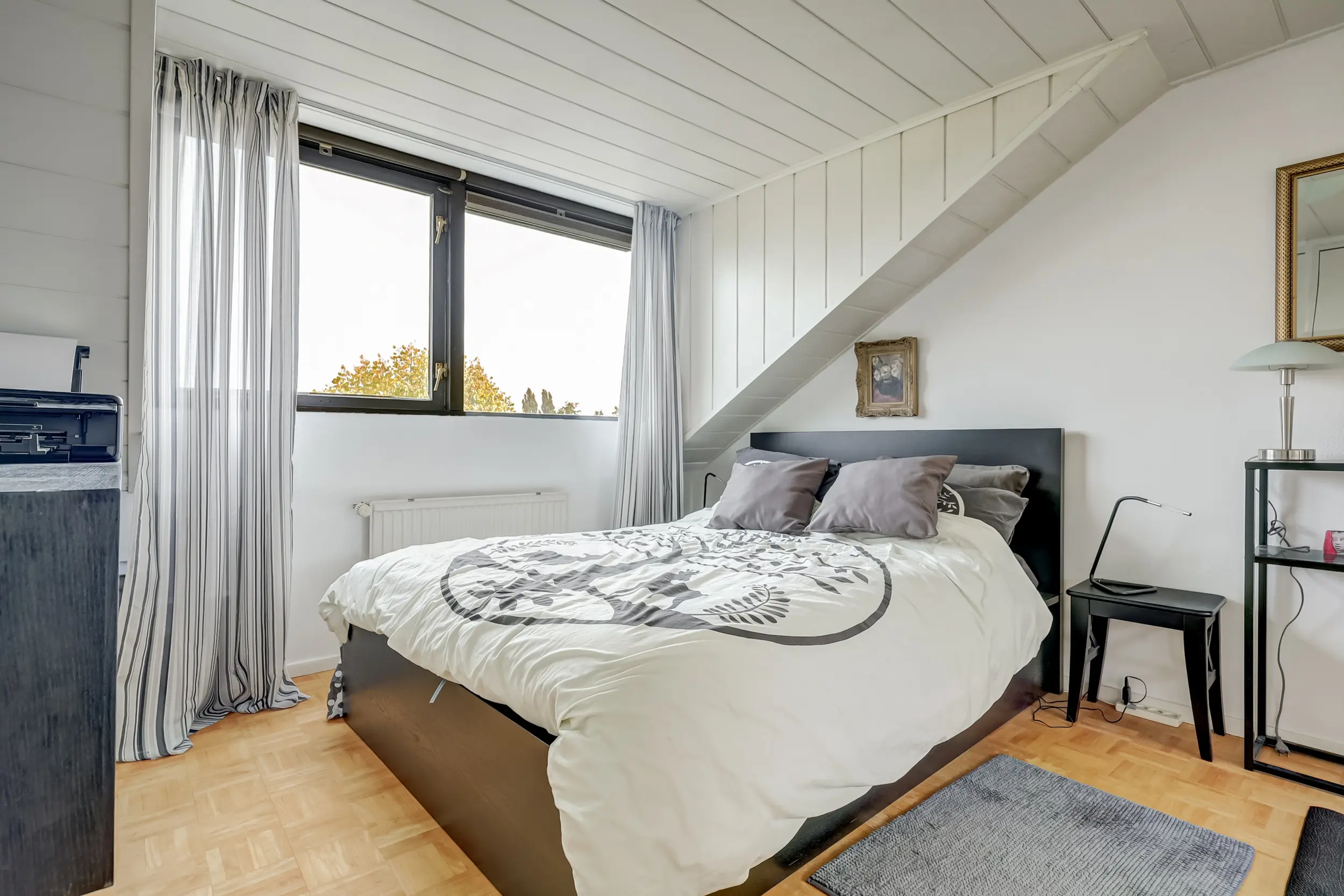 De tweede verdieping is bereikbaar via een vaste trap en biedt een ruime slaapkamer