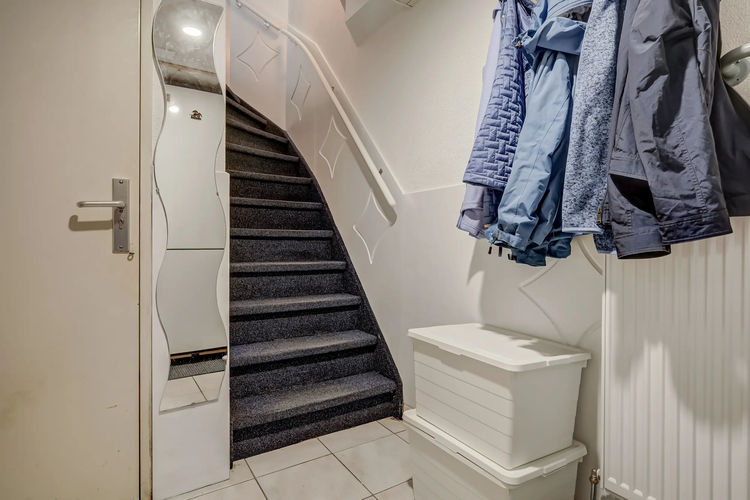 Een groot pluspunt van deze woning is het volwaardige en zeer ruime souterrain. Hier bevindt zich een garage met een garagedeur met extra loopdeur, voldoende ruimte voor twee auto's, een aparte berging voor de fietsen en meer dan voldoende opbergruimte. Daarnaast is er een hal met kastruimte aanwezig, en via de garagedeur is ook de voortuin bereikbaar. De kelder is keurig afgewerkt en praktisch ingedeeld. U heeft hier de mogelijkheid om de ruimte te splitsen en hier bijvoorbeeld een kantoor of salon aan huis te realiseren.