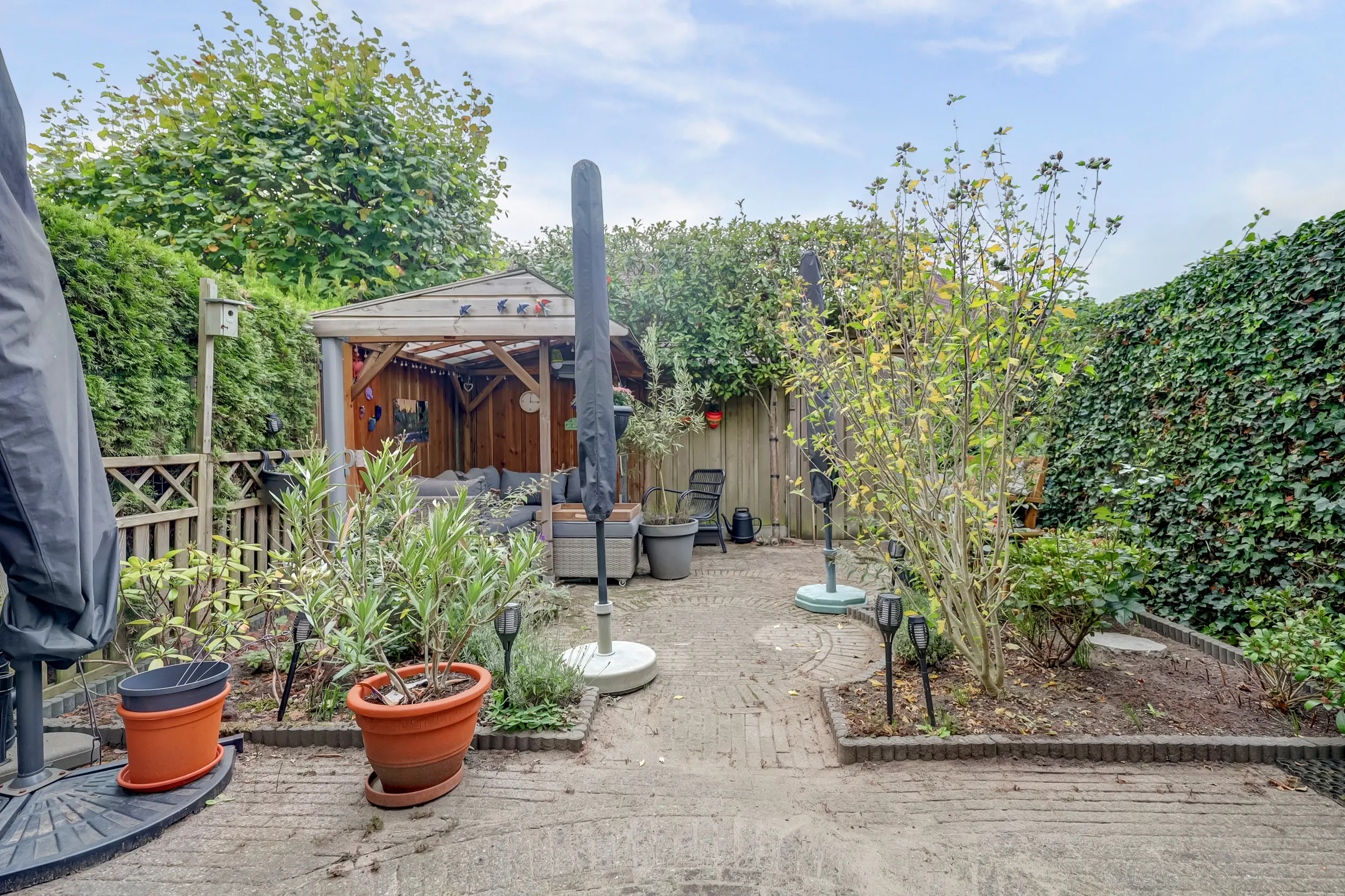 - Fraai aangelegde tuin met gezellige overkapping