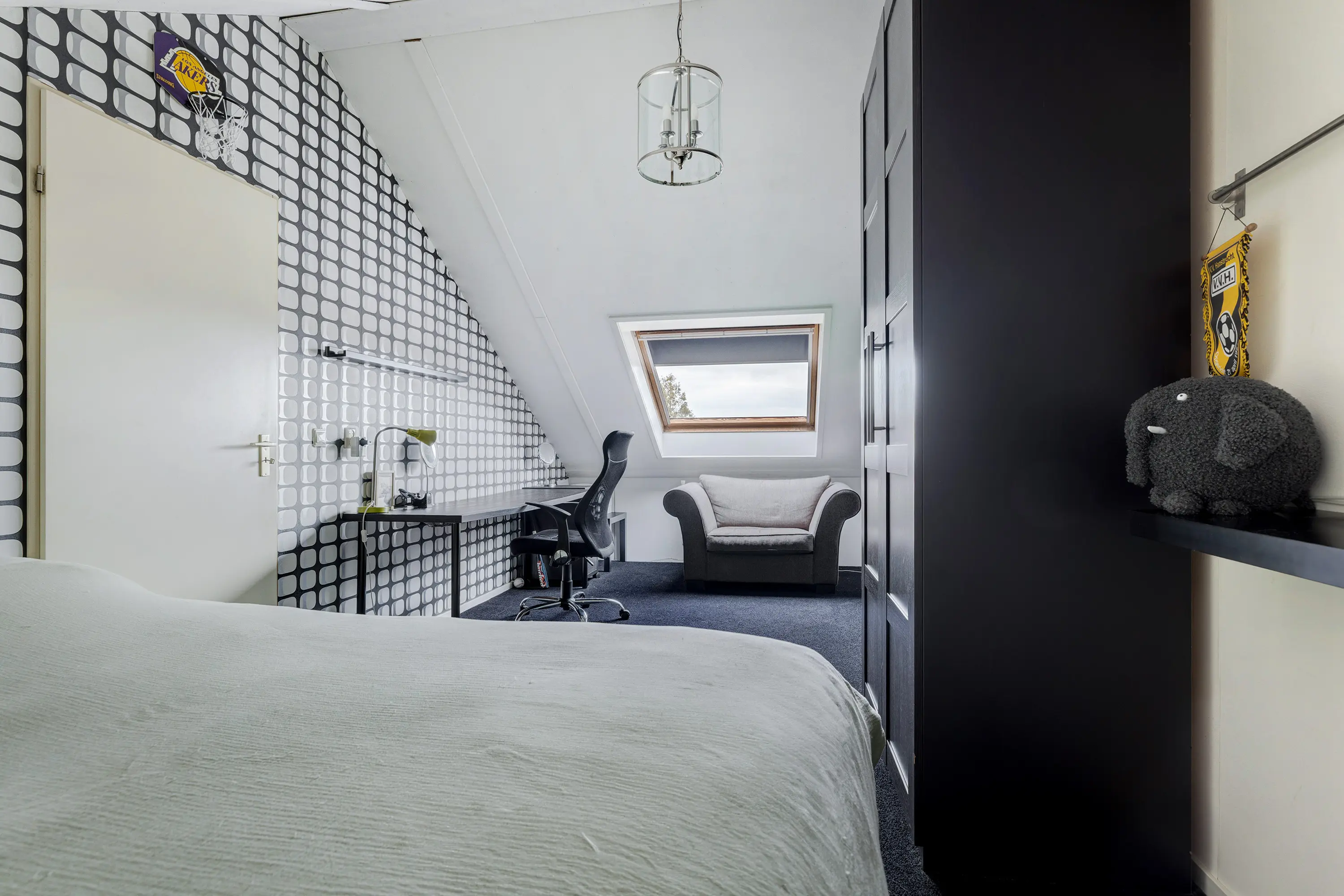 Daarnaast is hier een zolderkamer met dakraam en verwarming, ideaal als extra slaapkamer, hobbyruimte of logeerplek.