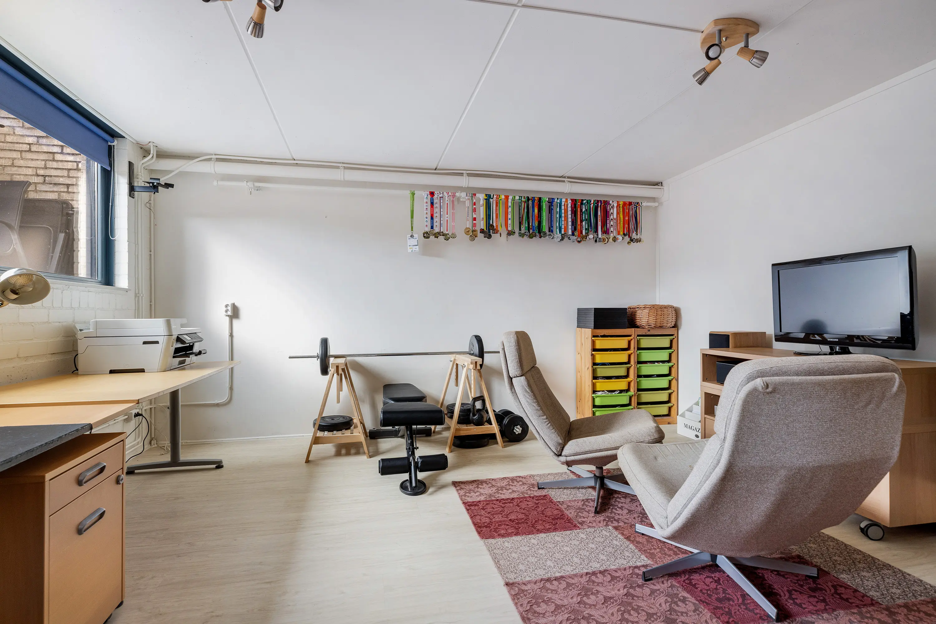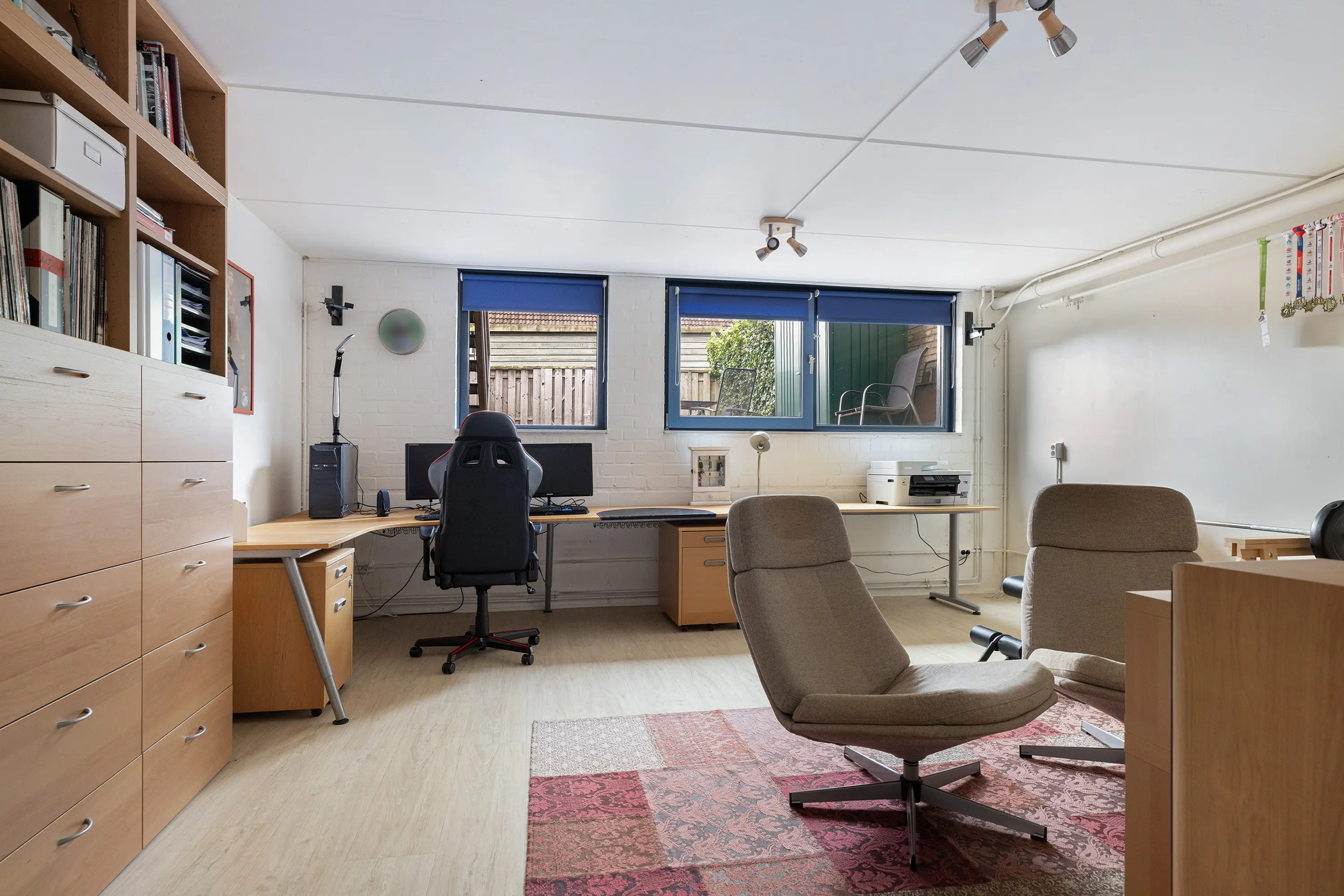 De werk-/hobbykamer (gerealiseerd in 2017) is netjes afgewerkt, voorzien van een PVC-vloer met vloerverwarming en biedt volop mogelijkheden als thuiswerkplek, hobbyruimte of extra slaapkamer.