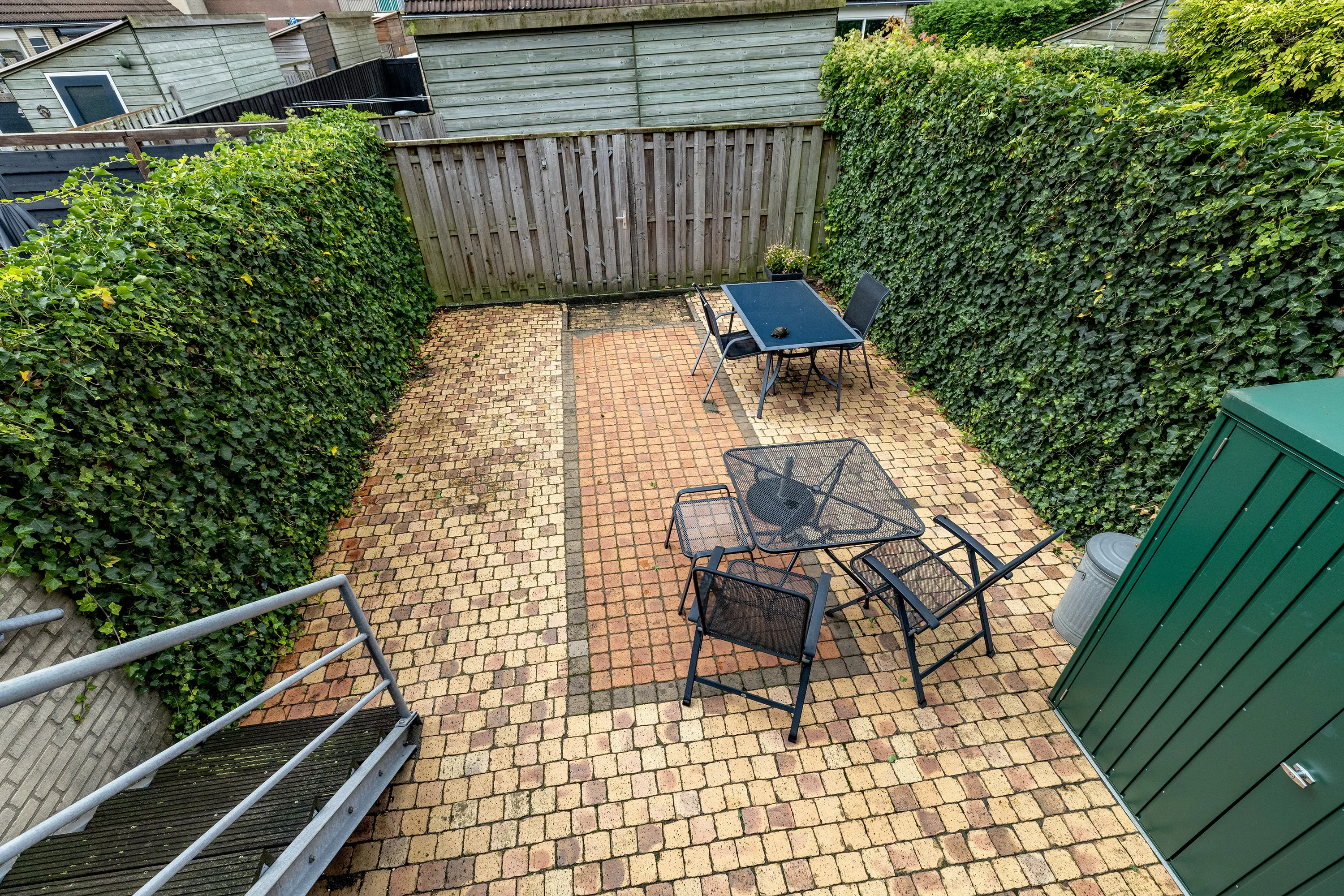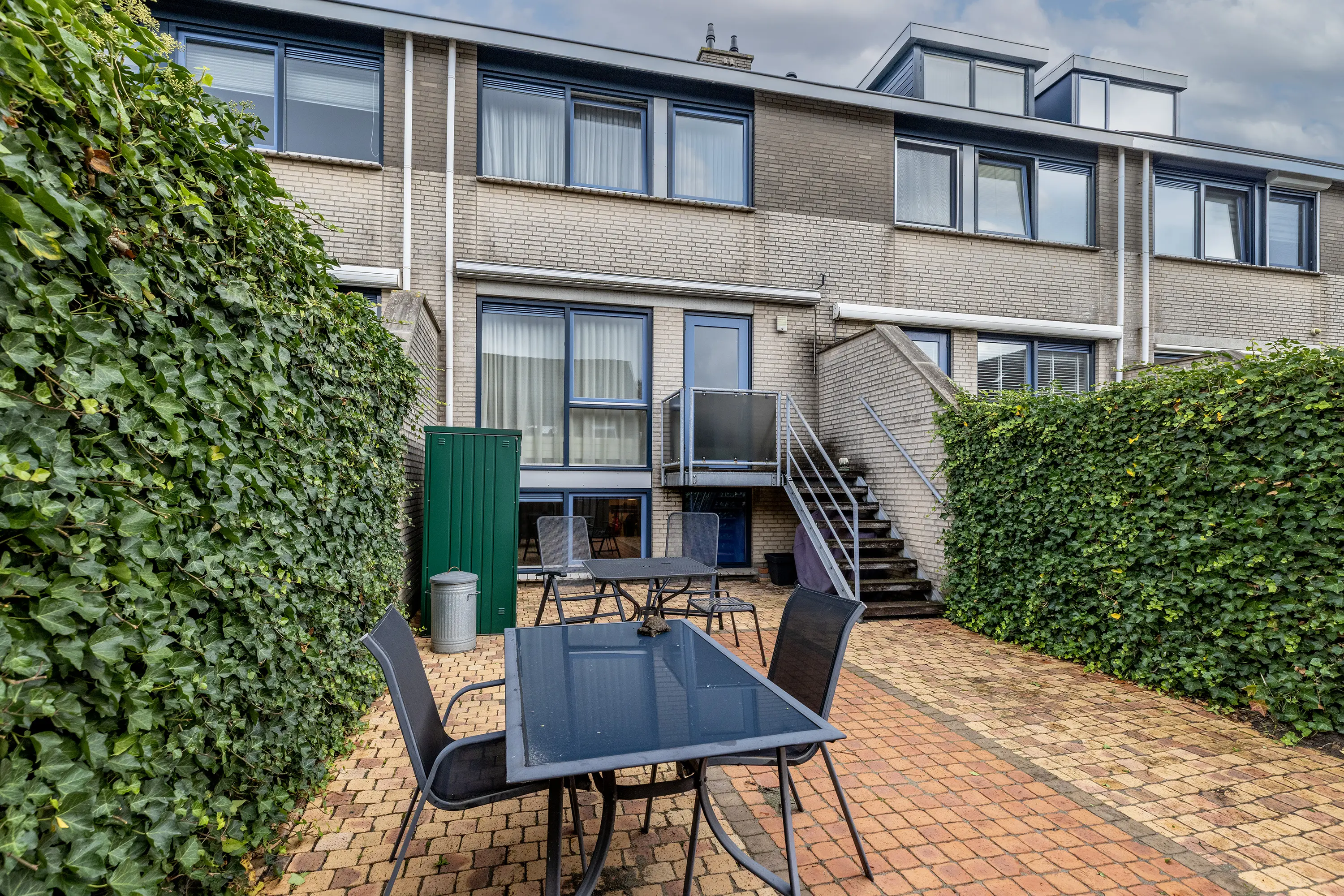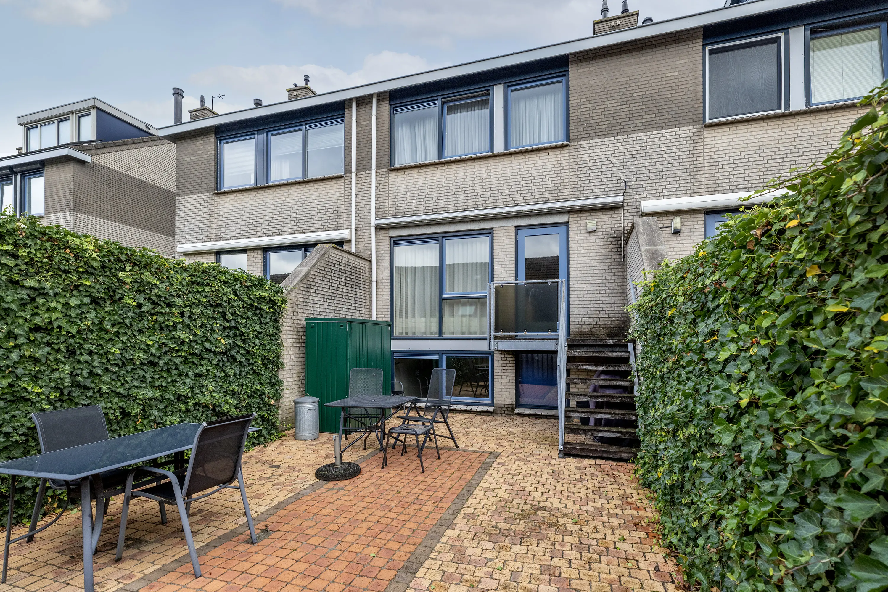 De achtertuin is verzorgd aangelegd en grotendeels bestraat. Dankzij het aanwezige zonnescherm en de gunstige ligging kun je hier op elk moment van de dag comfortabel buiten zitten. De tuin is via de woonkamer bereikbaar en biedt veel privacy.