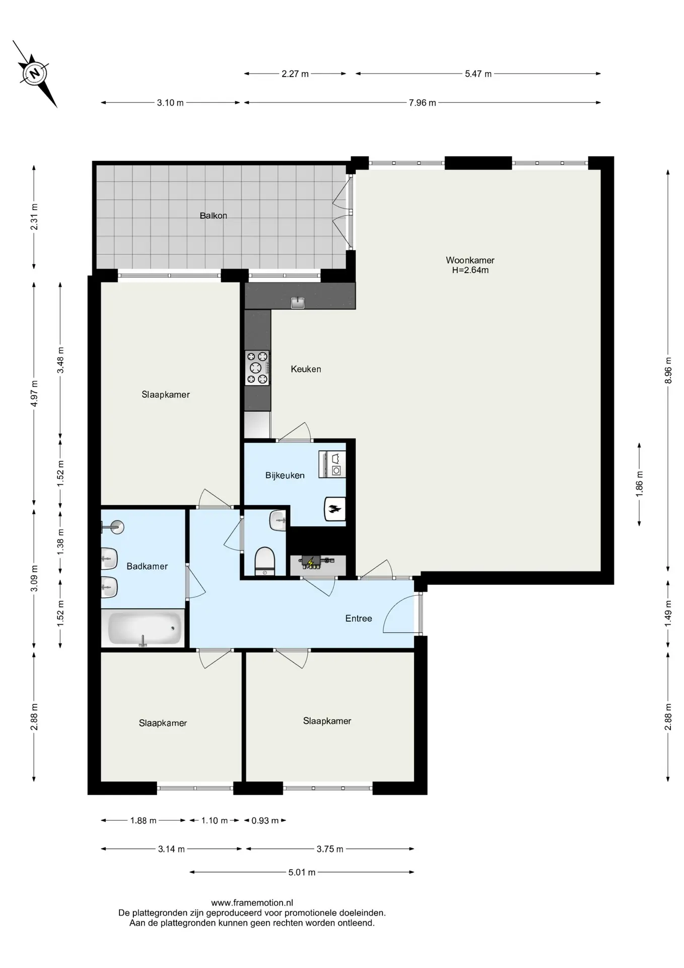 Het appartement beschikt over drie slaapkamers van verschillende formaten. De hoofdslaapkamer van circa zestien vierkante meter biedt meer dan voldoende ruimte voor een groot bed en een ruime garderobekast. De tweede slaapkamer van circa elf vierkante meter is perfect in te richten als kinderkamer of studeerkamer, terwijl de derde kamer van circa negen vierkante meter zich uitstekend leent als logeerkamer of thuiswerkplek. Zo biedt dit appartement voor ieder gezinslid of iedere woonwens een passende ruimte. Nagenoeg de gehele woning is voorzien van een duurzame laminaatvloer.