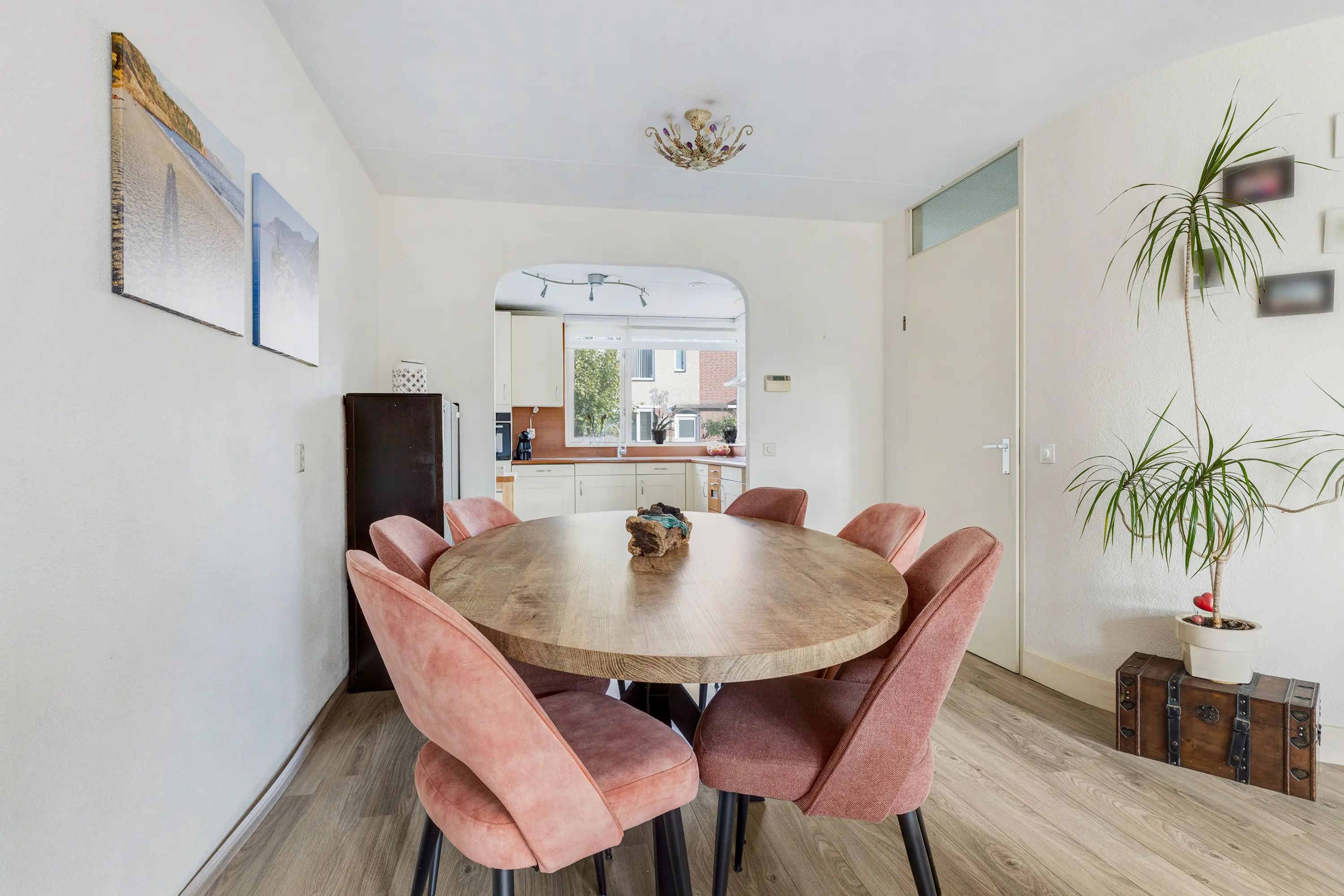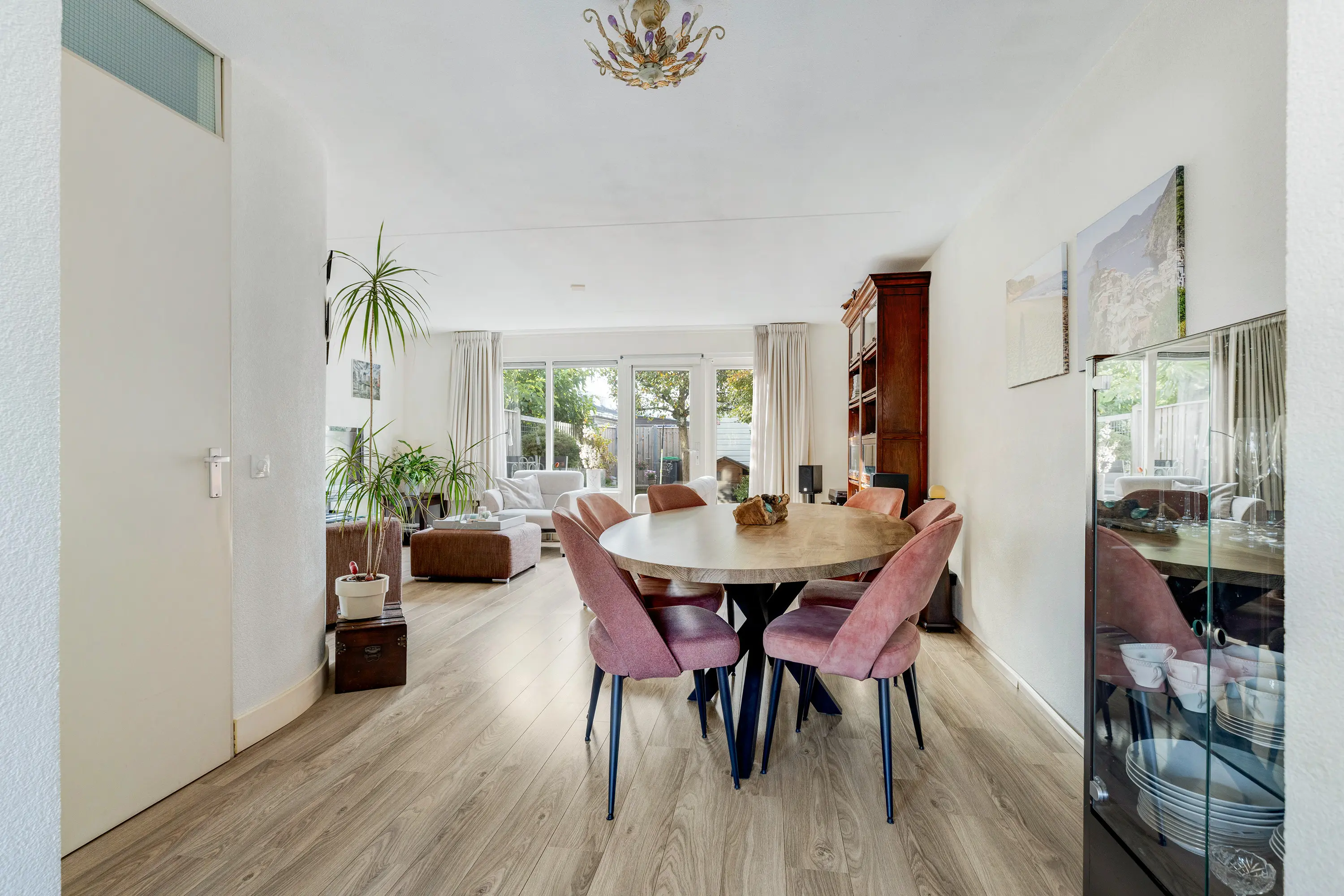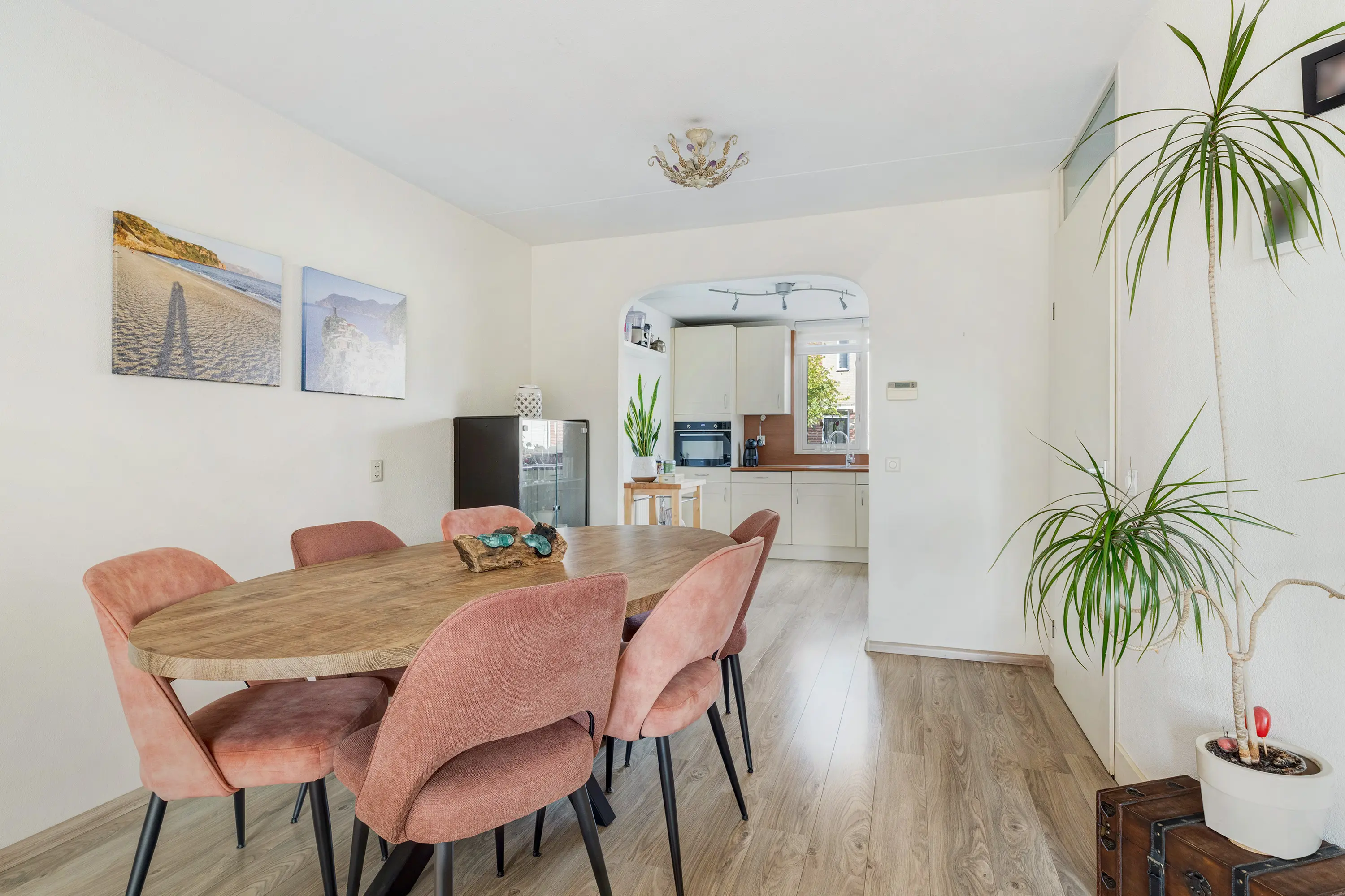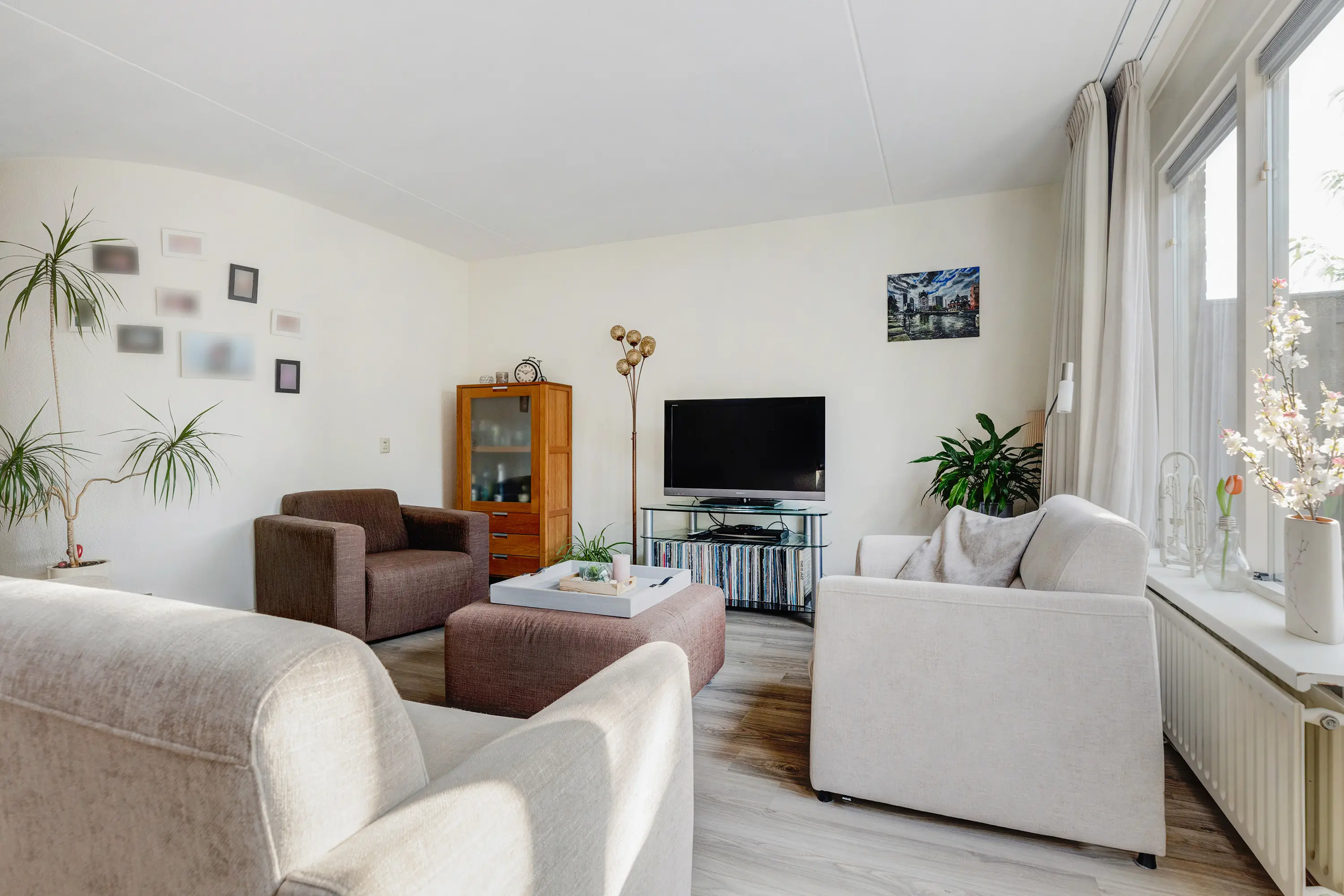 Bij binnenkomst valt direct de ruime hal op met garderobe, meterkast en een net afgewerkte toiletruimte met fonteintje. Vanuit de hal stap je de lichte woonkamer in, een gezellige leefruimte met openslaande deuren naar de zonnige achtertuin. Dankzij de grote raampartijen geniet je hier van volop daglicht en een prettig uitzicht op het groen.