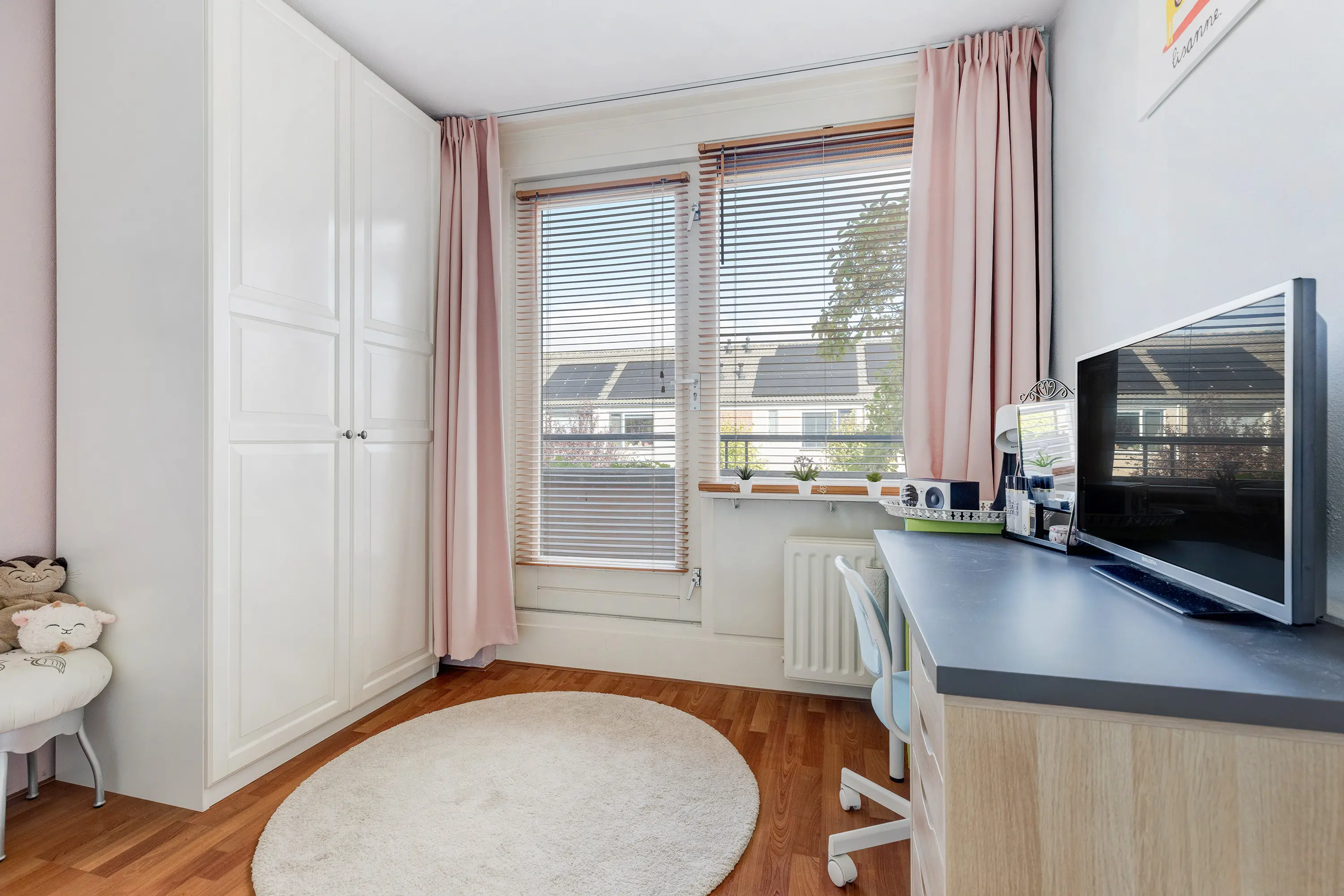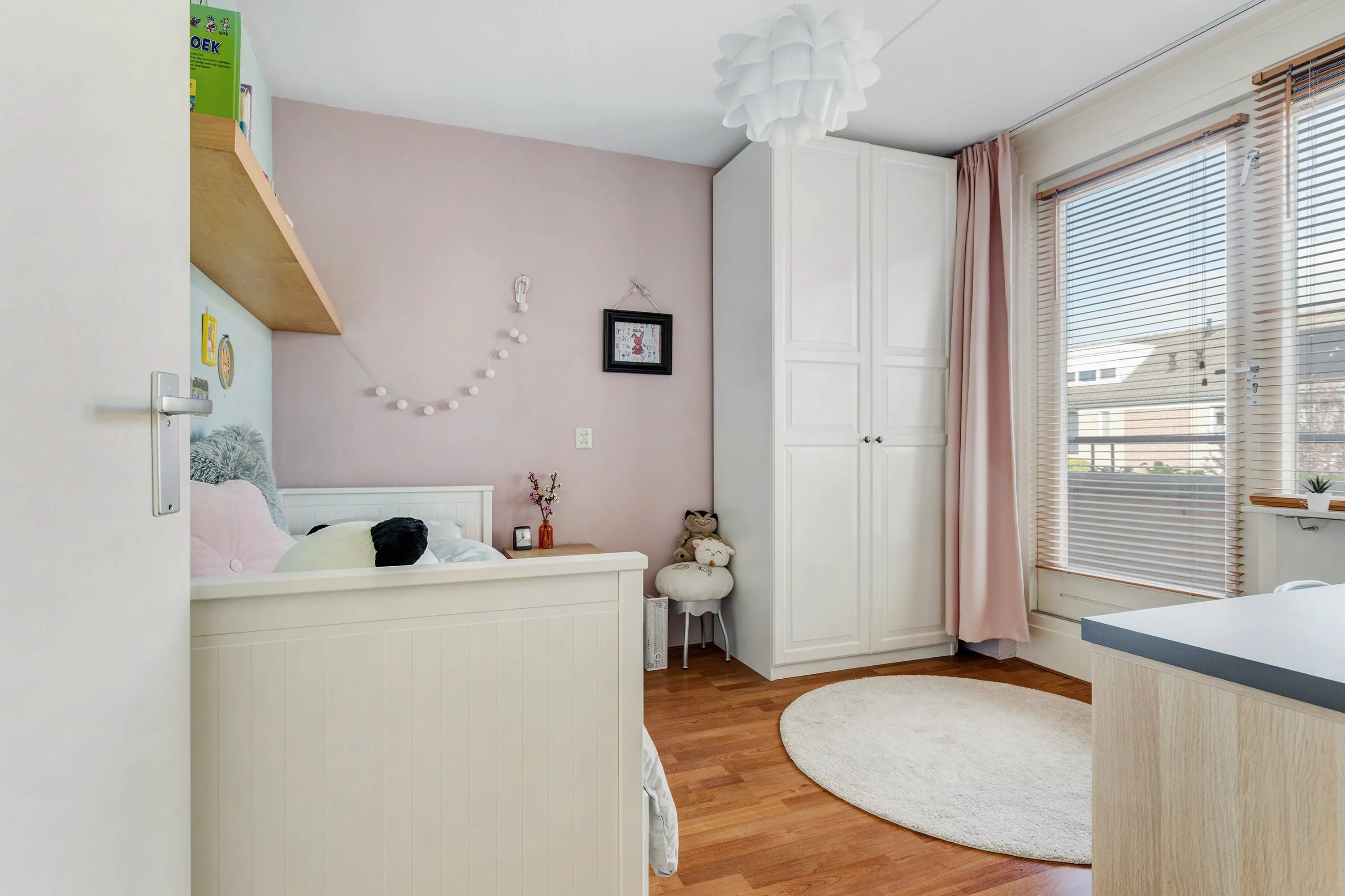De eerste verdieping telt drie slaapkamers. De slaapkamer aan de voorzijde heeft toegang tot een balkon, ideaal voor een momentje in de ochtendzon. De twee slaapkamers aan de achterzijde zijn voorzien van handmatige screens, wat zorgt voor extra comfort in de zomer.