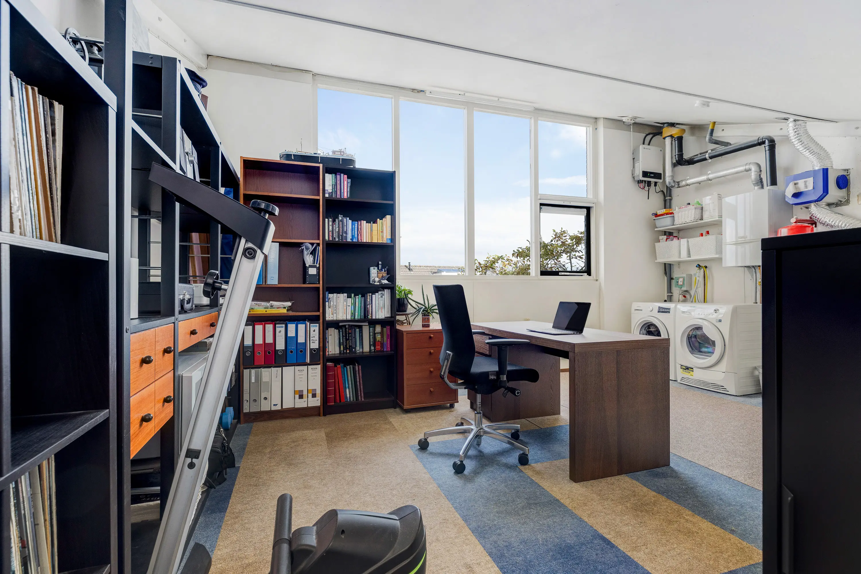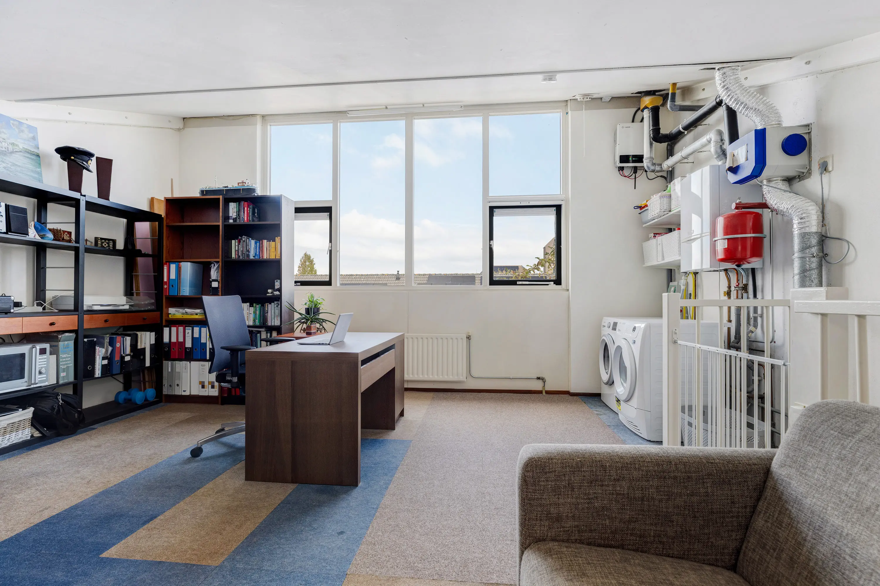 De open zolderverdieping is verrassend ruim en biedt volop mogelijkheden! Dankzij het hoge plafond en de grote ramen is dit een lichte en inspirerende ruimte. Hier vind je tevens de cv-installatie, mechanische ventilatie, de omvormer voor de zonnepanelen en de aansluitingen voor wasmachine en droger.