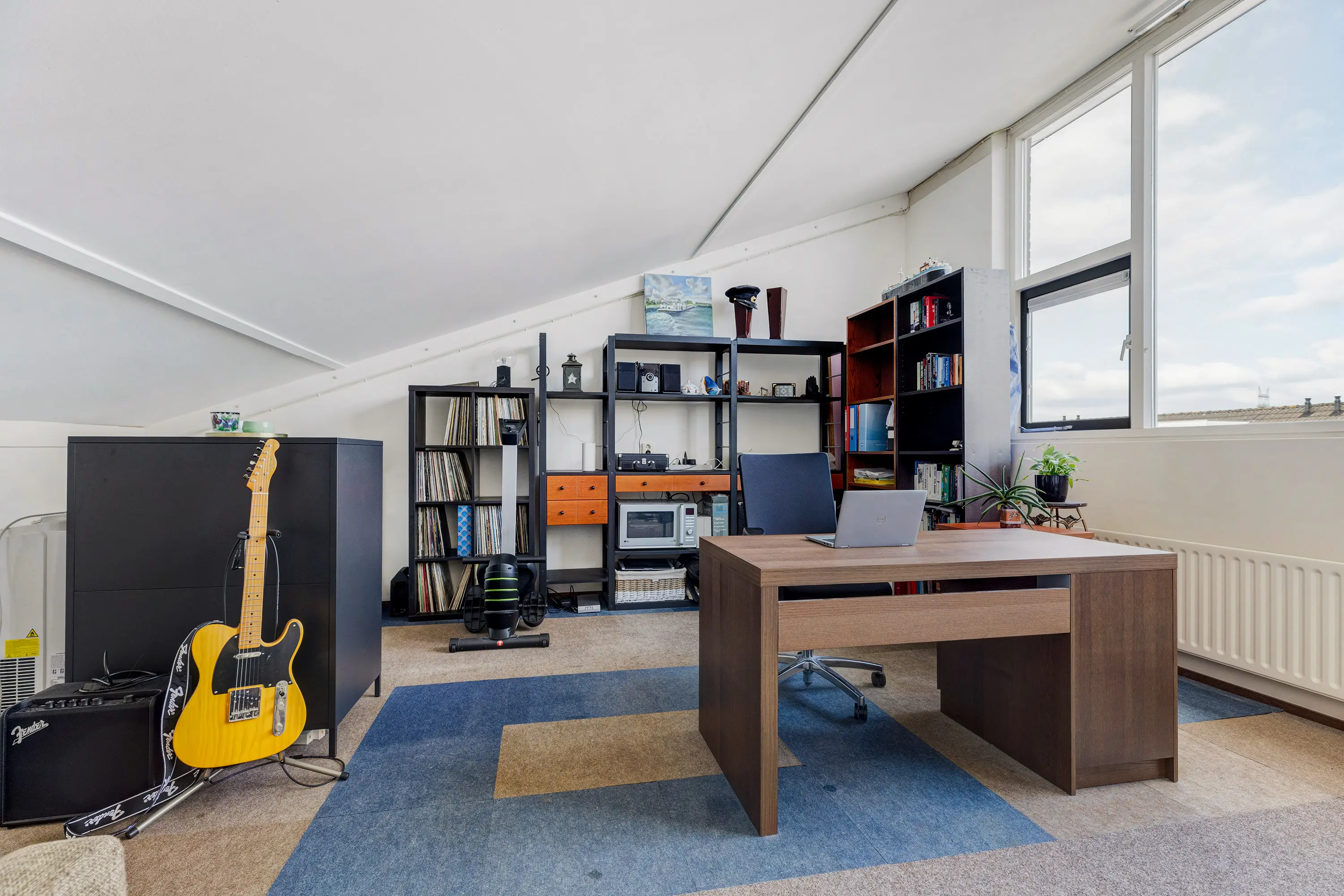 Of je nu droomt van een vierde slaapkamer, hobbyruimte, of een kantoor aan huis, deze verdieping kan volledig naar wens worden ingedeeld. Achter de knieschotten is bovendien handige bergruimte aanwezig.