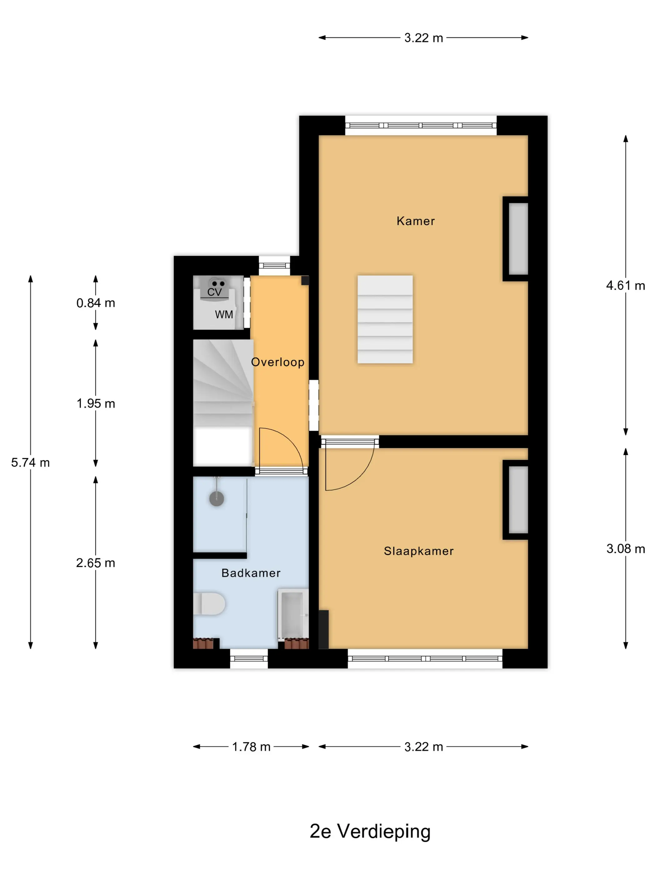 De overloop biedt toegang tot twee slaapkamers en de badkamer. Ook vindt u hier de kast met CV-opstelling en wasmachineaansluiting.