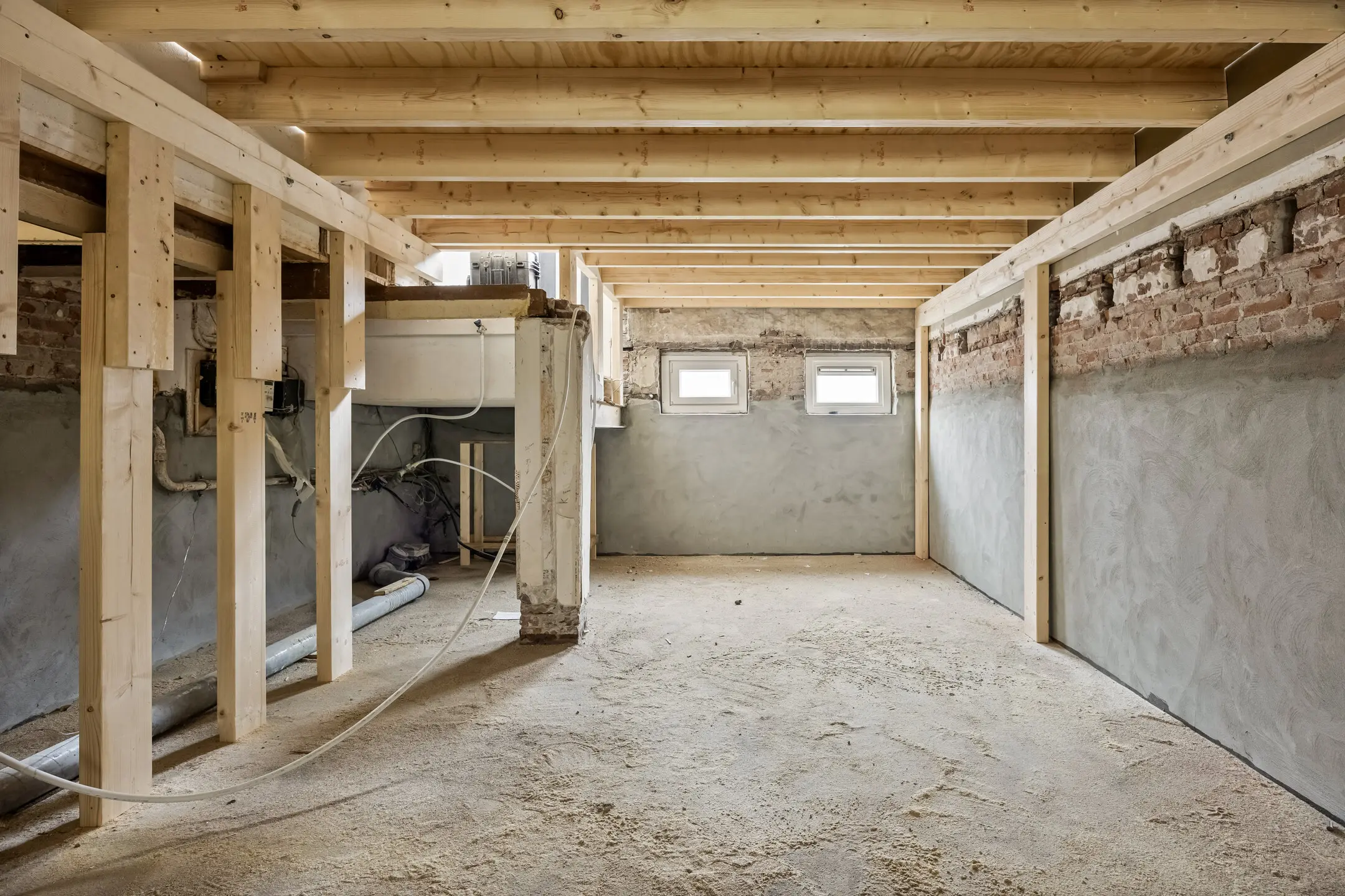 Maar je kunt je er vast al iets bij voorstellen. De basis is gelegd: de benedenverdieping is voorzien van een splinternieuwe vloerbak die waterdicht is afgewerkt. Daarnaast is er een volledig nieuwe verdiepingsvloer gelegd, zodat jij de ultieme basis hebt om dit geheel naar eigen wens in te delen en af te bouwen.