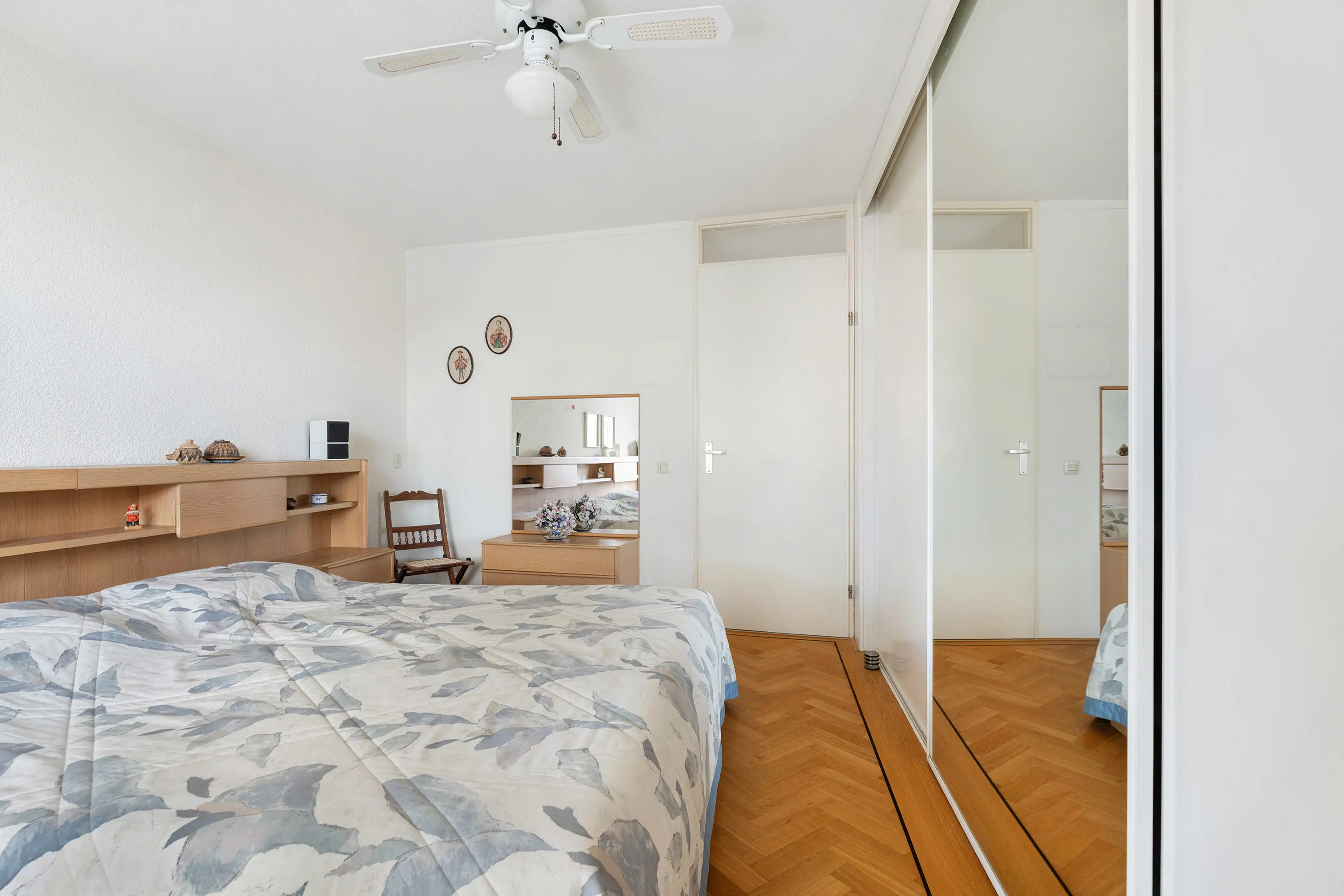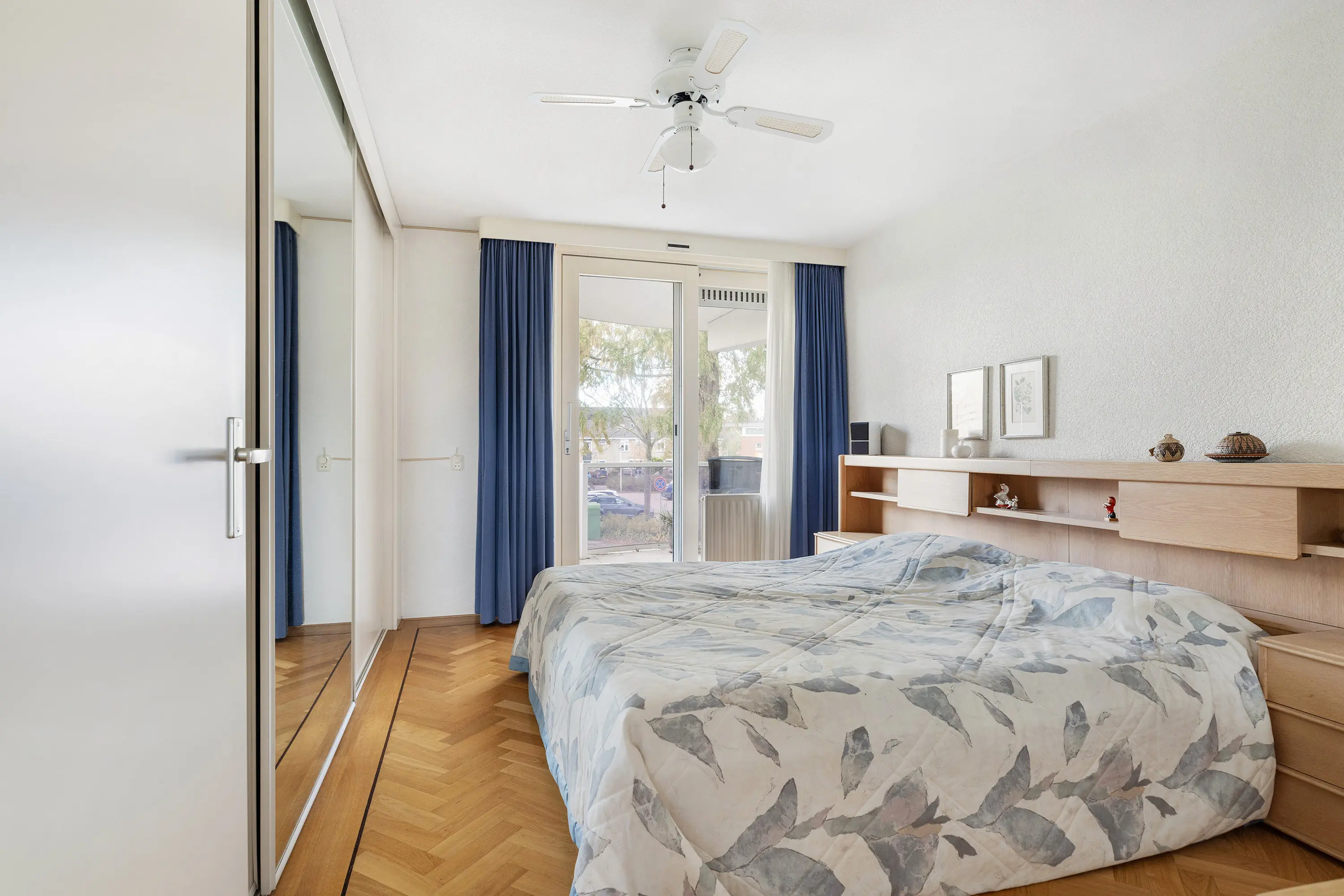 De hoofdslaapkamer grenst direct aan het terras en beschikt over een grote schuifkastenwand. De tweede slaapkamer ligt hiernaast en is eveneens ruim en licht.