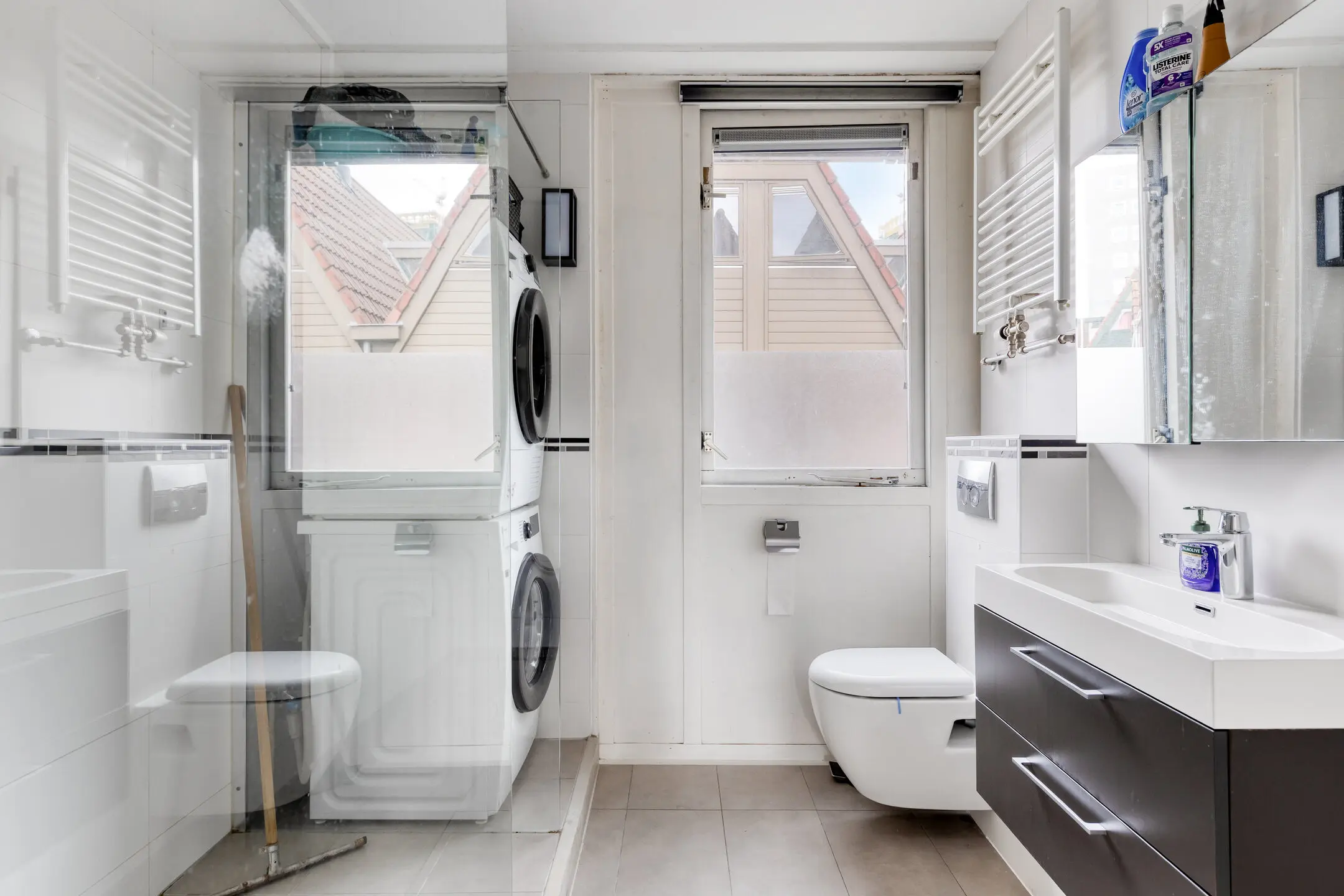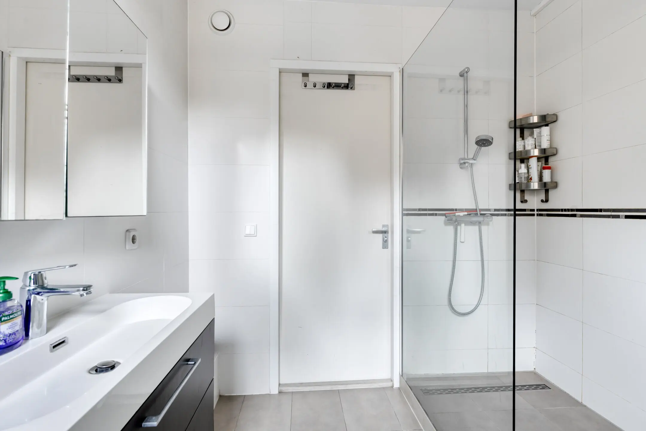 Hier vind je twee ruime slaapkamers van ca. 12 en 16 m². De grootste strekt zich uit over de volle breedte van de woning en heeft zelfs een Frans balkon. De moderne badkamer is voorzien van een grote inloopdouche, een brede wastafel met meubel en spiegelkast, een tweede toilet, radiator én de aansluitingen voor wasmachine en droger. Een fijne, lichte ruimte!
