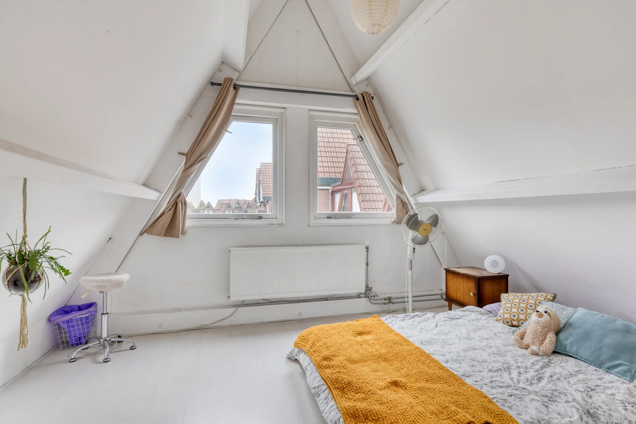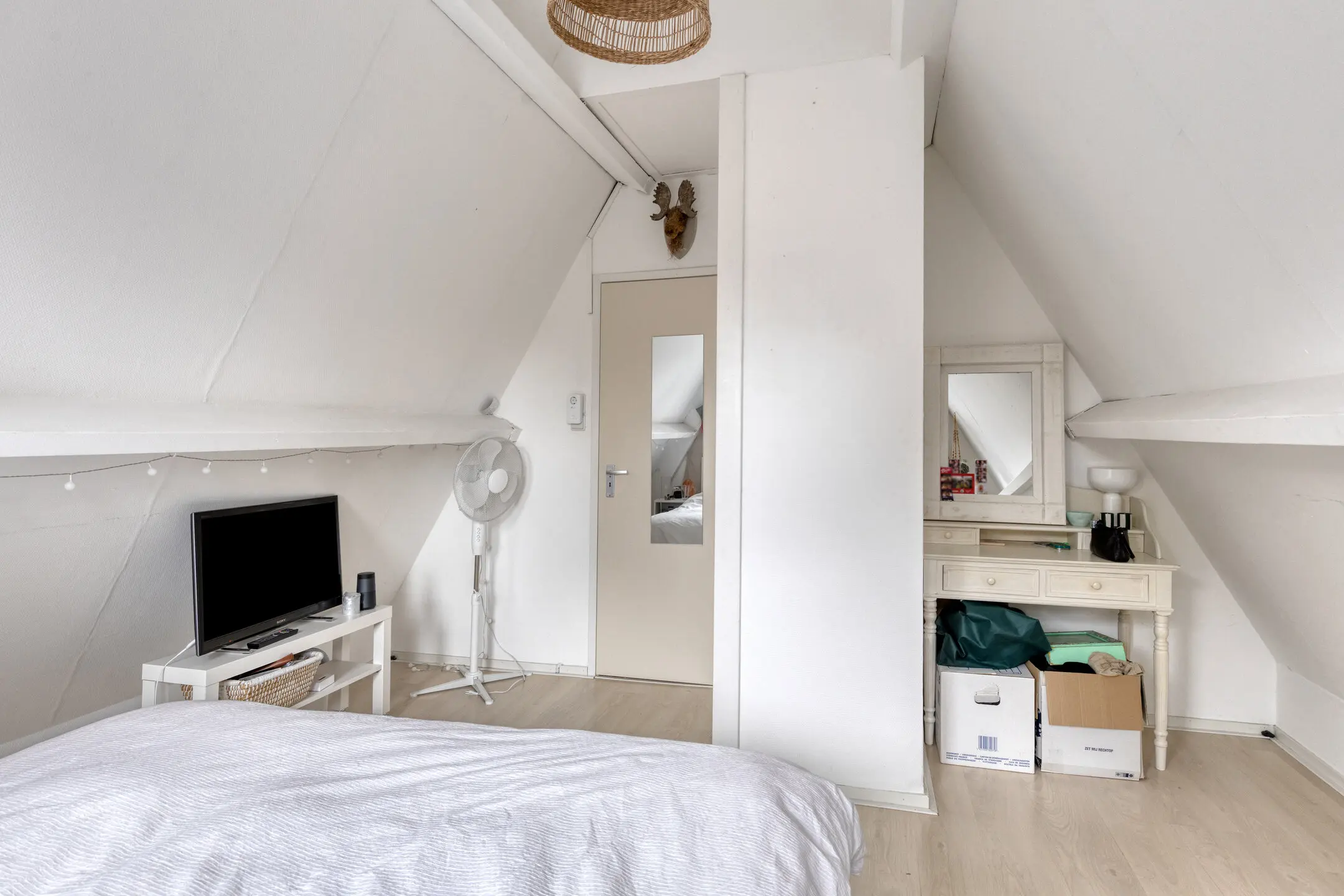 De bovenste etage verrast met nóg twee ruime slaapkamers. De schuine wanden geven de kamers een speels karakter en dankzij de grote ramen is er veel lichtinval. Perfect als extra slaapkamers, werkkamers of hobbyruimte. De overloop is ruim genoeg om extra kasten te plaatsen en ook onder de schuine kap kun je eenvoudig slimme bergruimtes creëren.