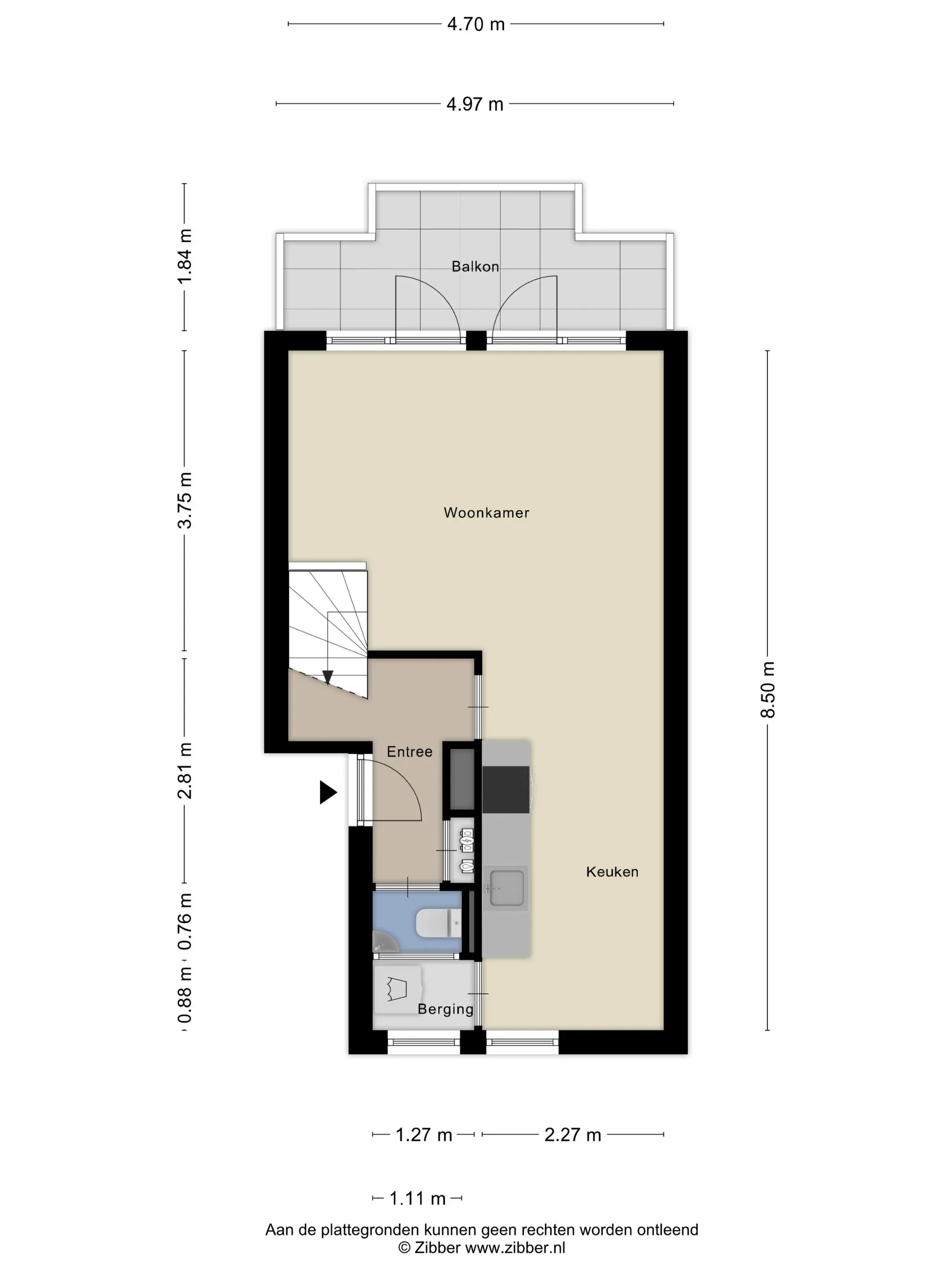 - Erfpachtgrond tot 31-03-2054 met een jaarlijkse canon van ca. € 1.299,04