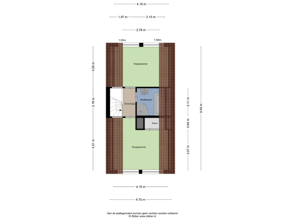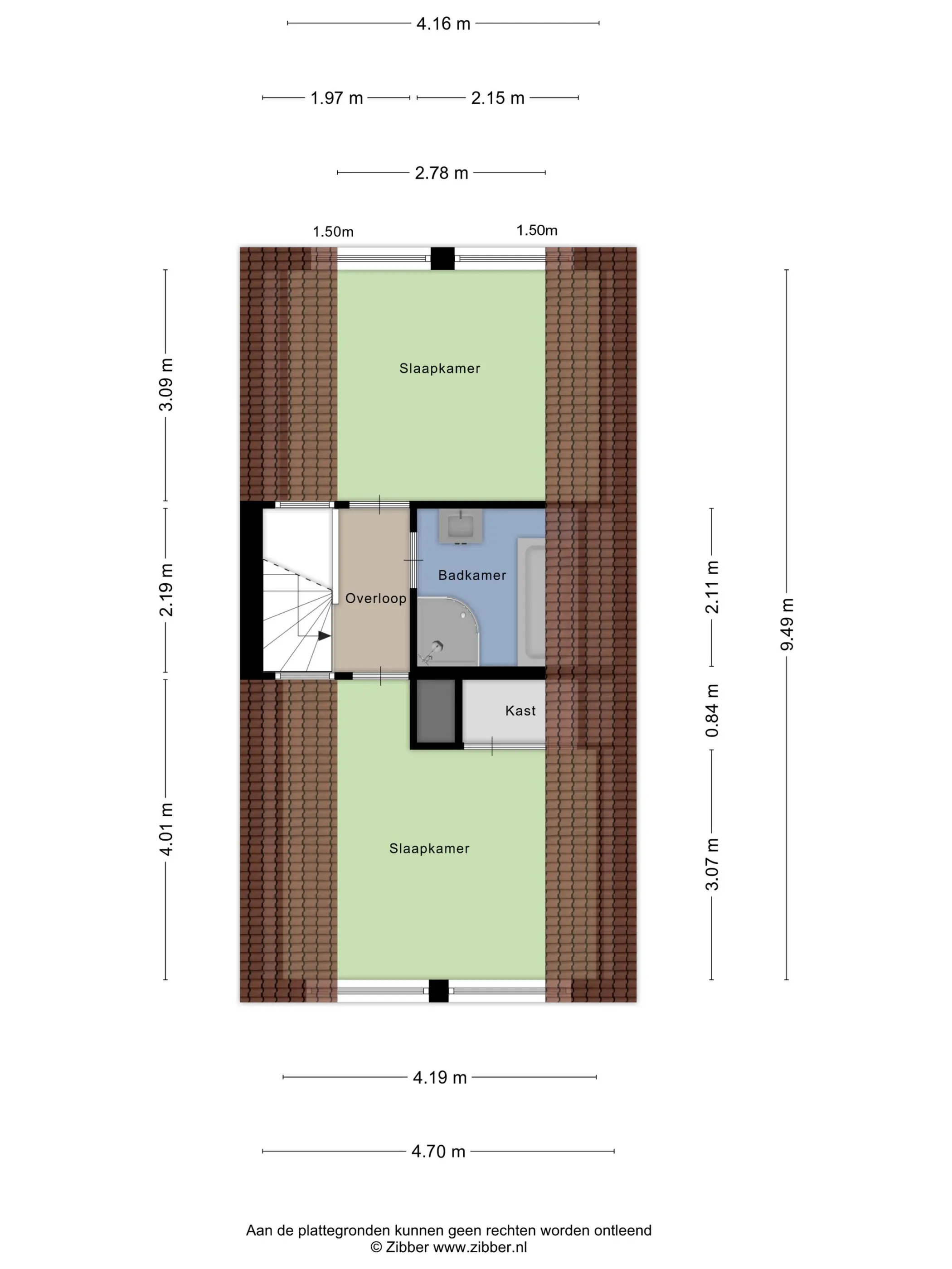 Via de trap kom je op de vierde verdieping. Ook hier veel licht dankzij grote ramen aan weerszijden. Vanaf de overloop heb je toegang tot twee ruime slaapkamers onder het puntdak. Je slaapt hier heerlijk rustig! In de voorste slaapkamer is een grote inbouwkast gerealiseerd. Vanuit beide kamers heb je fijn uitzicht.