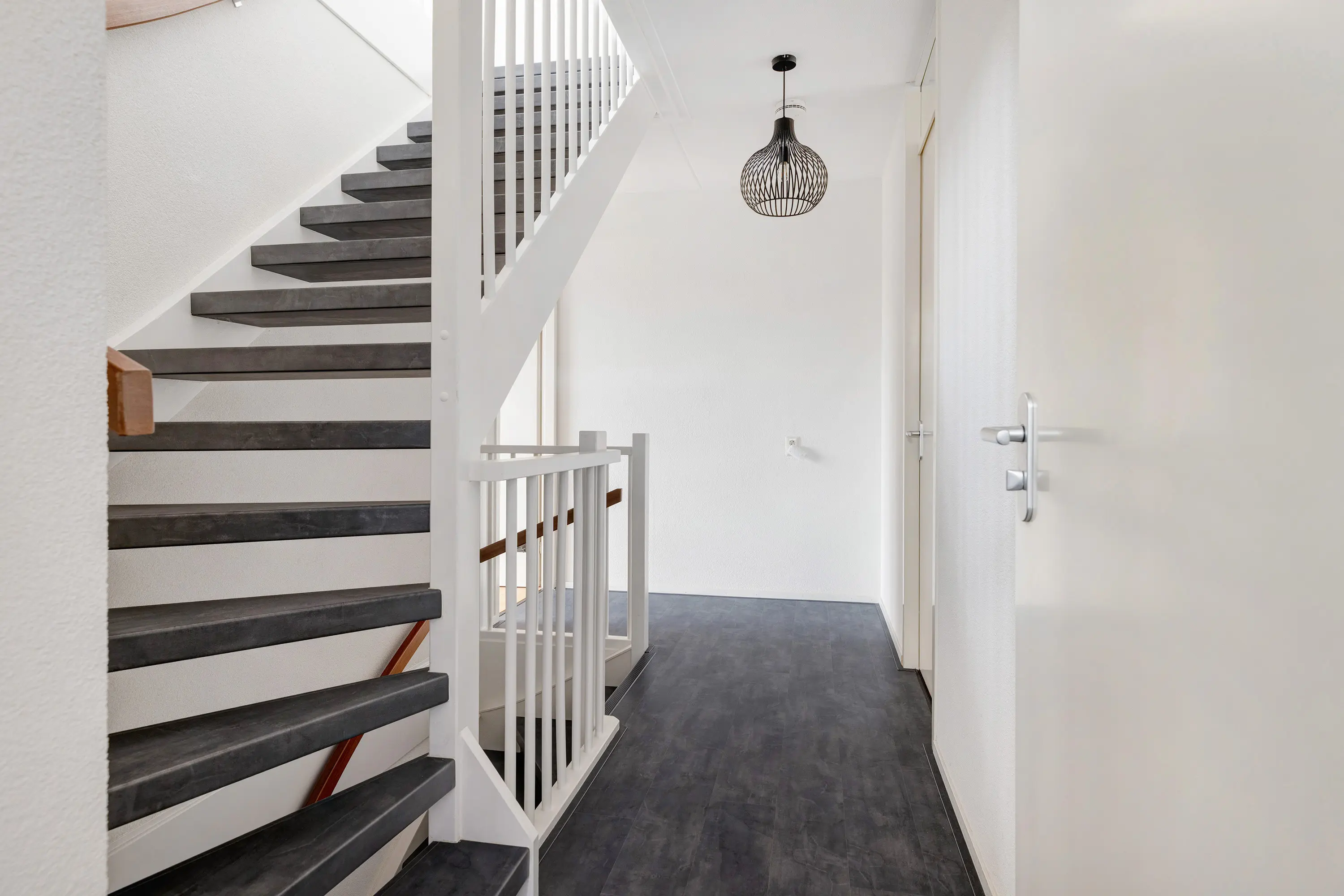 - Beide trappen zijn in 2023 afgewerkt met duurzame laminaat trapbekleding