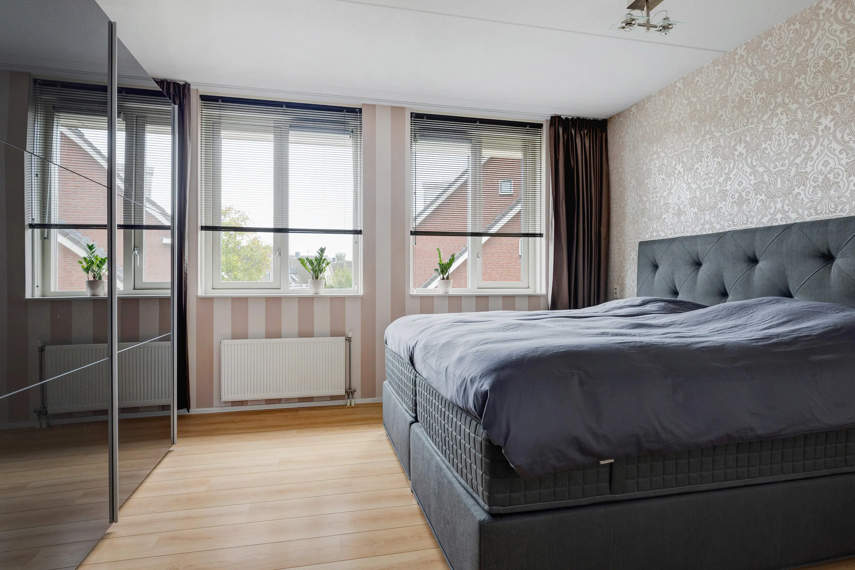 Slaapkamer 1 bevindt zich aan de achterzijde en is royaal van formaat, met de mogelijkheid om deze kamer eenvoudig te splitsen in twee aparte slaapkamers.