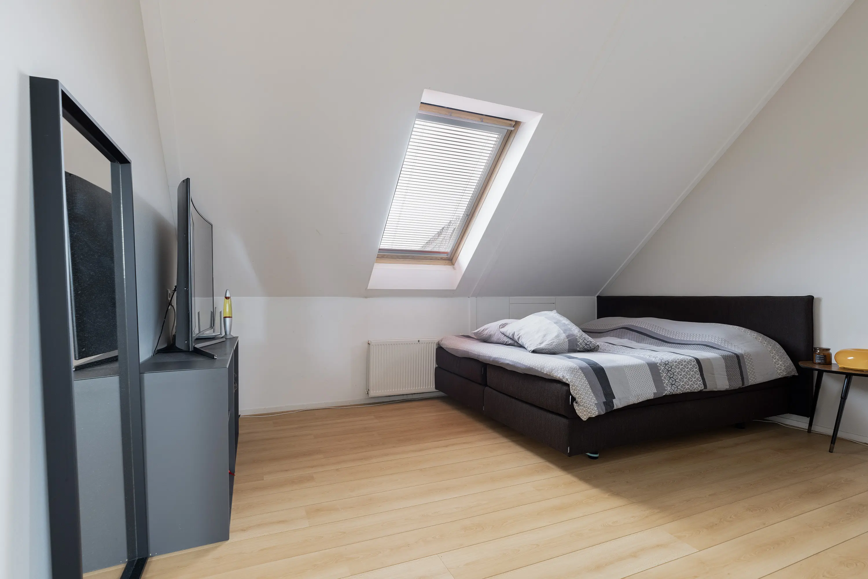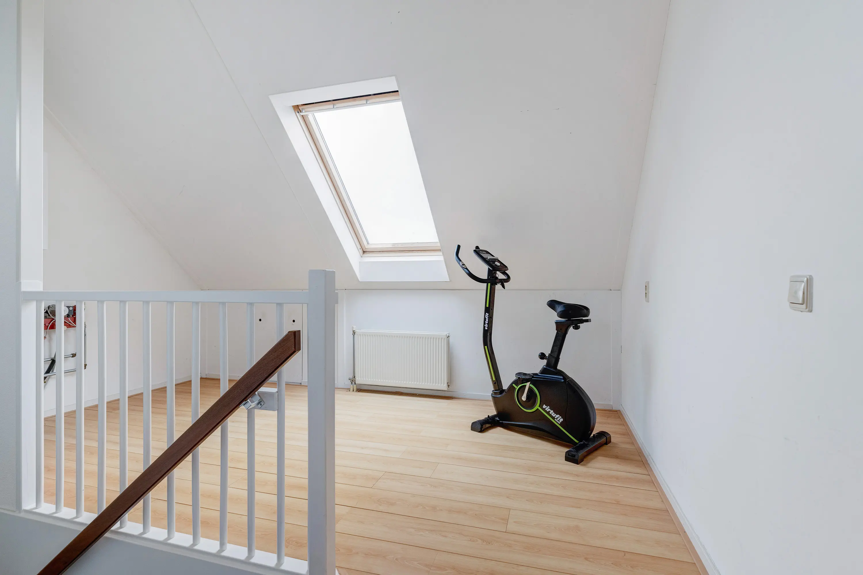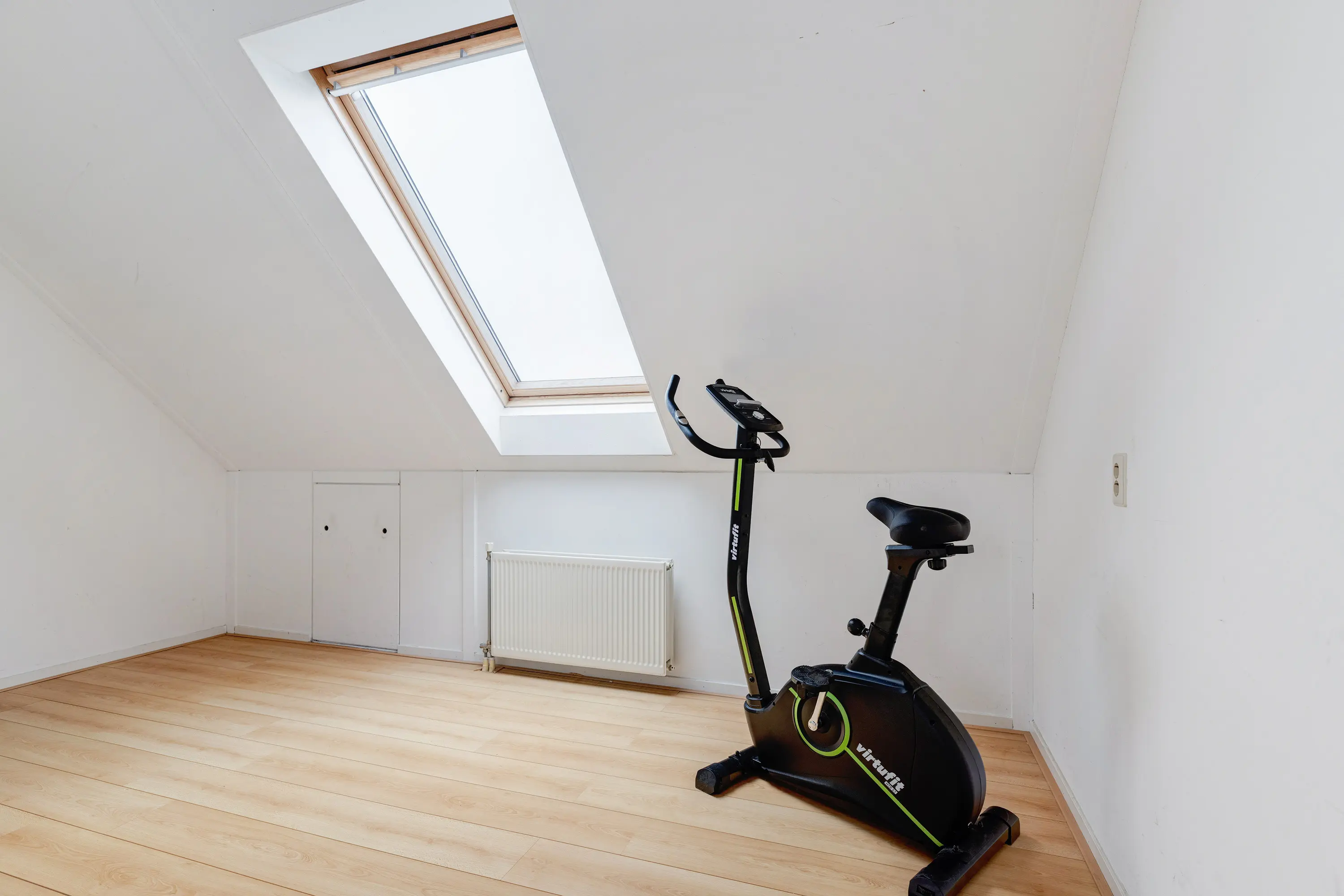 Via een vaste trap bereikt u de tweede verdieping. Hier bevindt zich een grote voorzolder met Velux-dakraam, CV-installatie (vernieuwd in 2023) en mechanische ventilatie (vernieuwd in 2025). Achter de knieschotten is volop bergruimte.