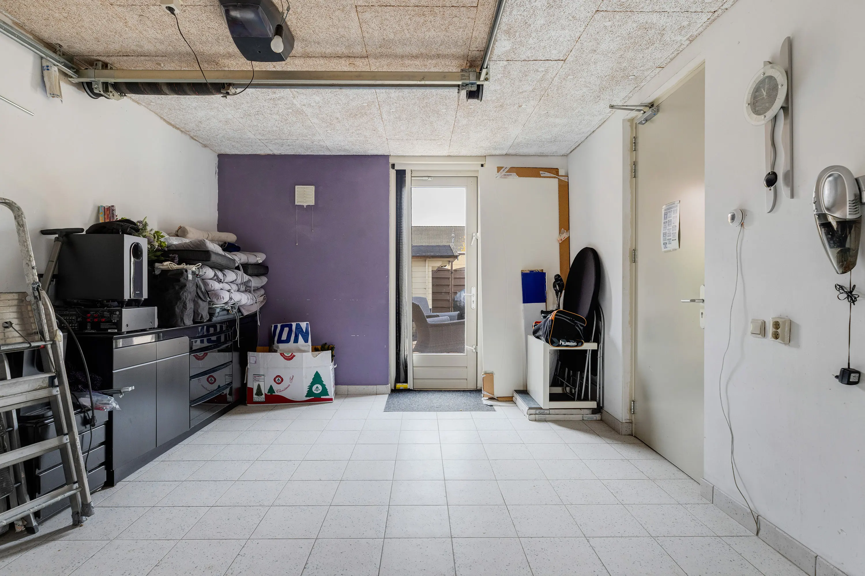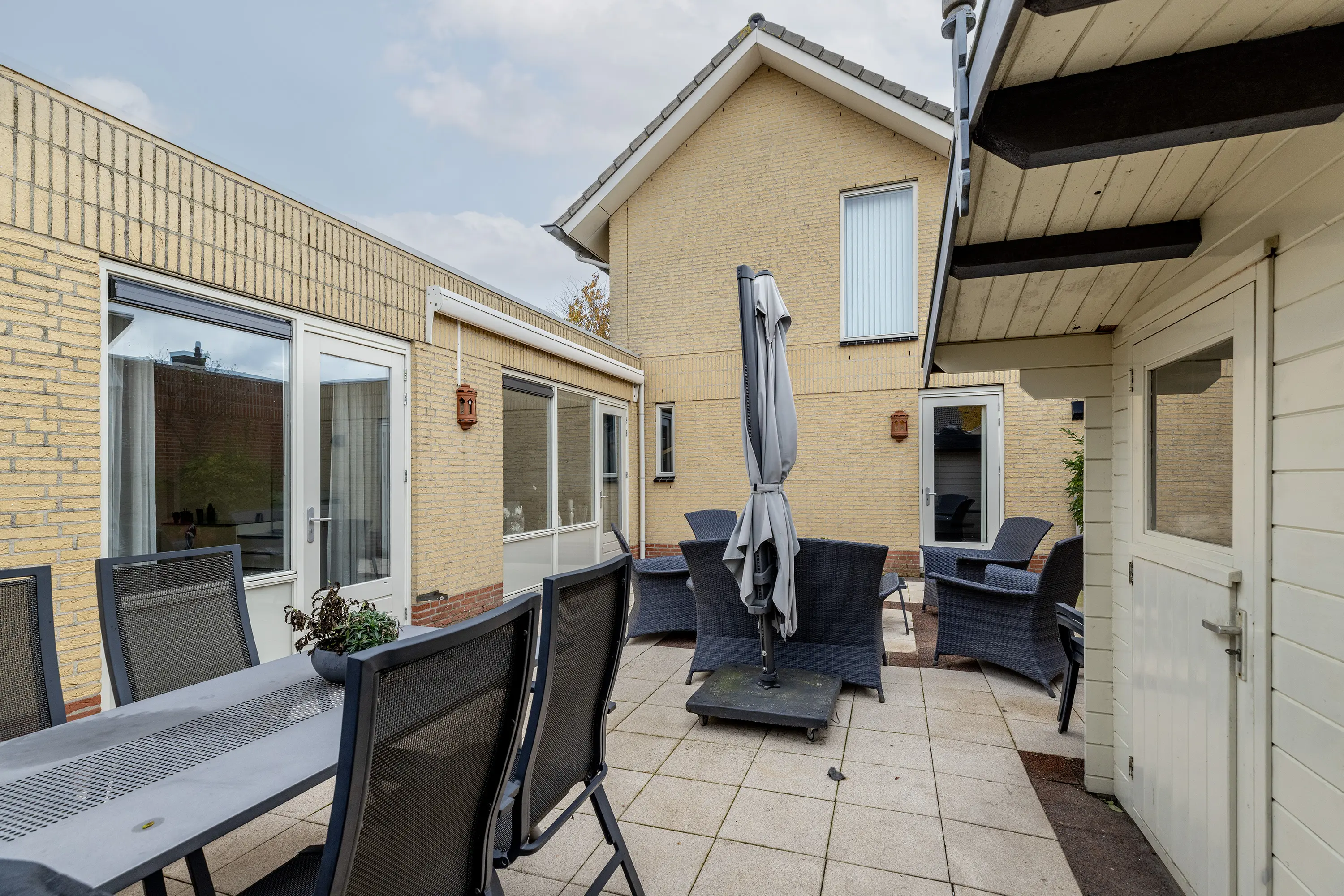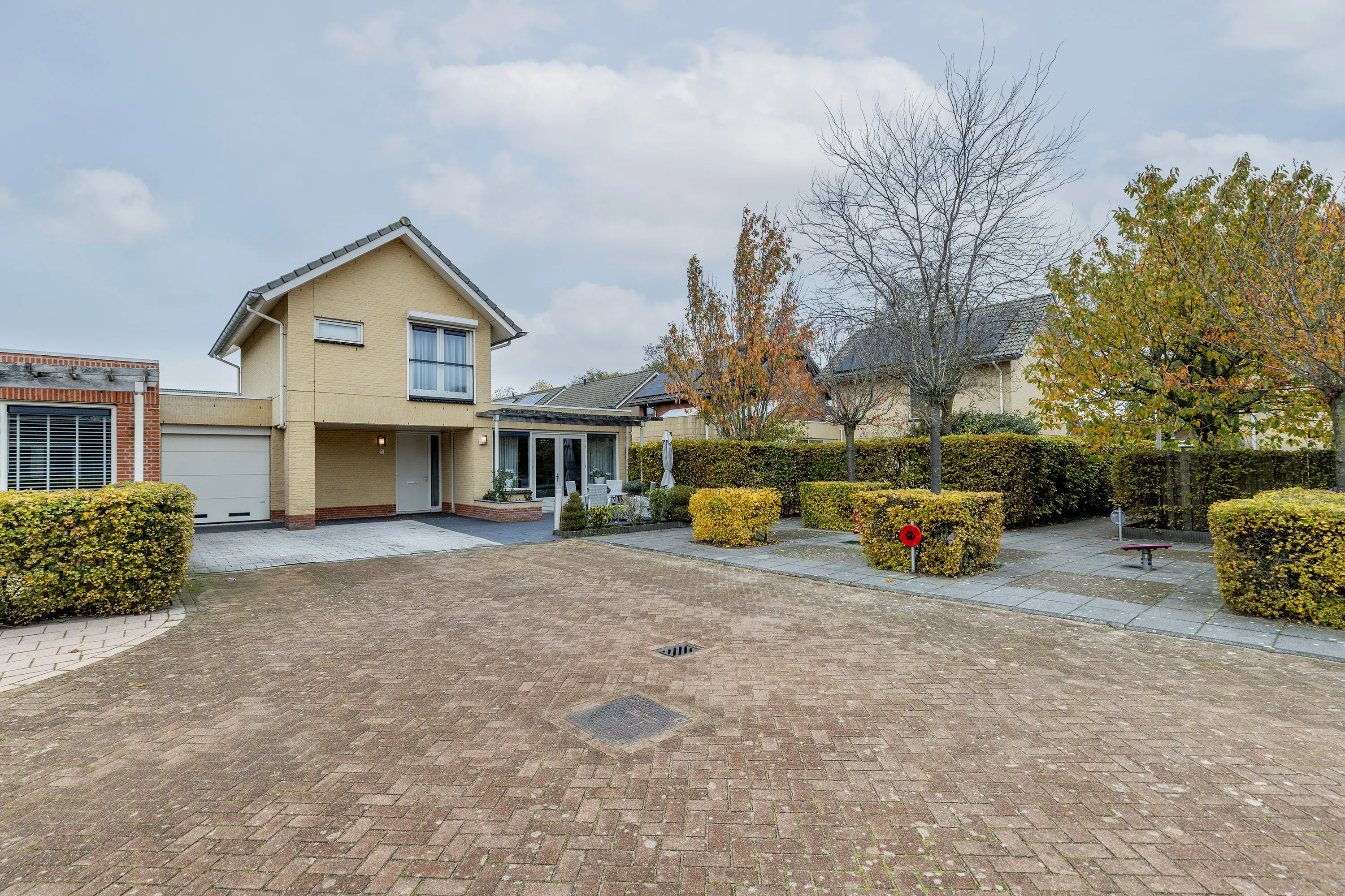 Via de ruime oprit met plaats voor twee auto’s bereikt u de entree van de woning én de garage. De verzorgde voortuin is voorzien van vaste plantenborders en biedt voldoende ruimte voor een zitje op het ruime terras.